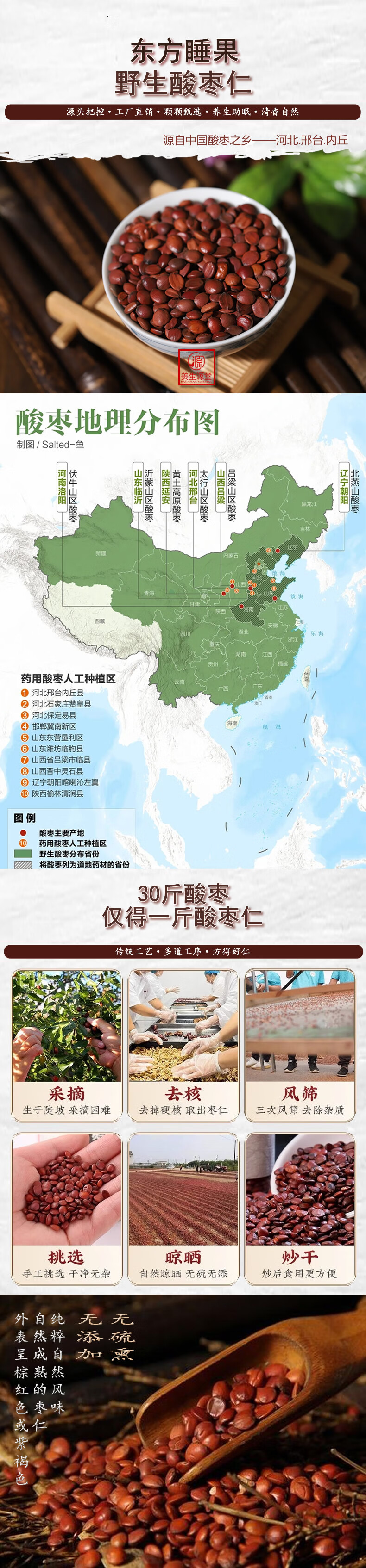 美生源堂正宗酸枣仁河北邢台酸枣仁睡眠泡水喝打粉炒100g产地直发真酸枣仁 250g/罐 炒熟