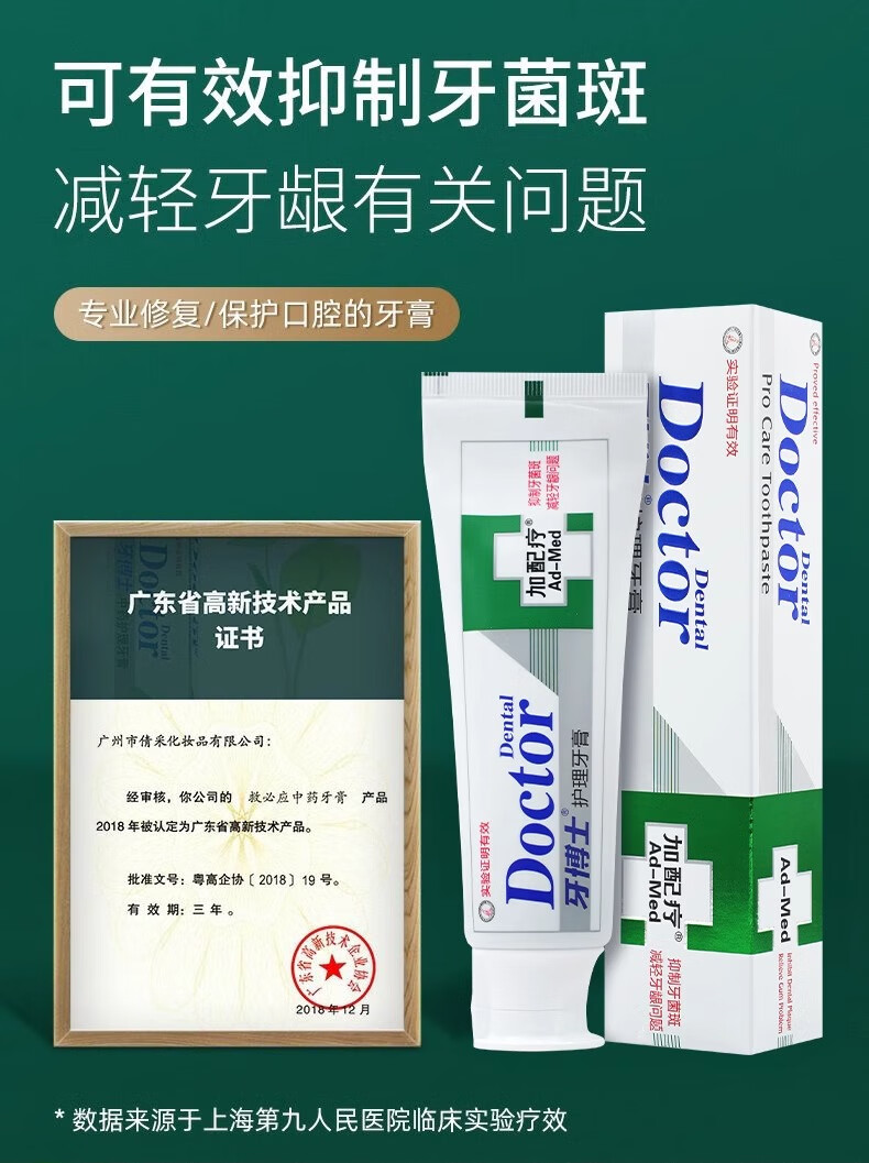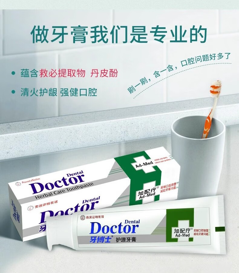 牙博士加配效中药护理牙膏抑制牙菌斑清火舒缓牙龈口腔异味护龈健齿120g 三支装
