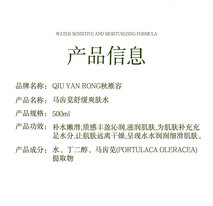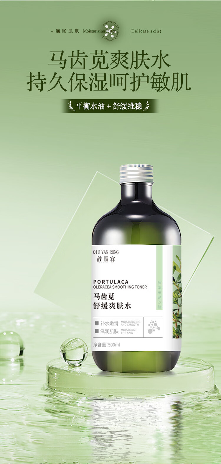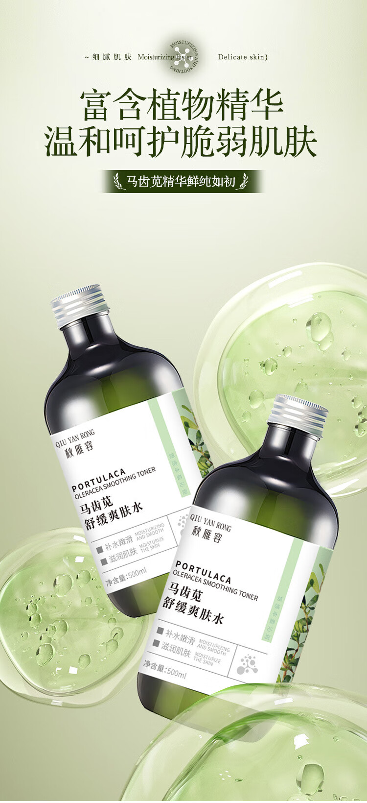佩拉娜 PEULARNAY马齿苋草本酸祛斑液舒缓爽肤水修护收毛孔补水保湿清爽控油湿敷水 秋雁容马齿苋舒缓爽肤水500ml 三瓶装