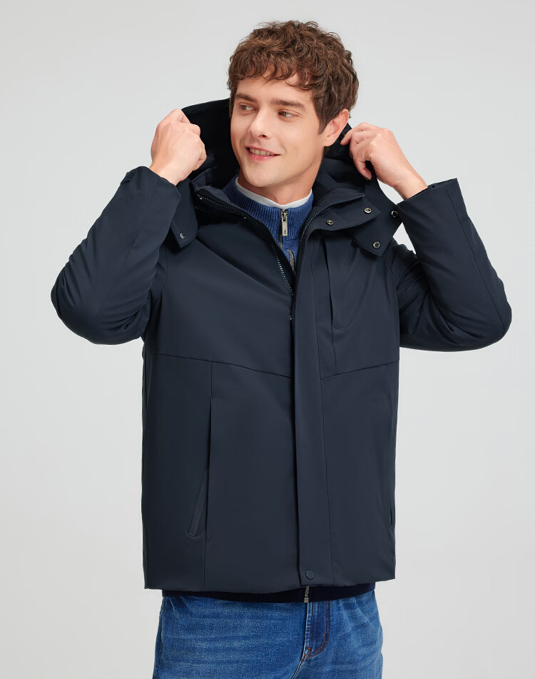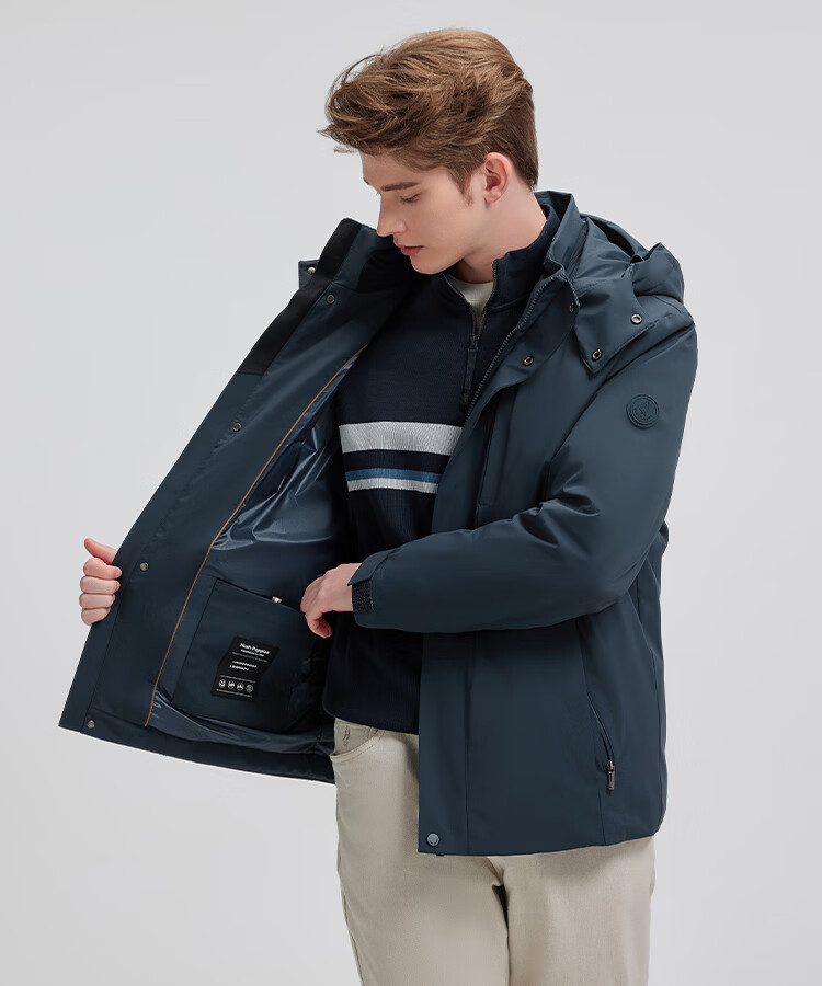 暇步士(Hush Puppies)【挺括有型】男装2025冬季新款蓬松舒适锁温安心绒羽绒服 墨蓝色 XL