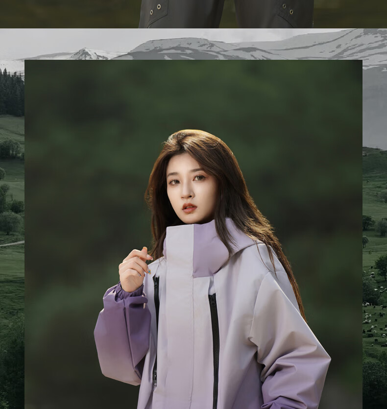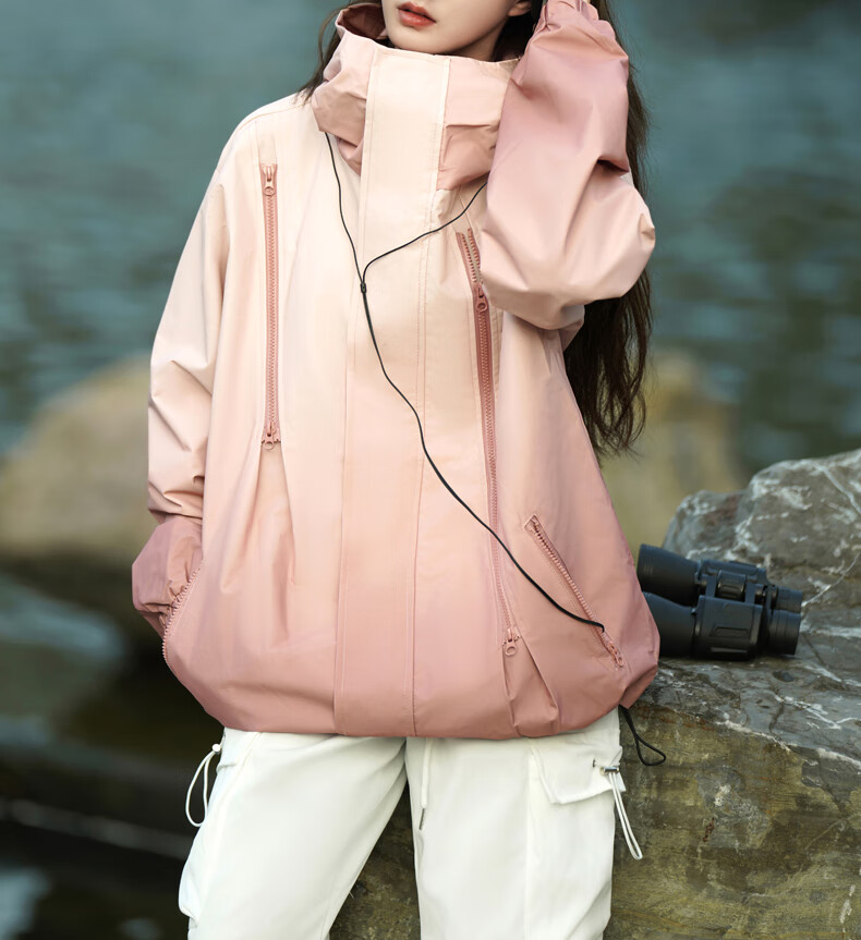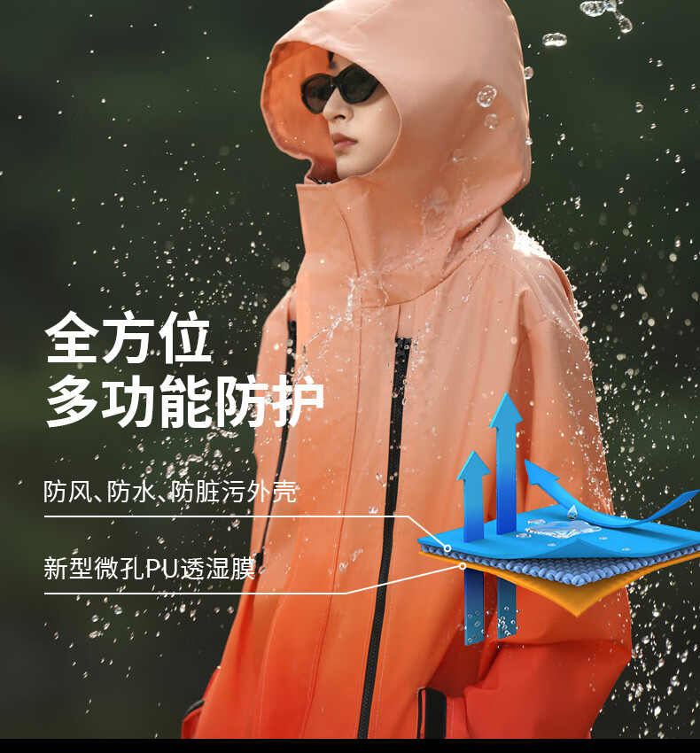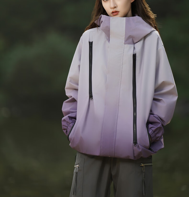 PPGE三合一冲锋夹克防风防泼水户外高级渐变双色晕染上衣男女同款外套 高级渐变-凝夜紫三合一 S (165/84A)