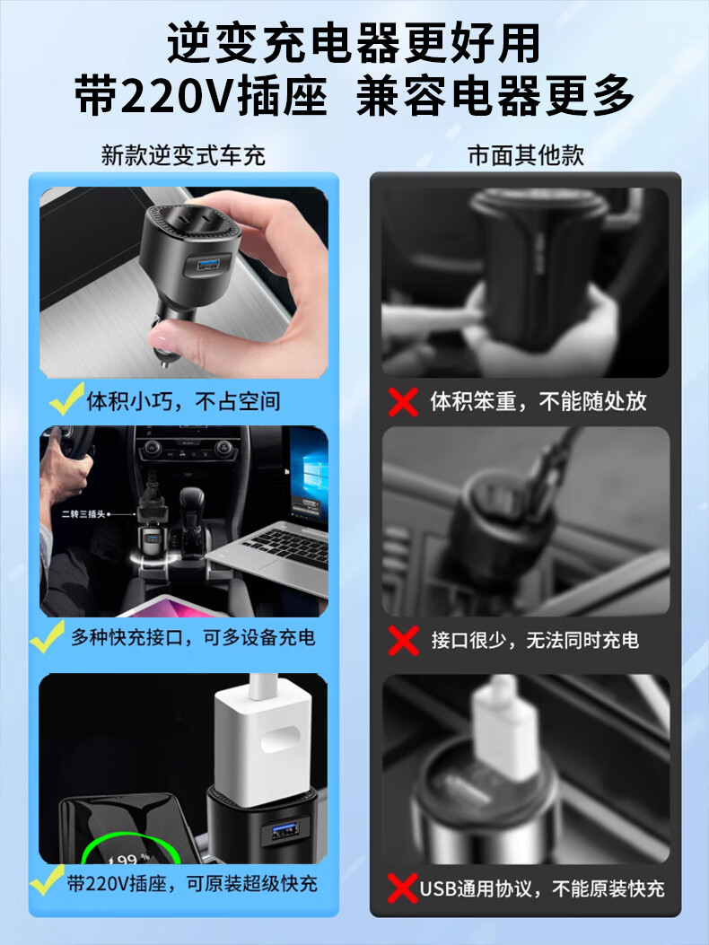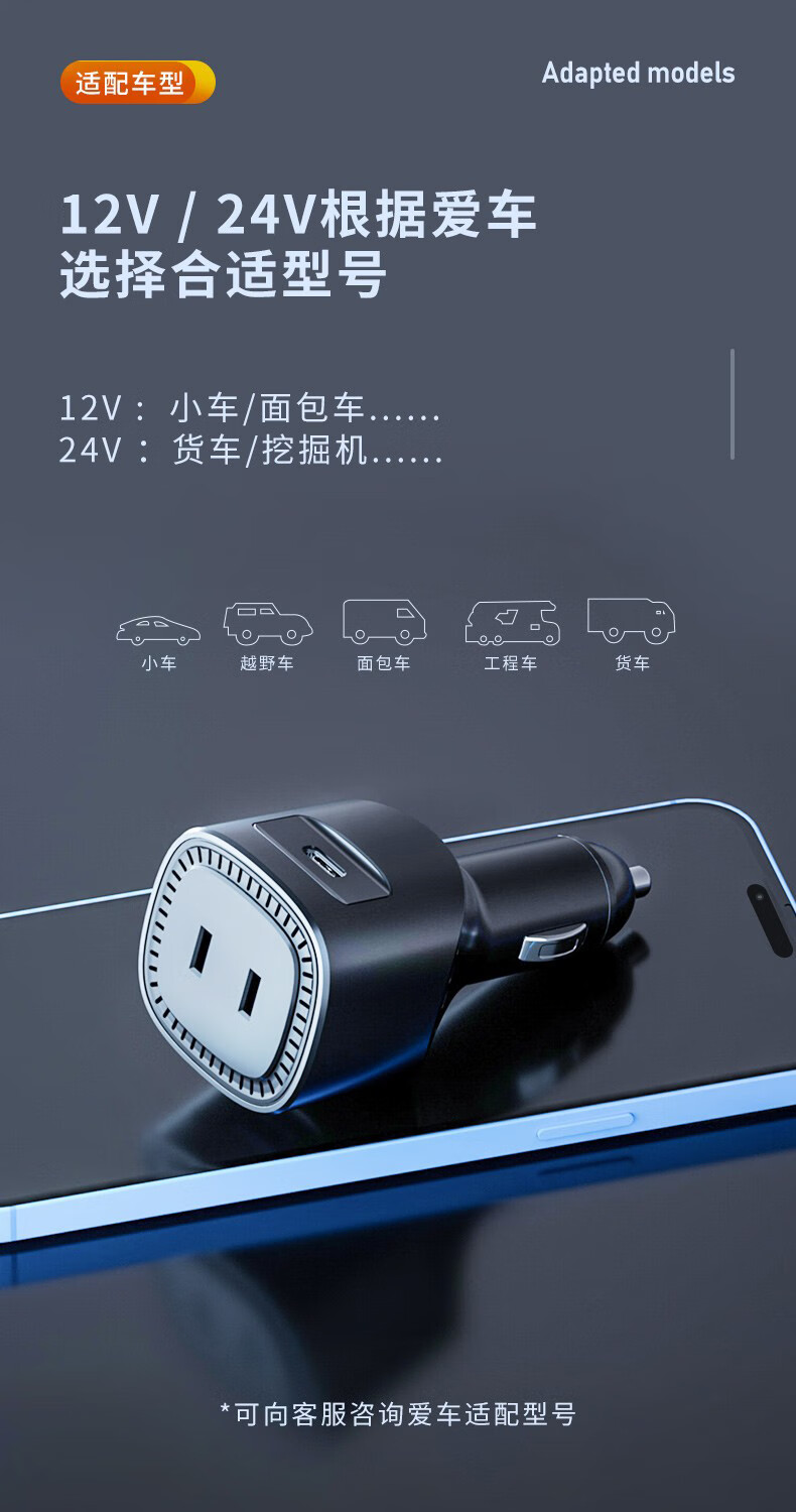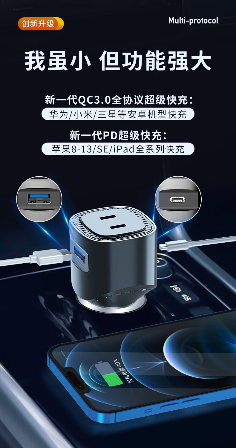 胜之星车载充电器逆变器12v24v汽车点烟器转换头220v电源快充插座 12V新款【PD+QC3.0+220V插座】 2025新款逆变插座