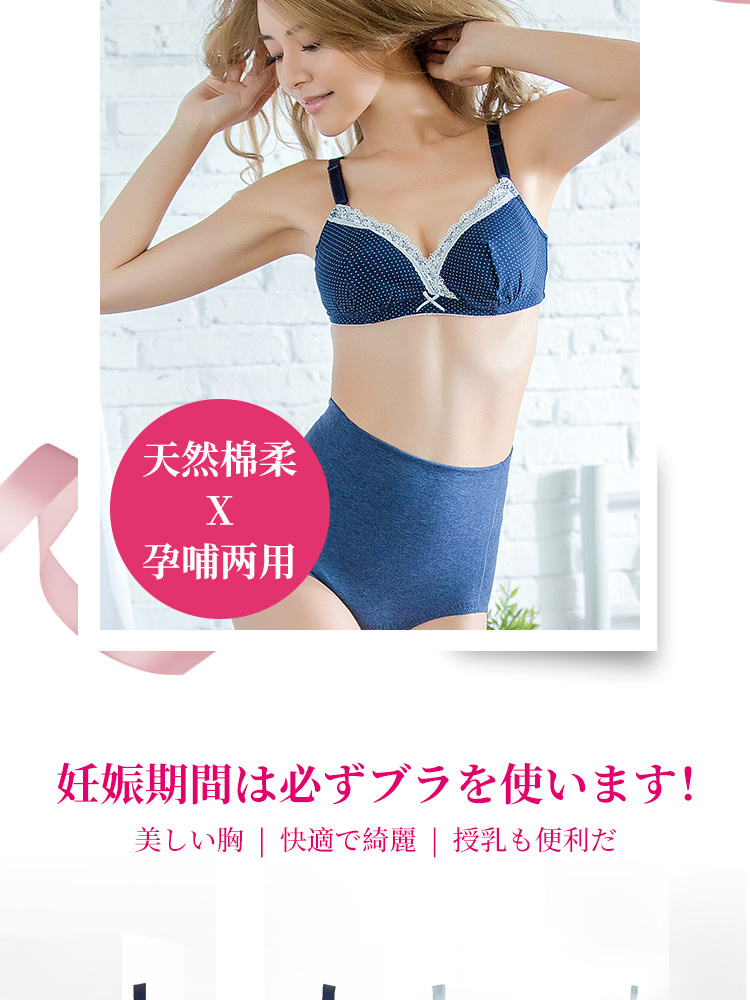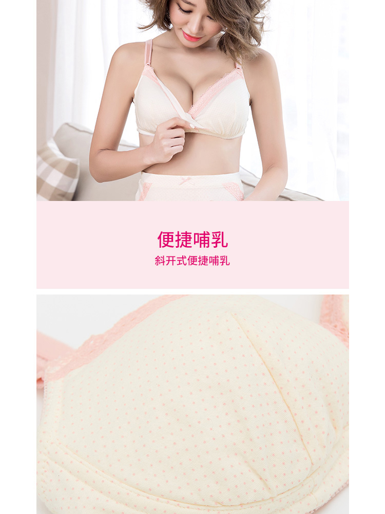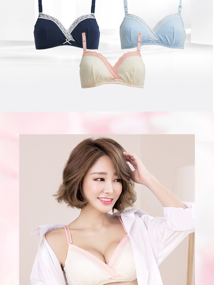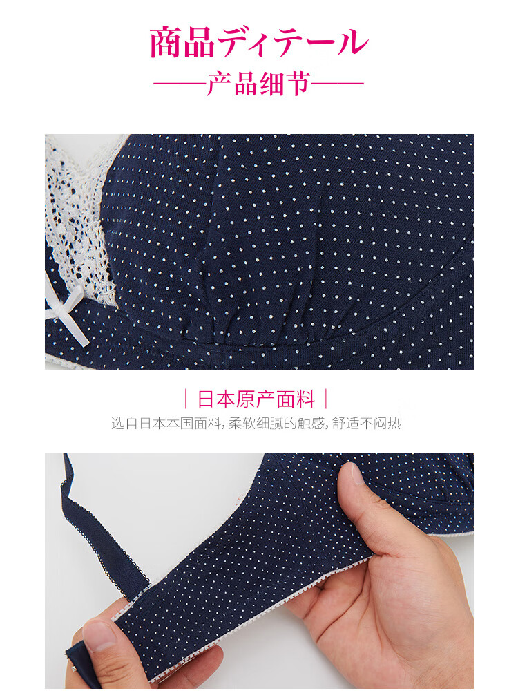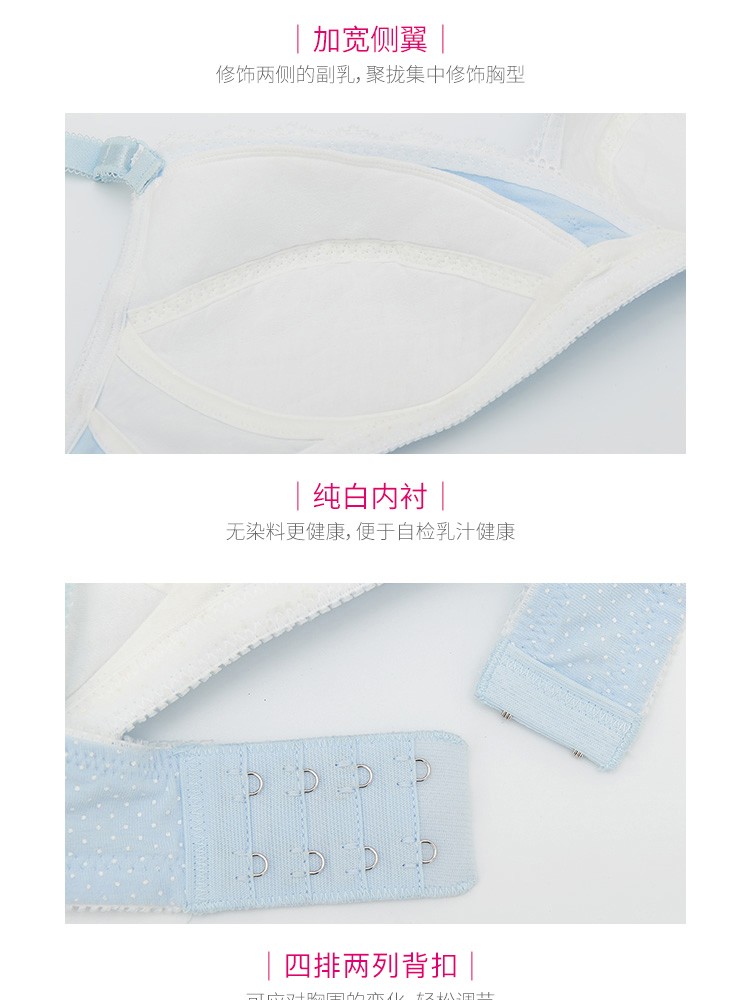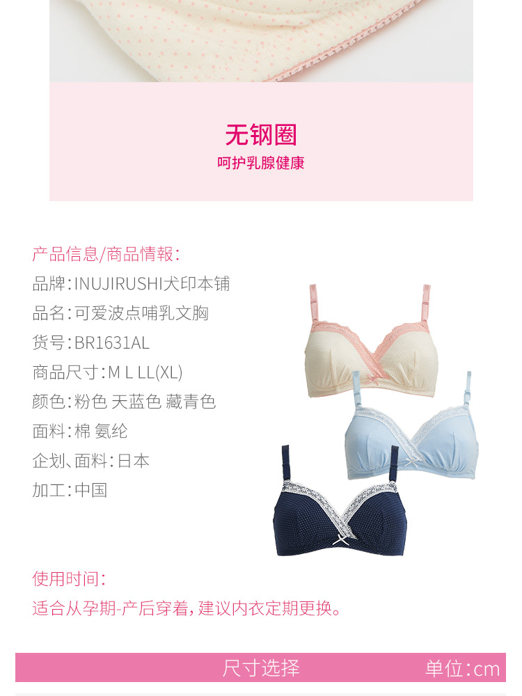 犬印本铺(INUjIRUSHI)孕产妇可爱波点哺乳文胸内衣产前产后通用无钢圈斜开式喂奶胸罩 天蓝色 M