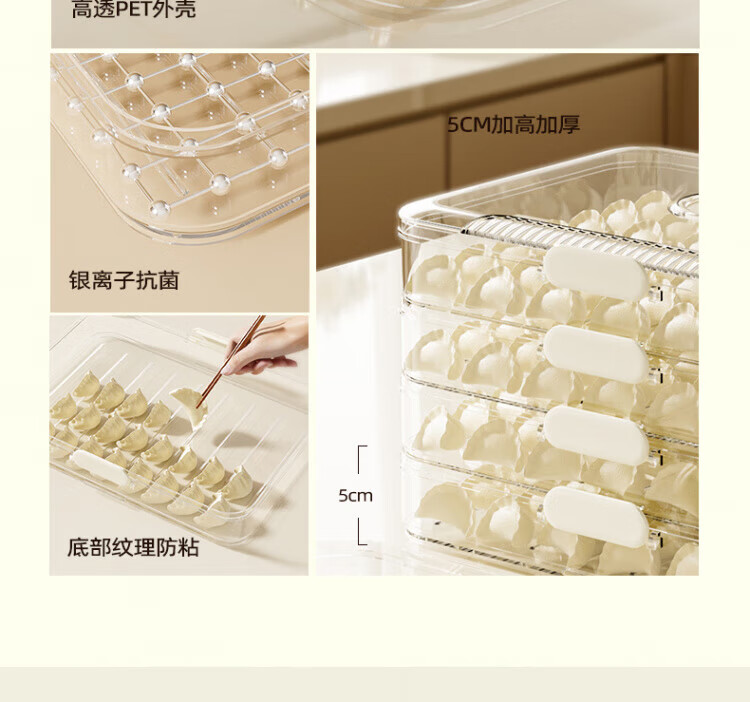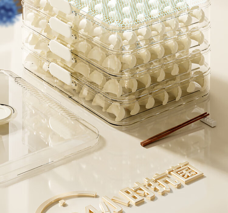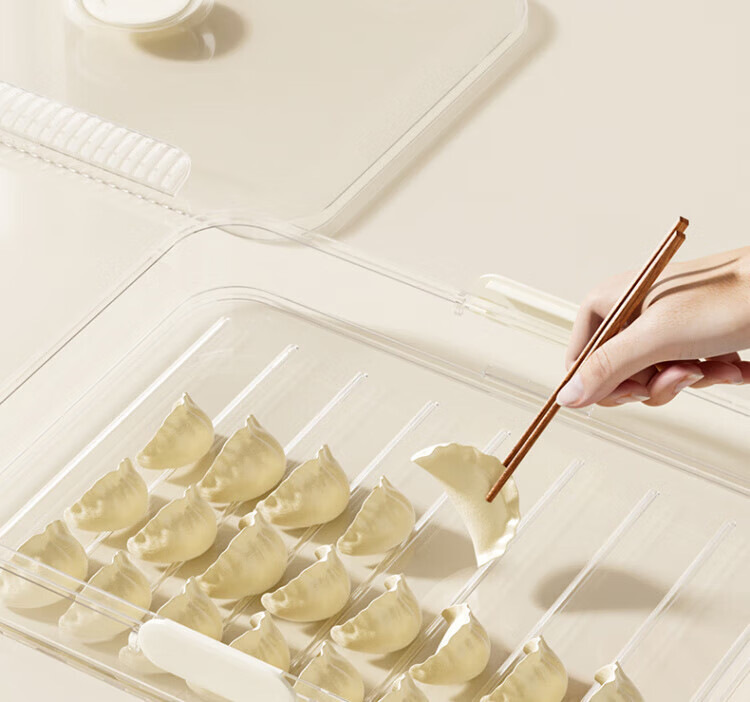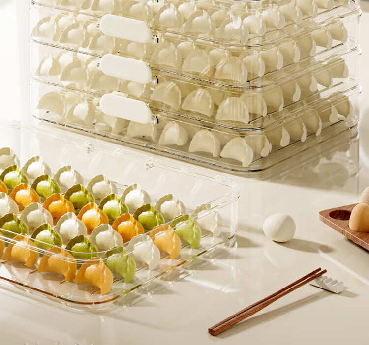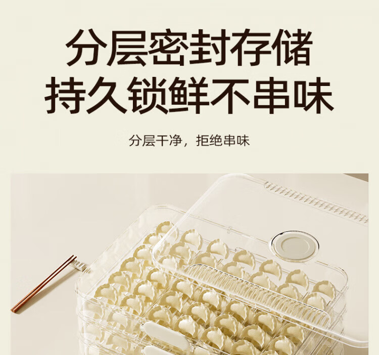 WCZ德国饺子盒家用食品级厨房冷冻速冻馄饨水饺专用保鲜盒冰箱密封收 一层一盖-透明白可装约70个饺子冻裂. 1层