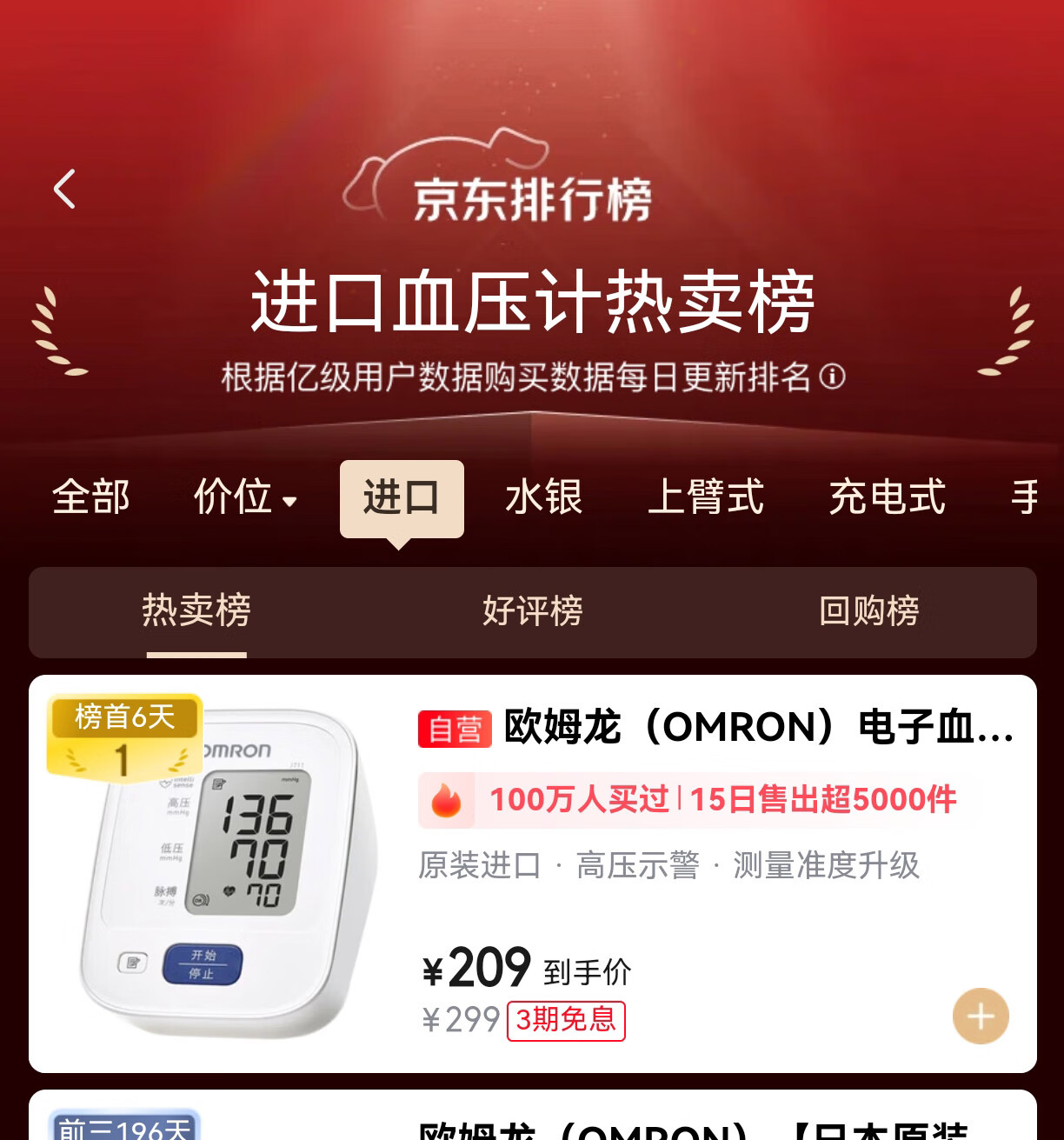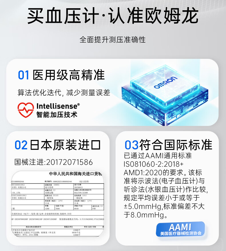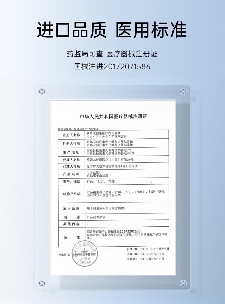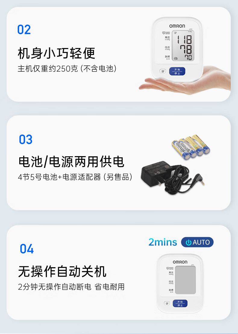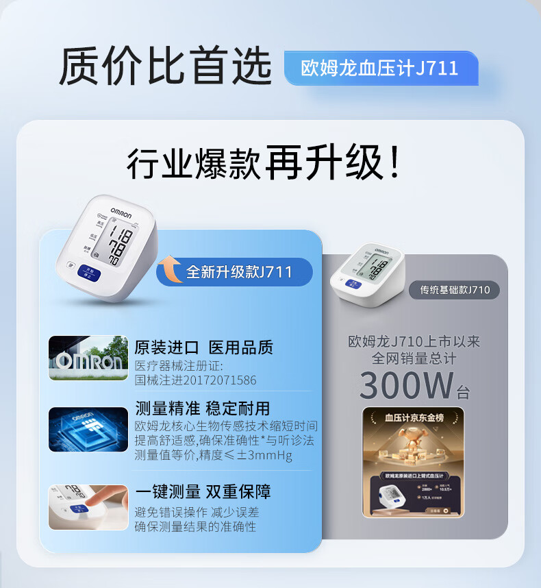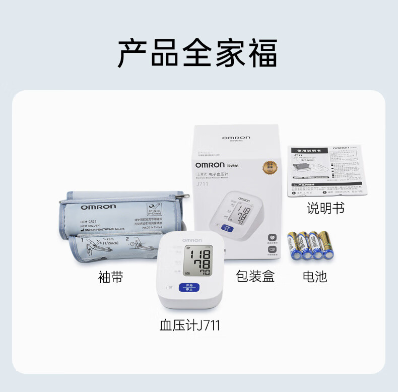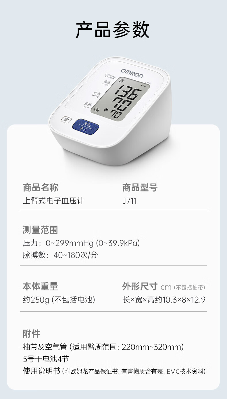 欧姆龙(OMRON)电子血压计血压仪家用老人测量仪医用高精准J711原装进口不含电源