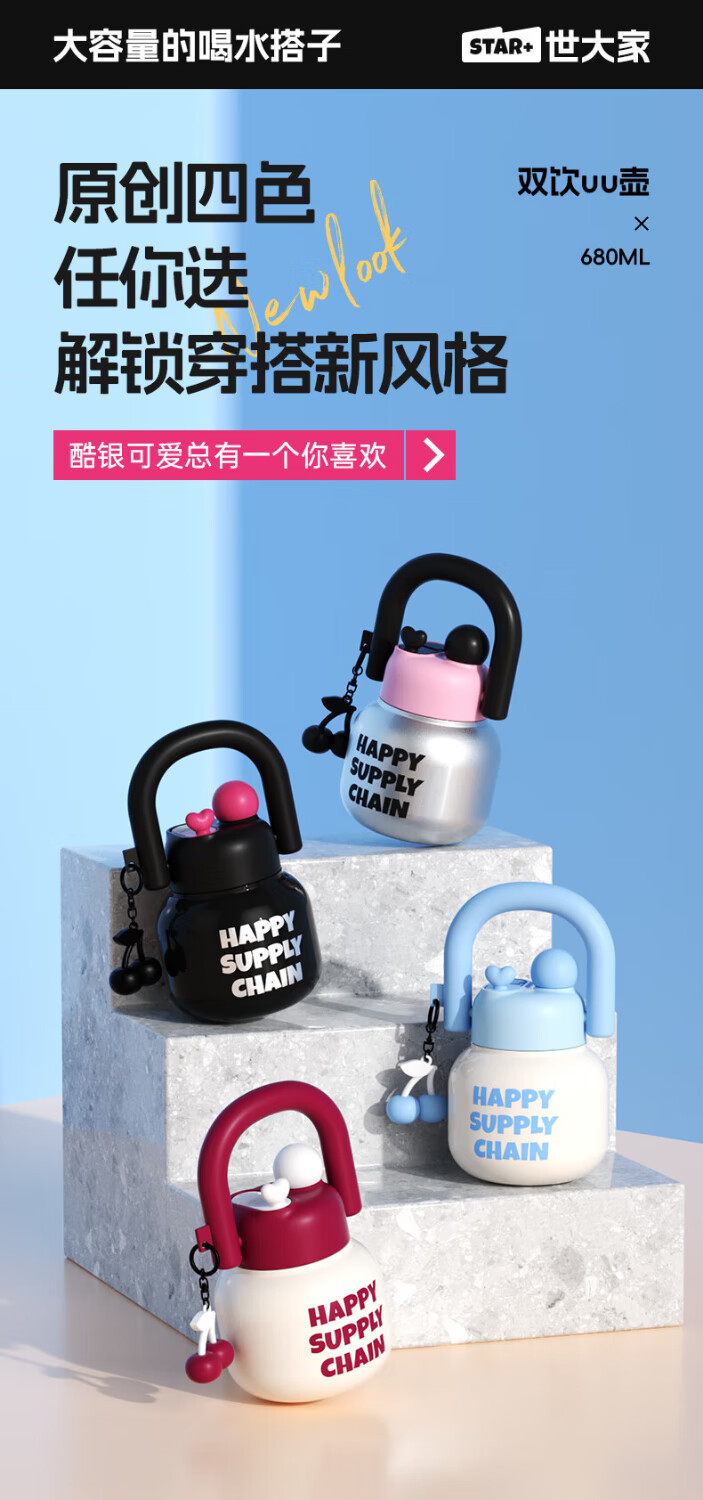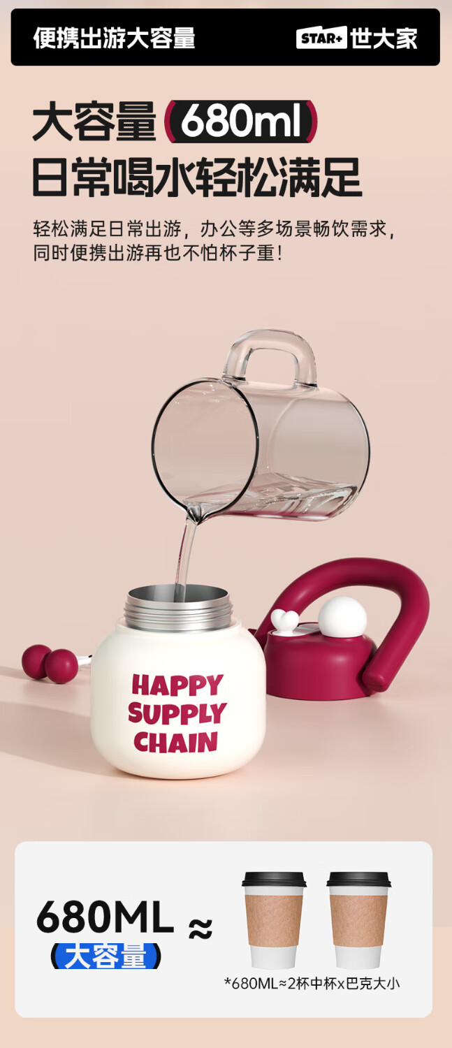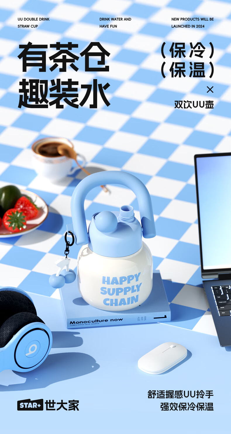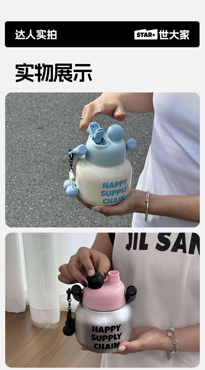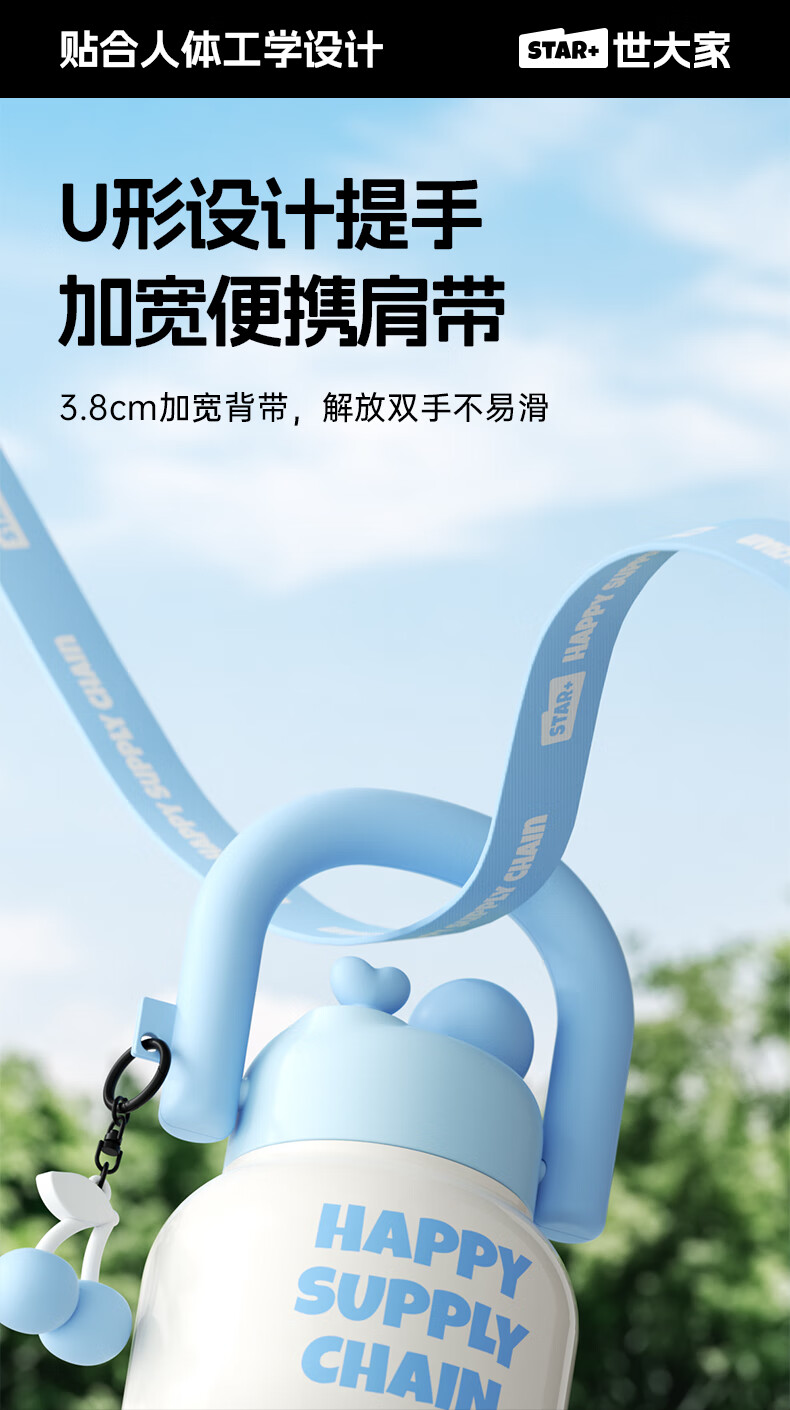 世大家UU壶大容量吸管保温杯水杯女可爱大水壶出游保冷水杯女学生 【背带款】星河点点680ml