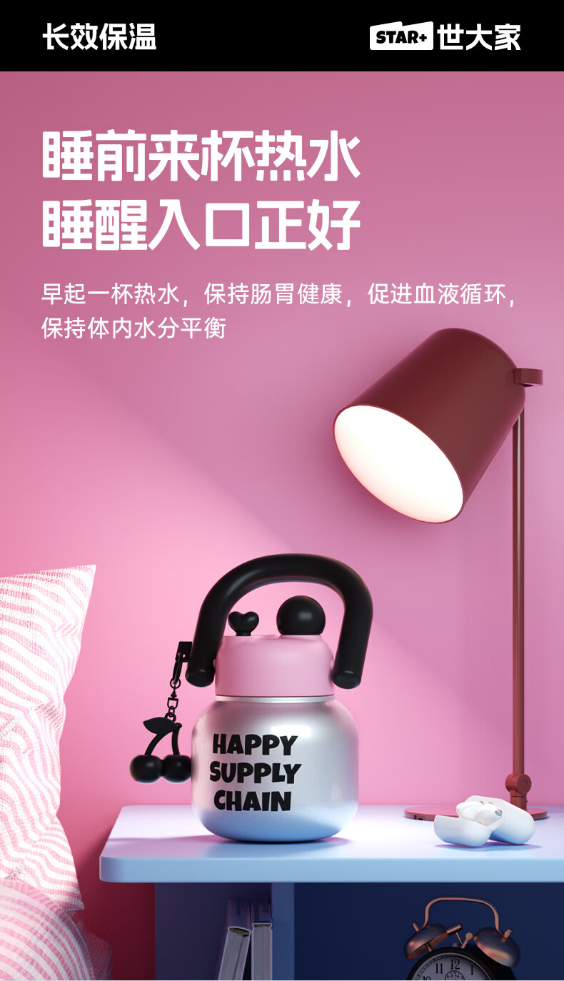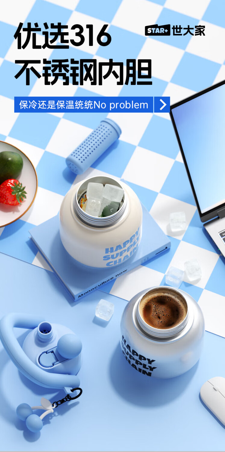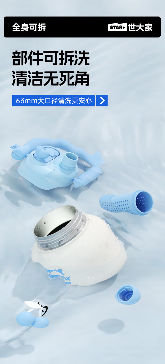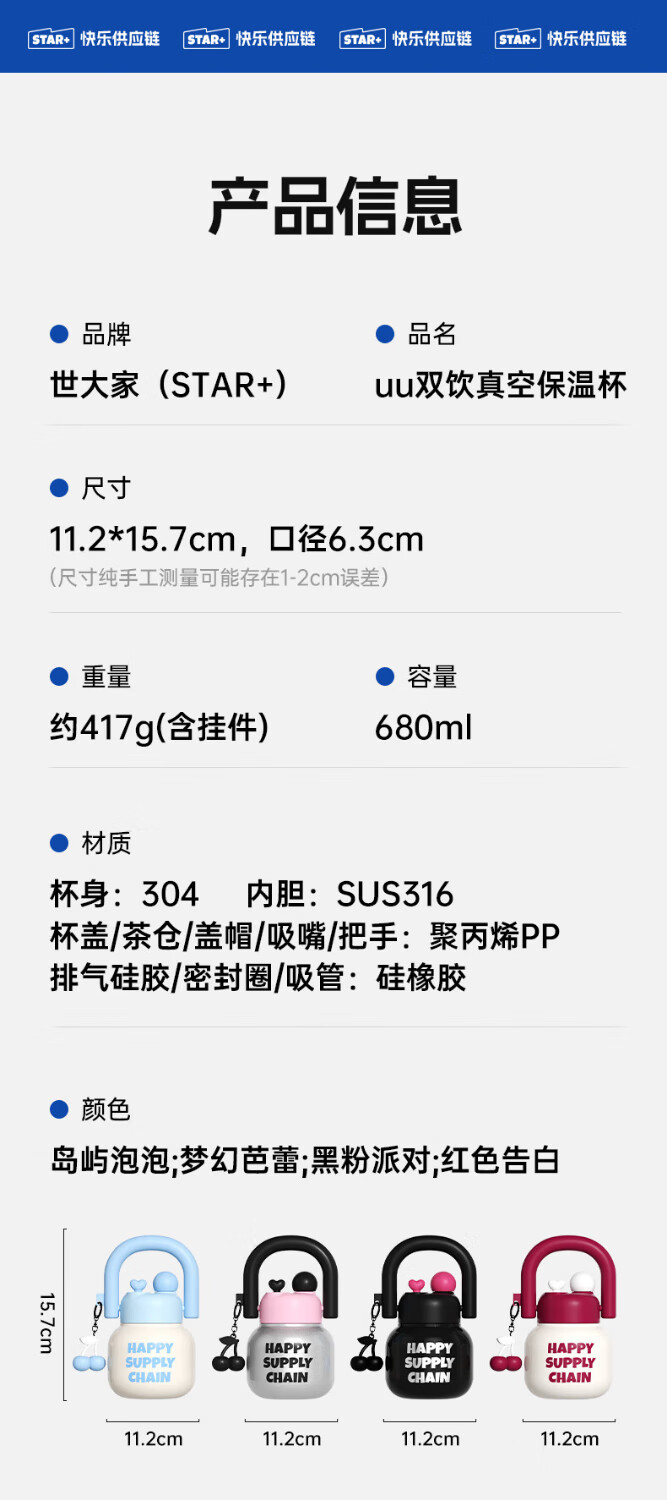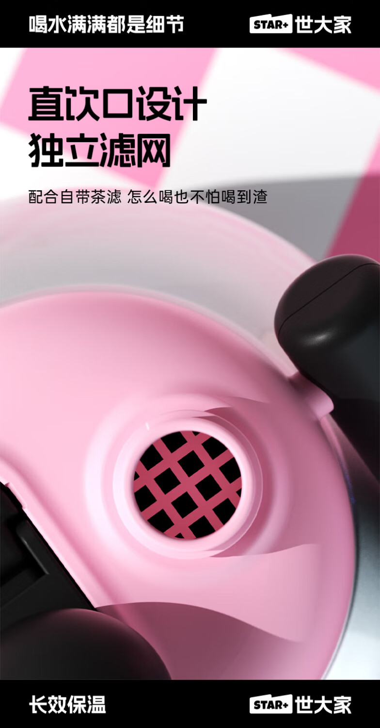 世大家UU壶大容量吸管保温杯水杯女可爱大水壶出游保冷水杯女学生 【背带款】星河点点680ml