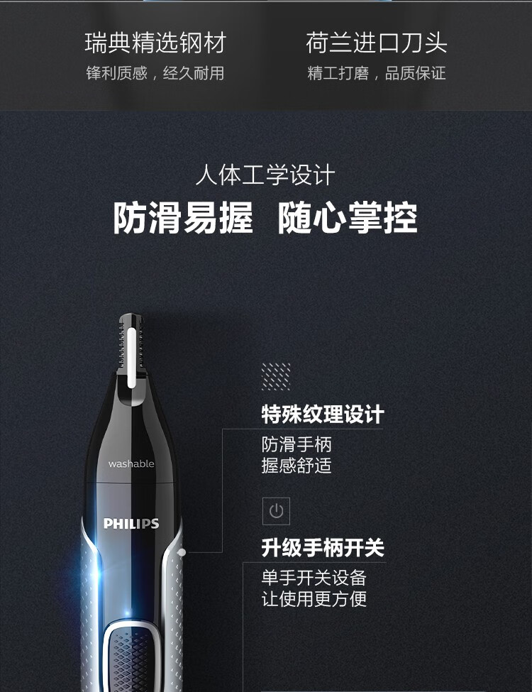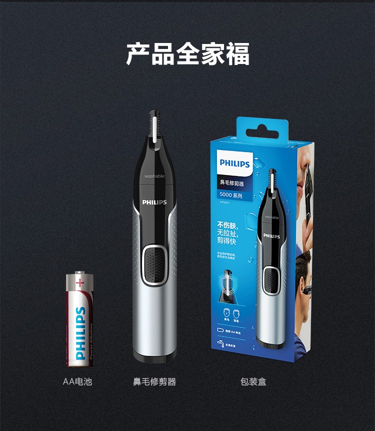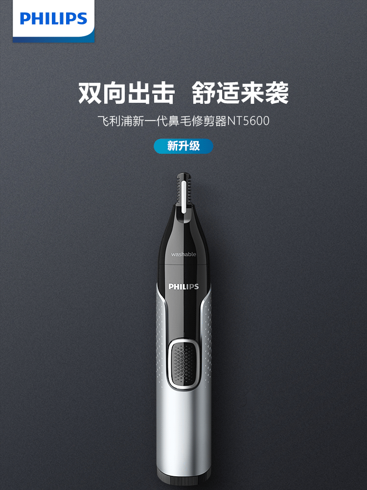 飞利浦鼻毛修剪器 双面切剃 全身水洗剃毛器 舒适安全男士礼物生日礼物送男生送长辈圣诞礼物送男生 NT5600/15
