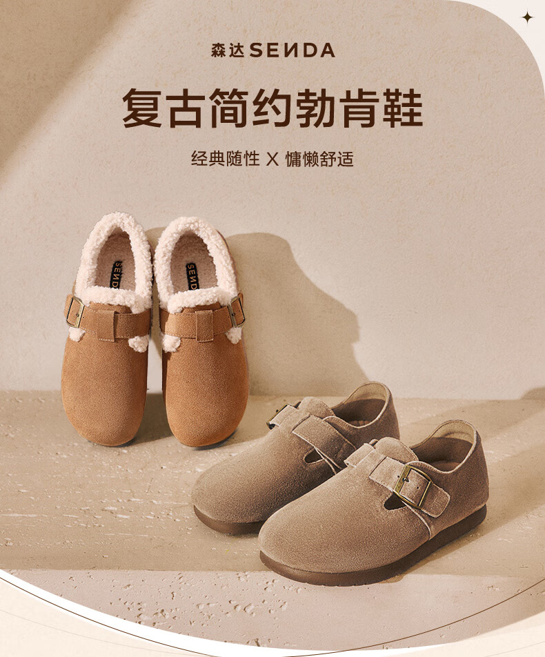 森达勃肯鞋女春秋新款商场同款简约舒适休闲鞋女鞋XJG02CM4 啡色 38