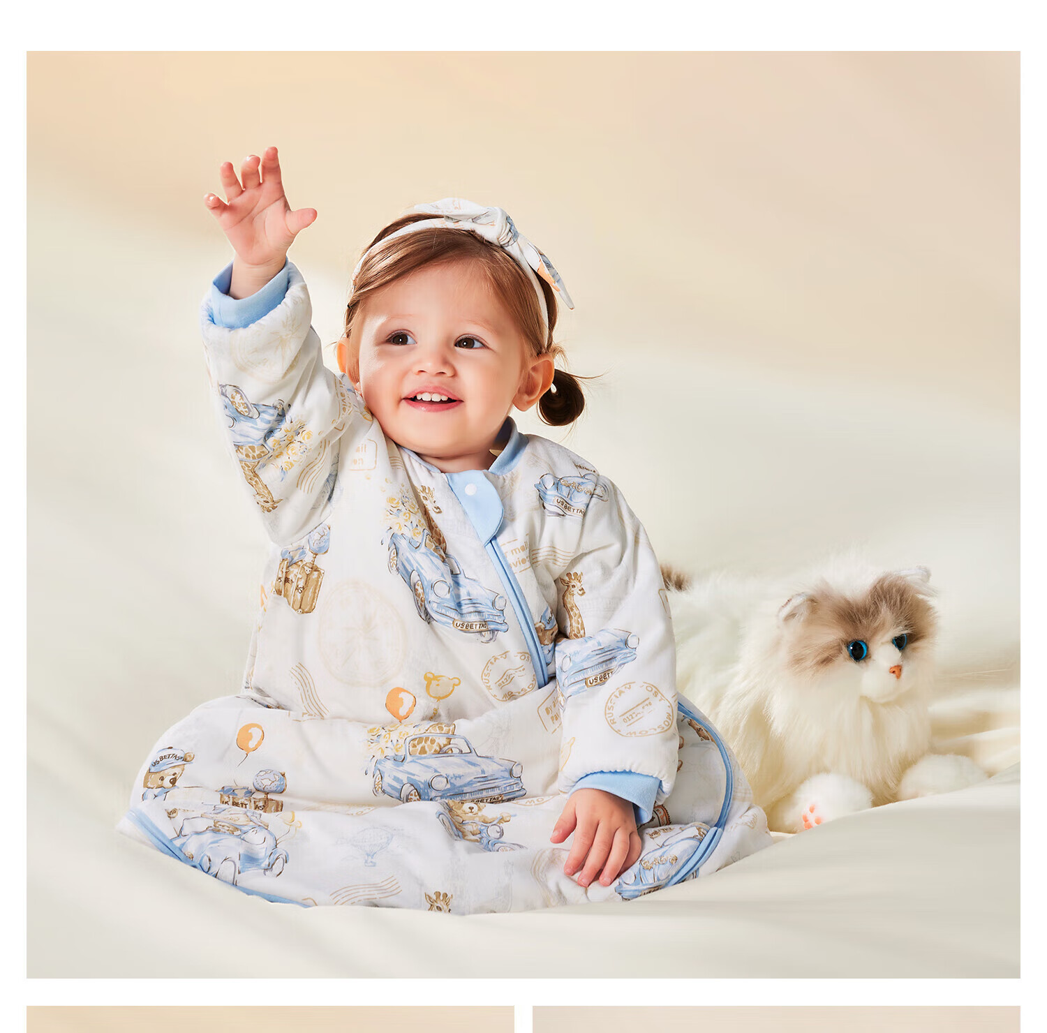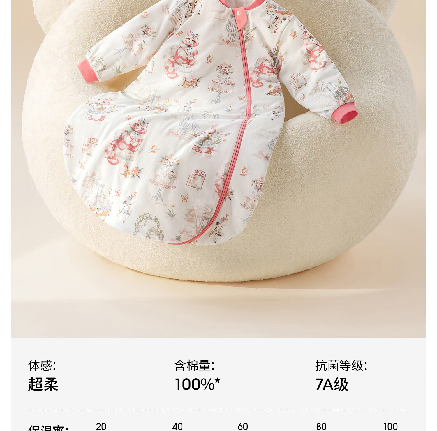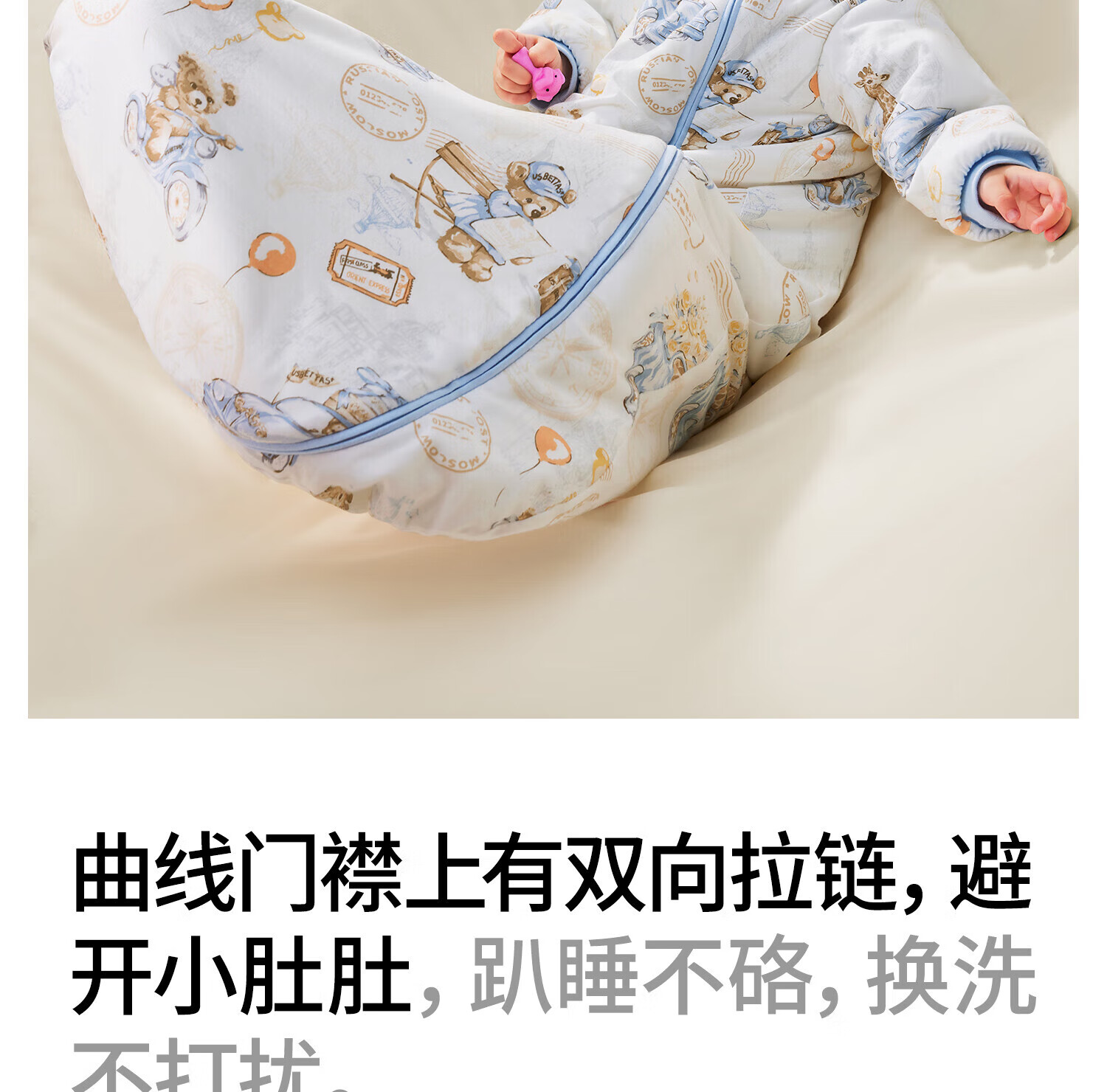 贝肽斯婴儿恒温睡袋宝宝1-3岁秋春秋儿童防踢被子保暖一体式防惊跳睡袋 猫肚棉x保暖【春秋双层 室温20-26度】格兰城邦 S码 (身高55-70cm建议0-9月)