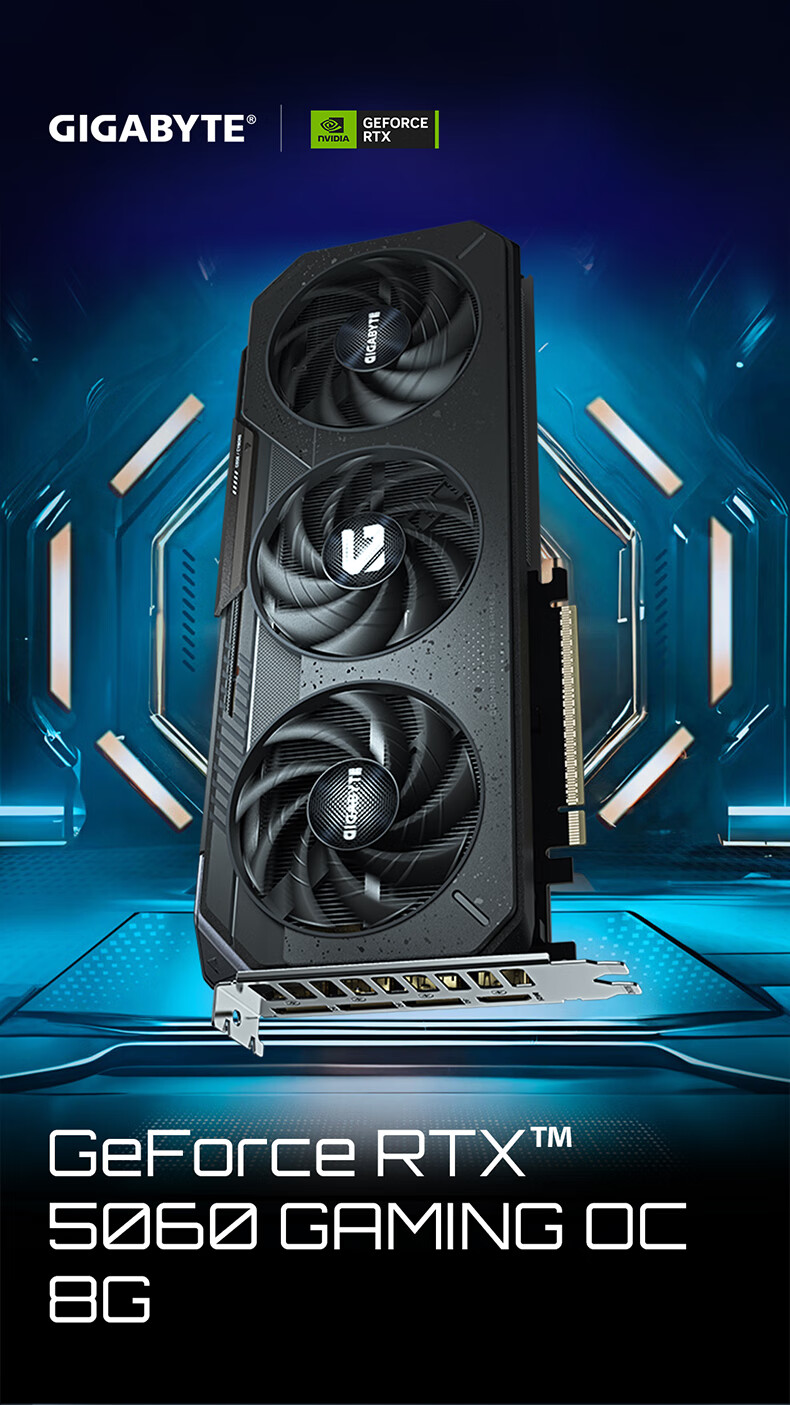 技嘉(GIGABYTE)5060 8G显卡 魔鹰 GeForce RTX 5060 Gaming OC 8G DLSS4 游戏电竞设计AI电脑独立显卡
