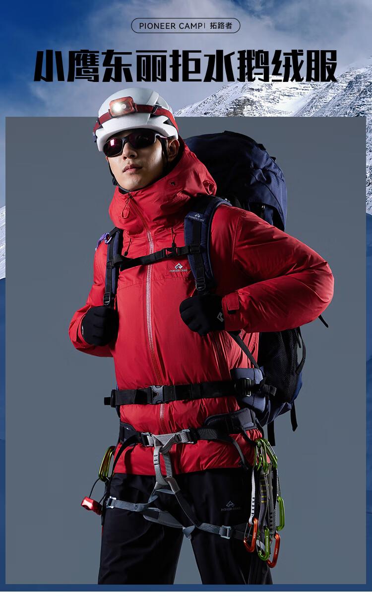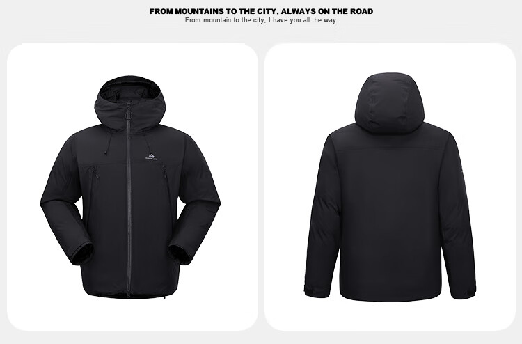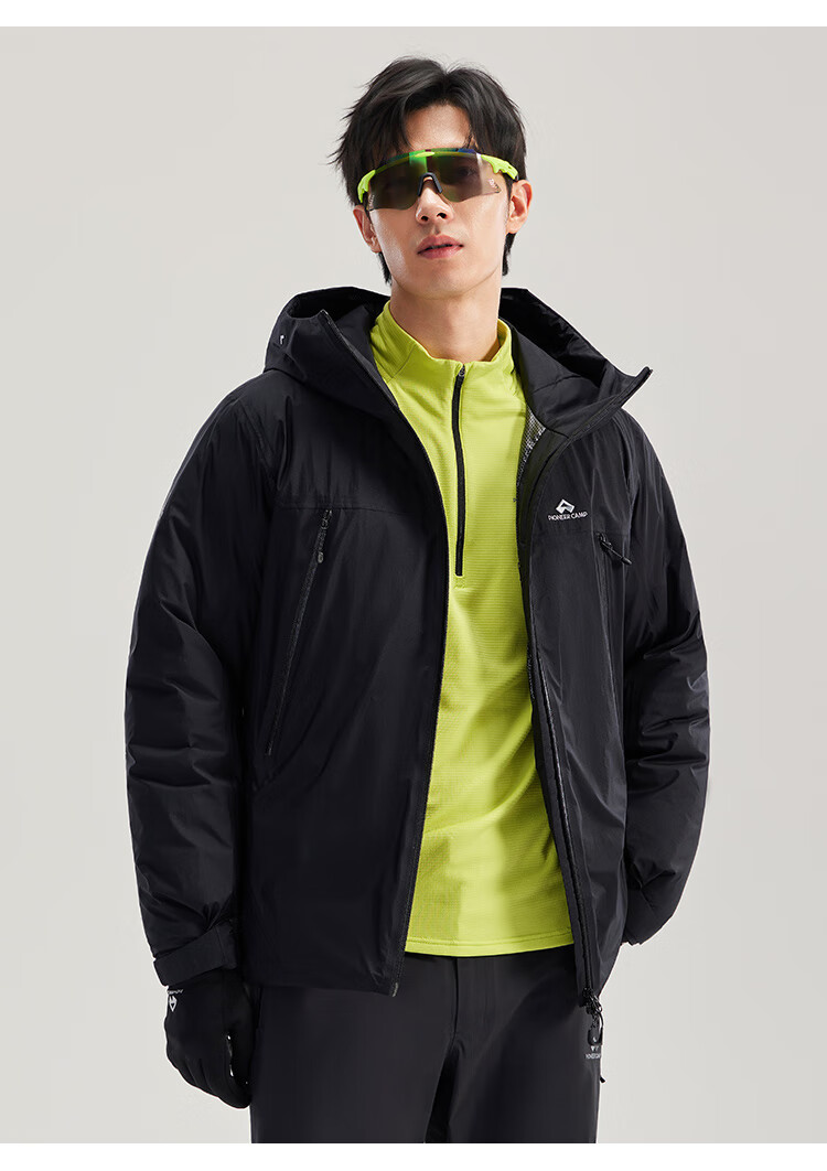 拓路者【小鹰鹅绒服】东丽连帽羽绒服男款冬季石墨烯保暖登山服羽绒外套 黑色 L