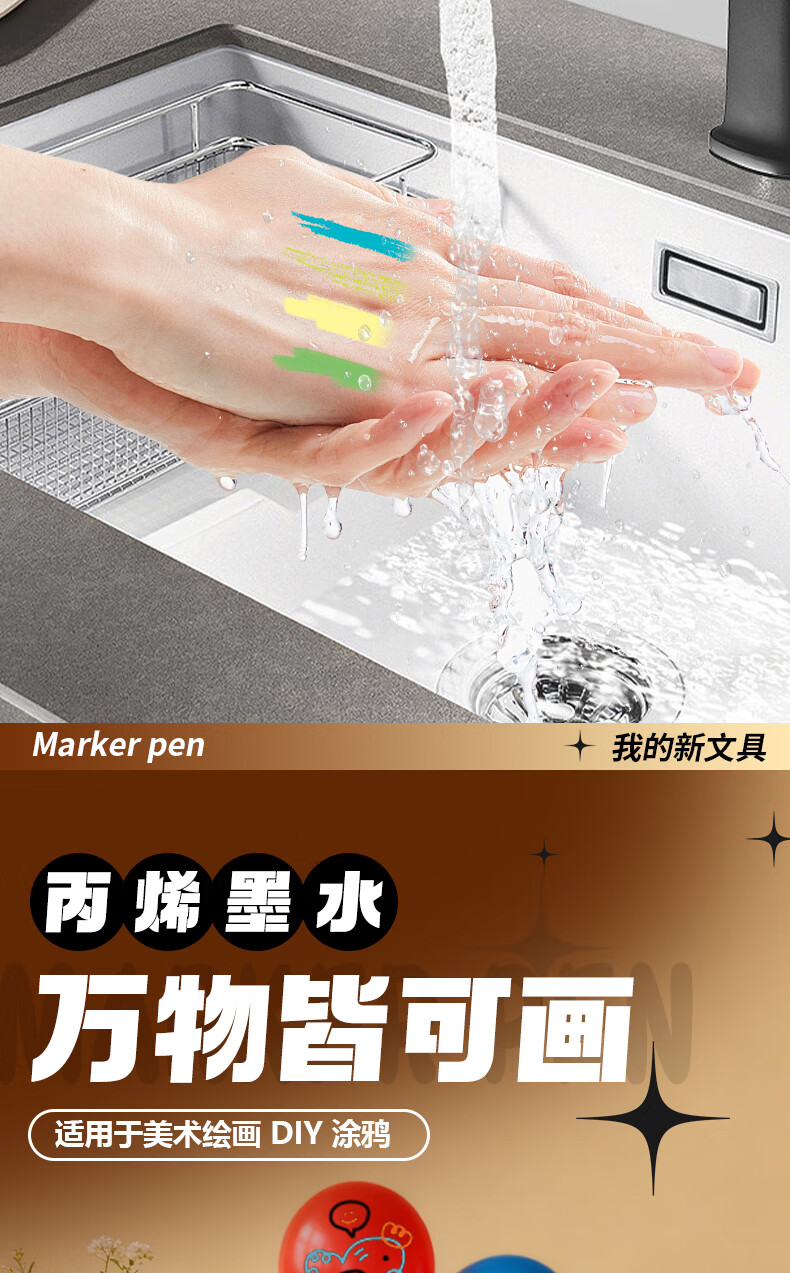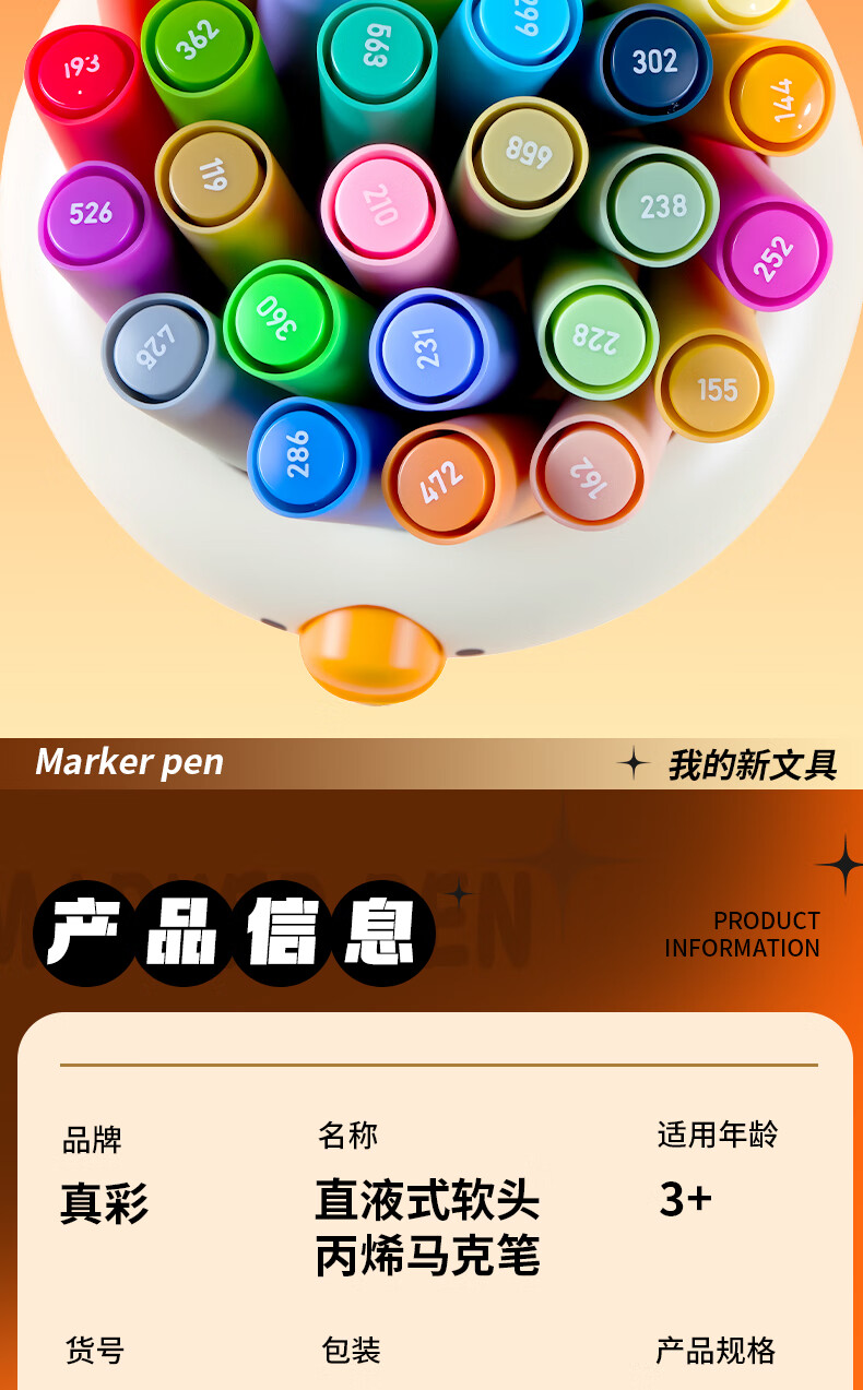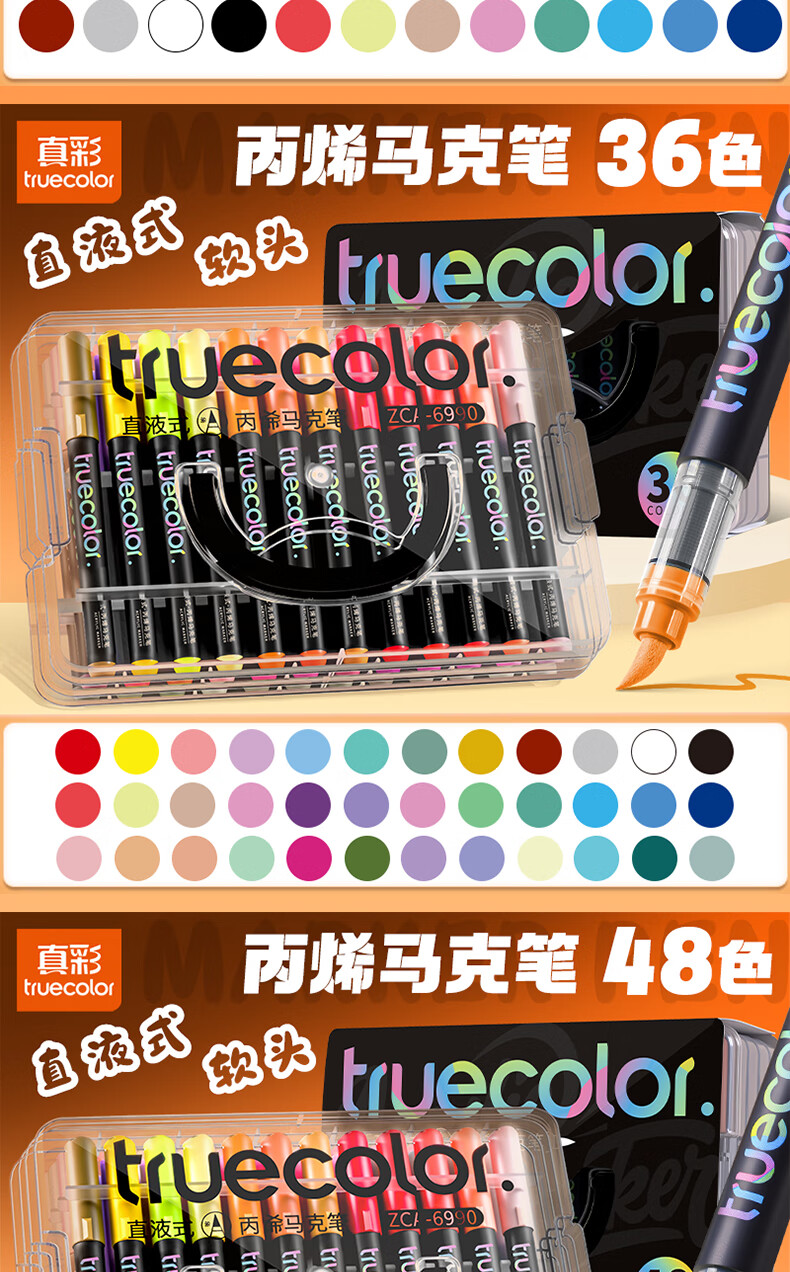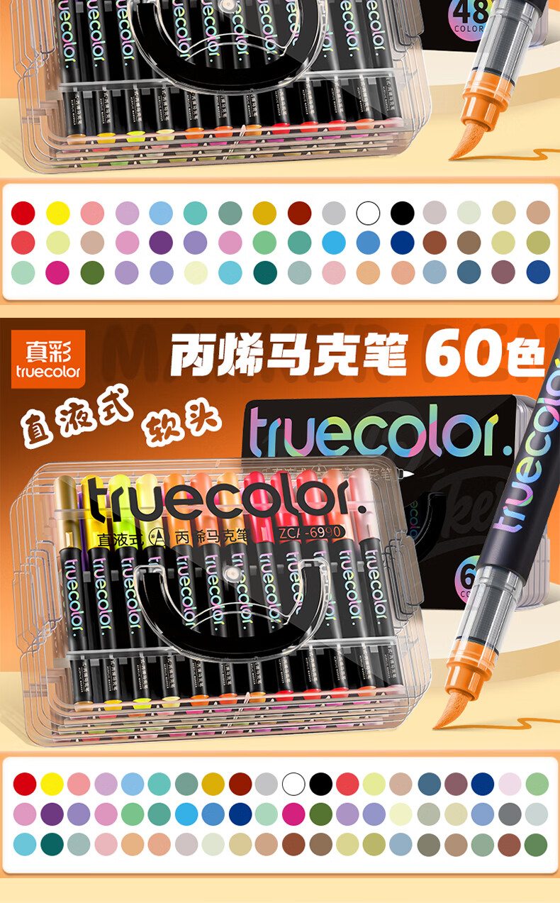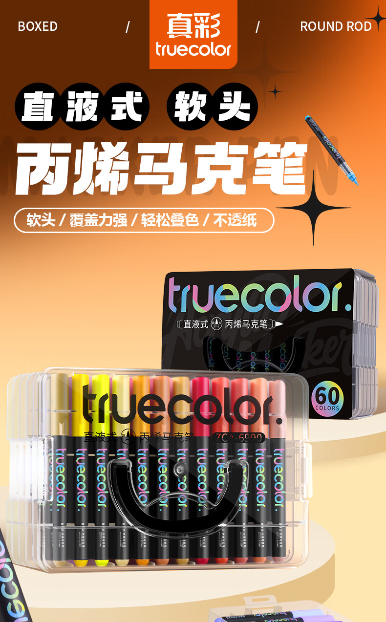 真彩(TRUECOLOR)60色直液式丙烯马克笔软头小学生专用不易透纸强覆盖力可叠色涂鸦DIY美术画画水彩笔可水洗6690