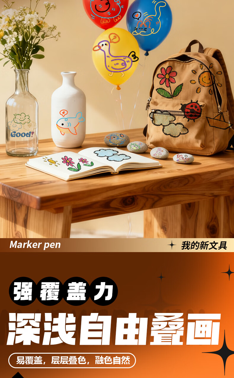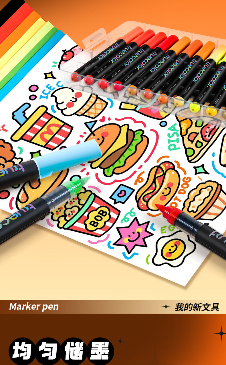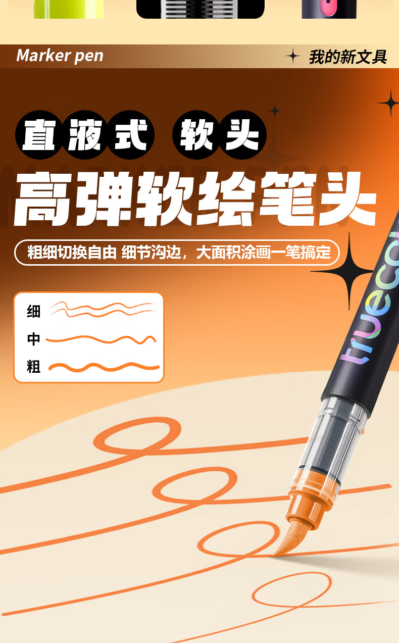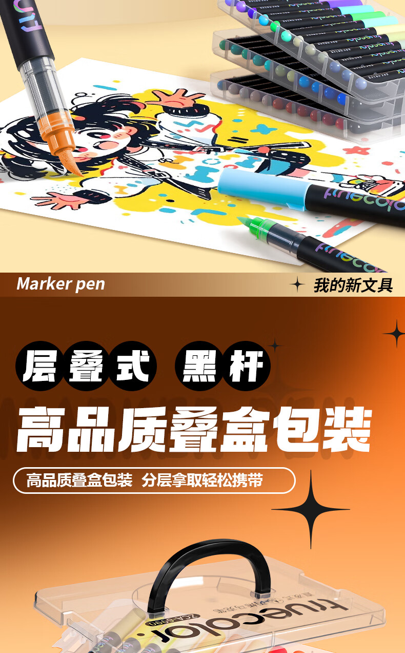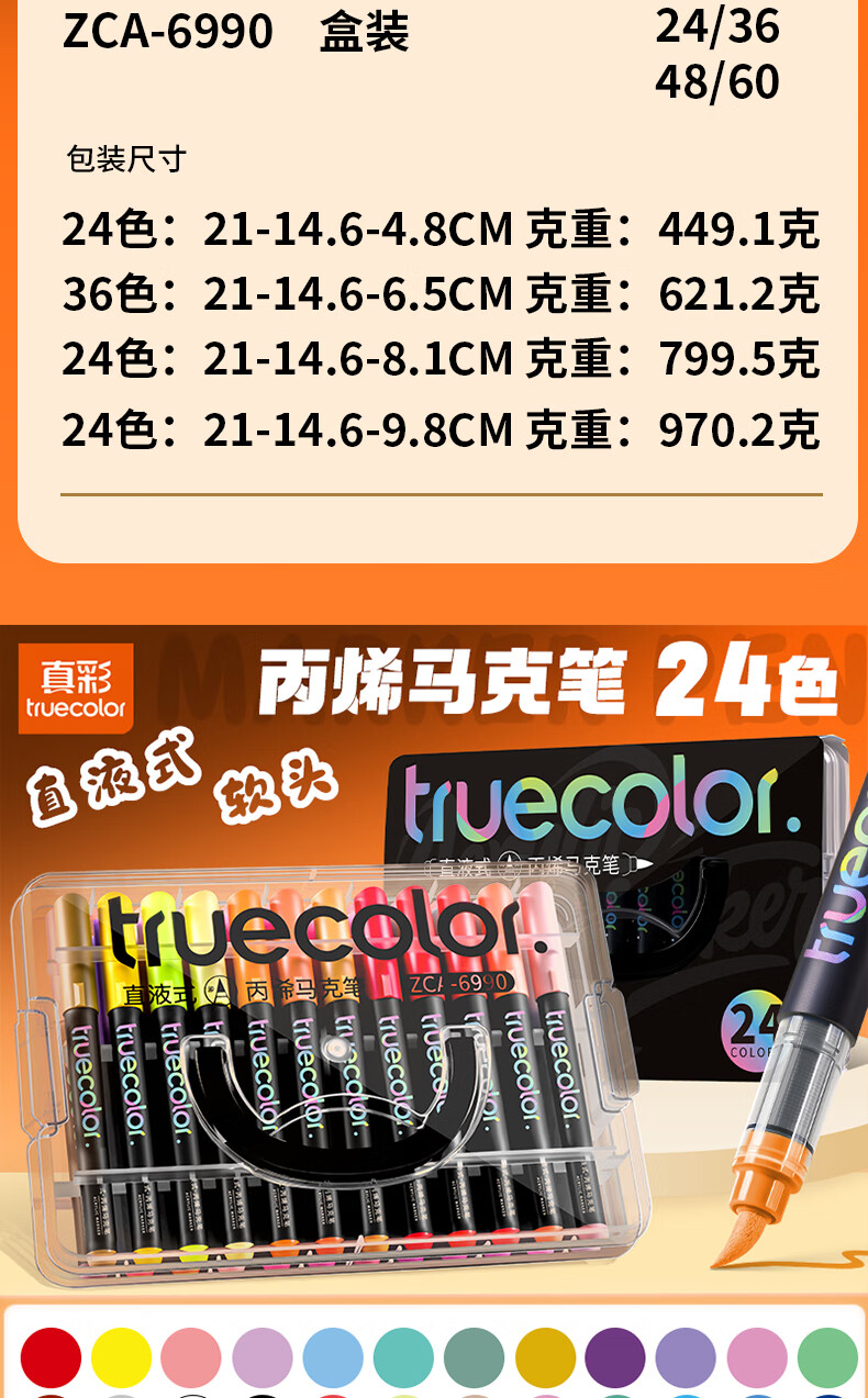 真彩(TRUECOLOR)60色直液式丙烯马克笔软头小学生专用不易透纸强覆盖力可叠色涂鸦DIY美术画画水彩笔可水洗6690