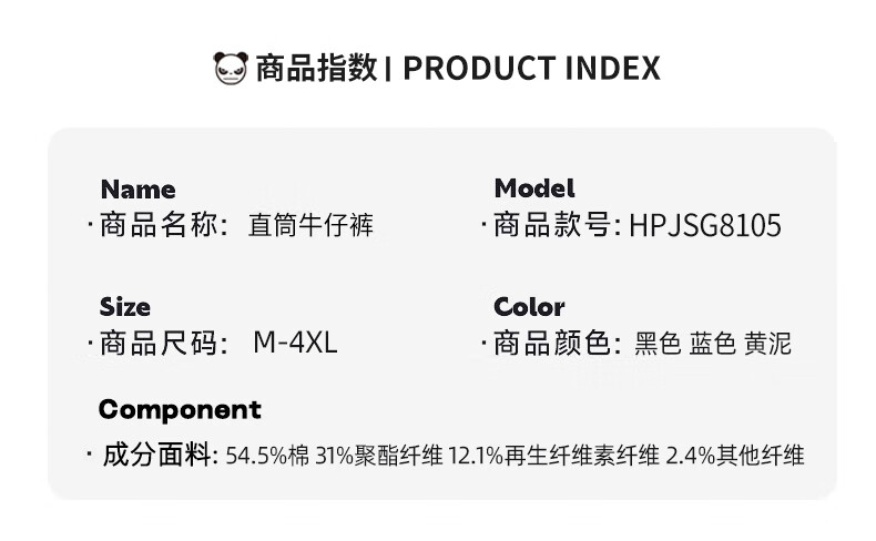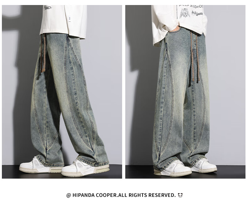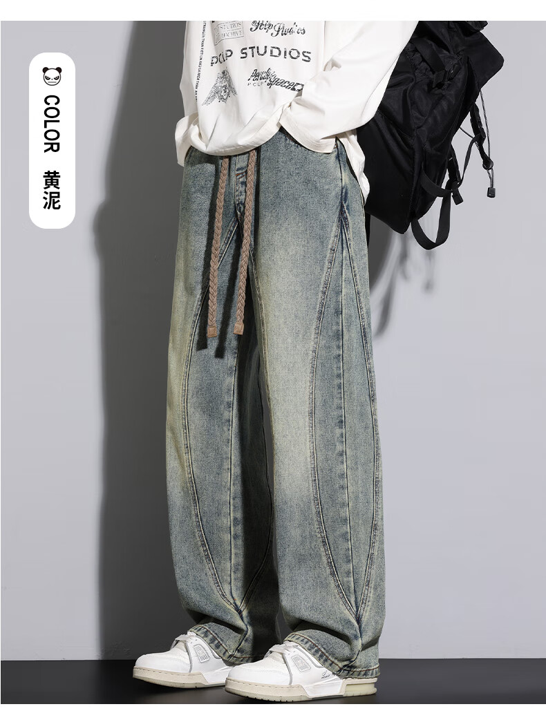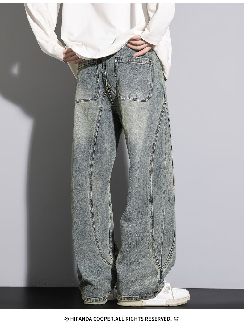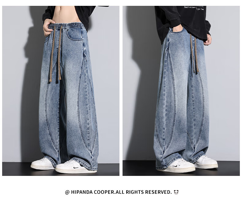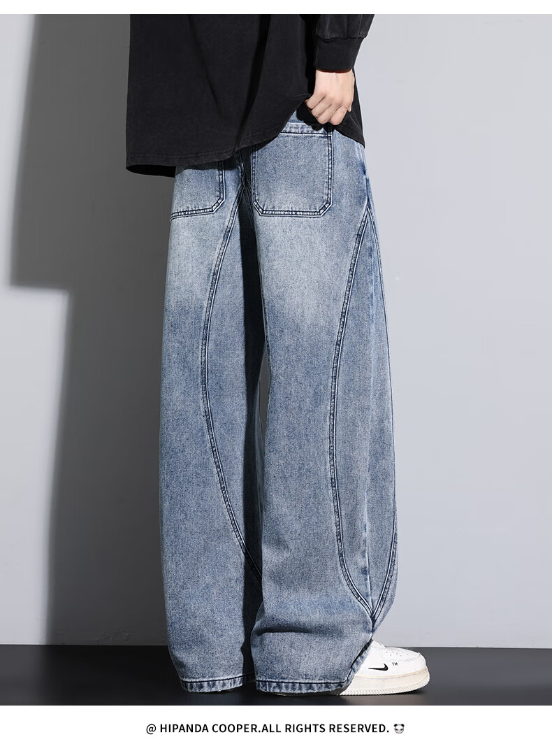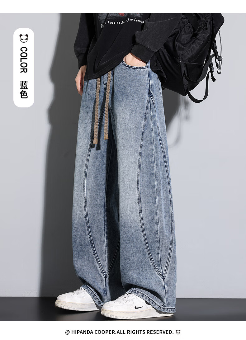 HIPANDA你好熊猫牛仔裤男202年秋冬新款宽松直筒潮流休闲裤男款百搭长裤 蓝色 M