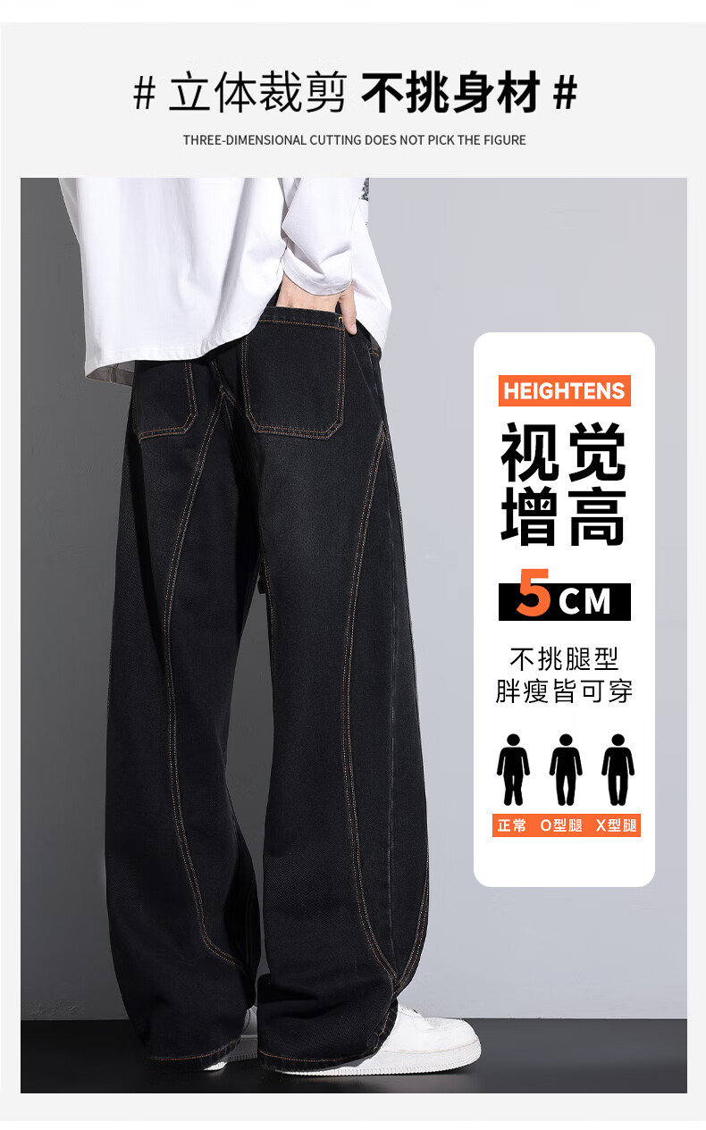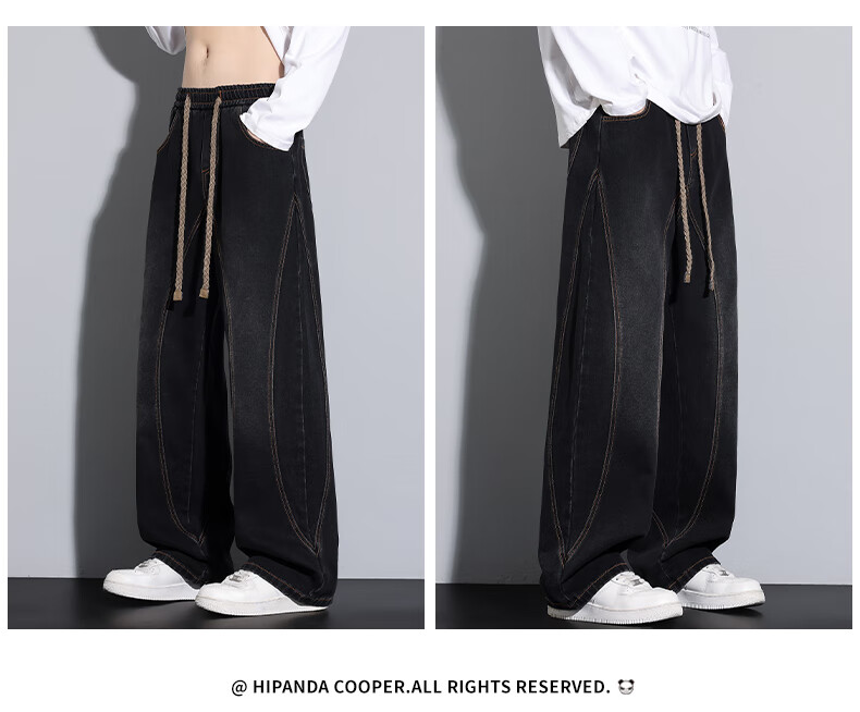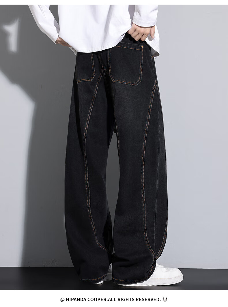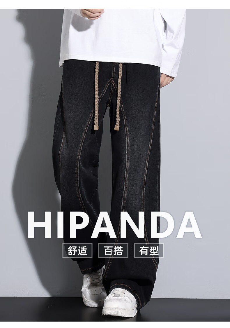 HIPANDA你好熊猫牛仔裤男2025秋冬潮流休闲经典水洗宽松直筒牛仔长裤子男 黑色 M