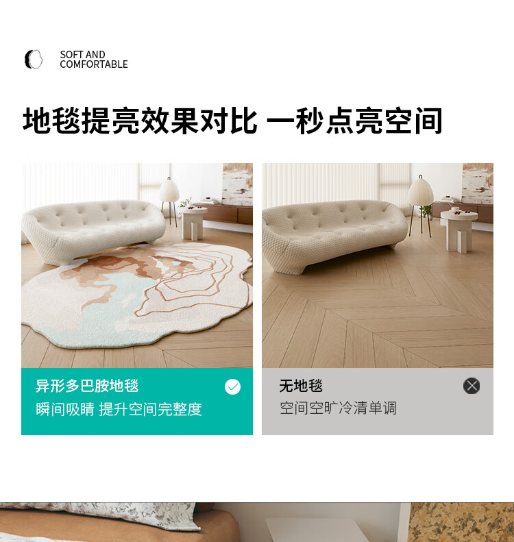 京华多巴胺不规则客厅地毯异形防水防污家用沙发卧室床边毯设计师款 冰岛苔原 60cm*150cm