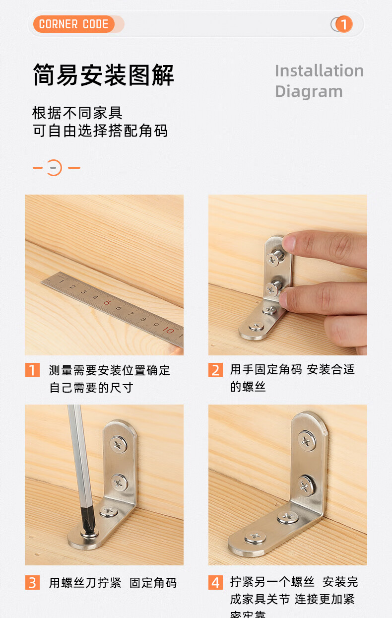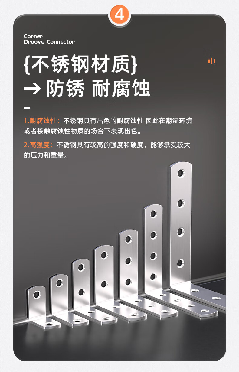 天卓五金不锈钢角码90度直角固定器三角铁片层板托L型支架家具连接件牢固 角码80*80*19*3.0【5个】