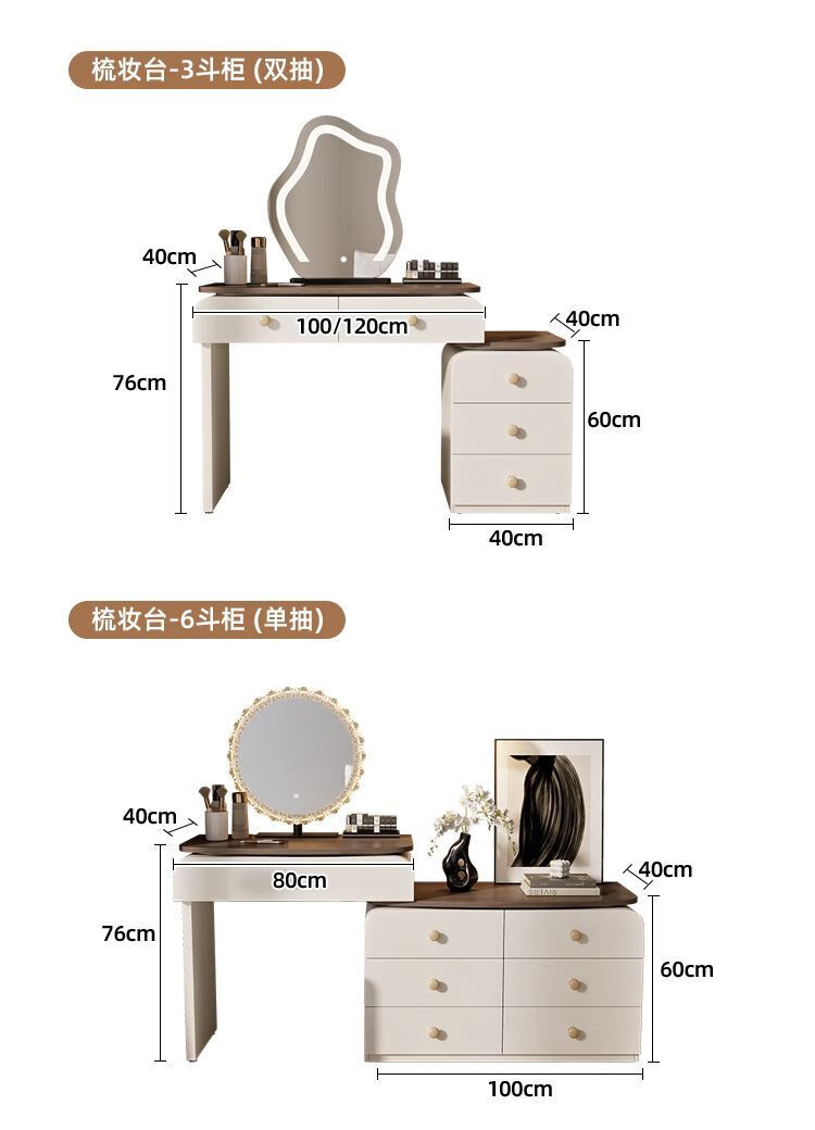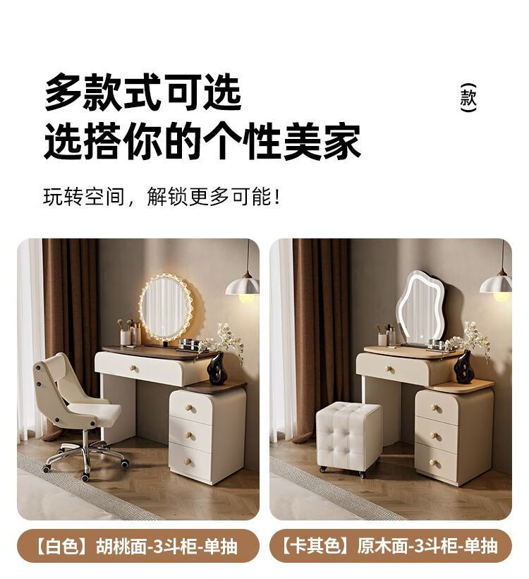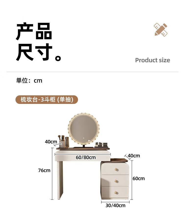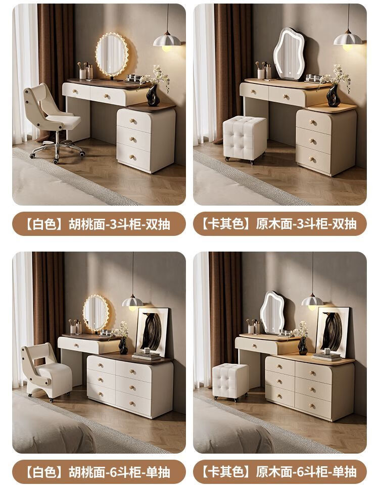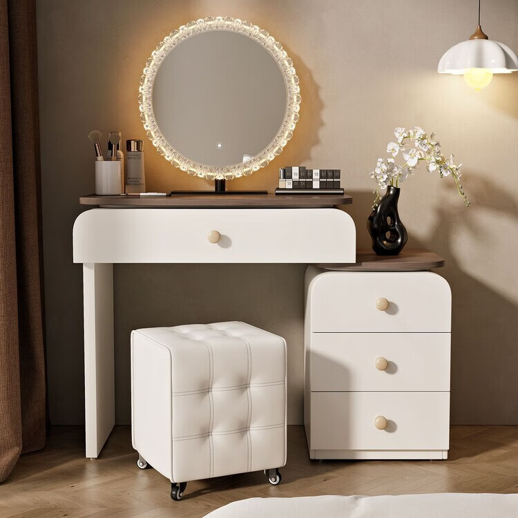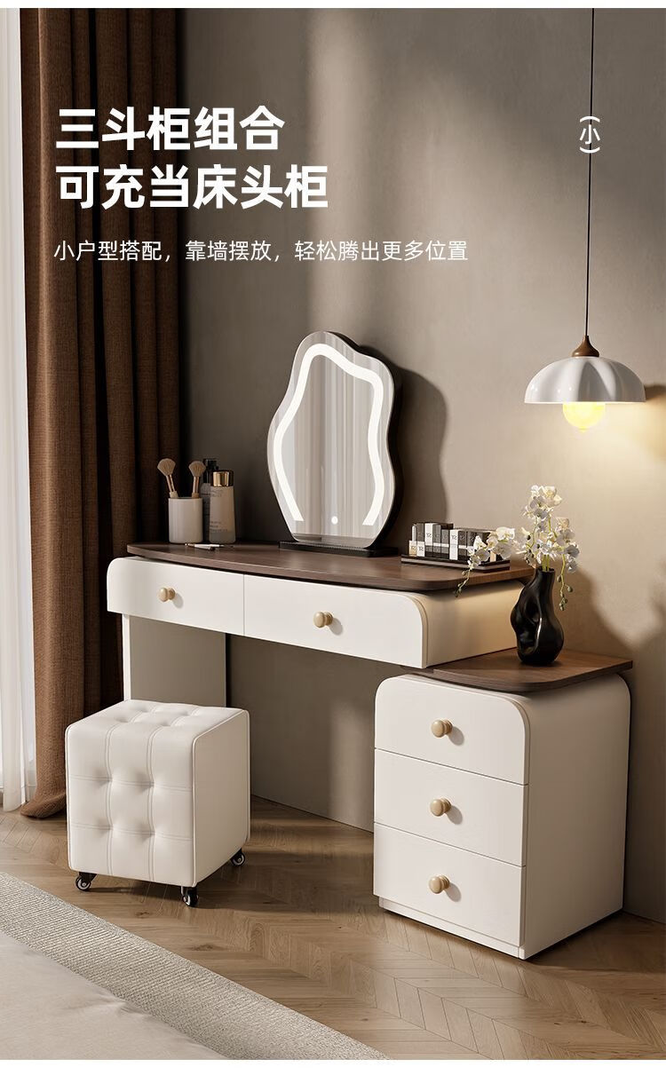 欣慕雅胡桃梳妆台卧室梳妆台一体收纳柜多功能化妆桌简约床头柜 0.3米三斗柜白色胡桃面【送货上门】 60CM桌+太阳镜+劳伦斯凳