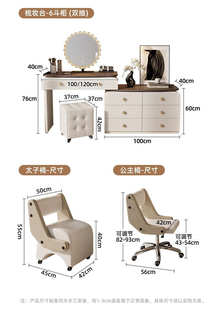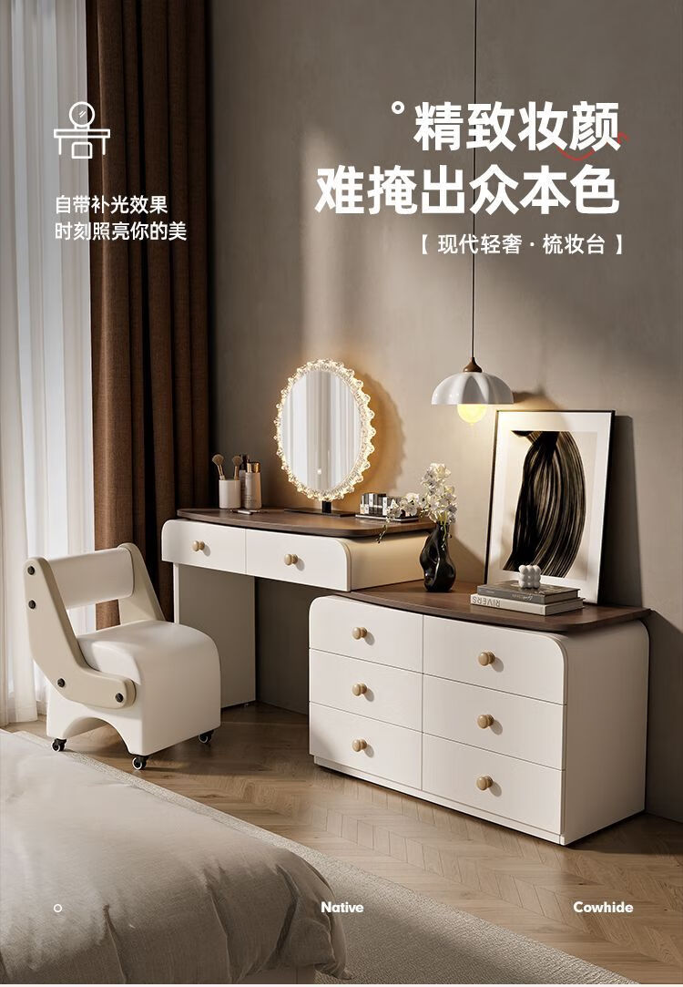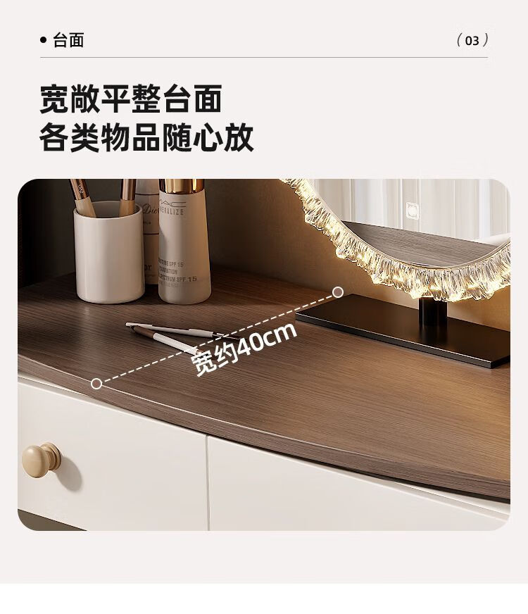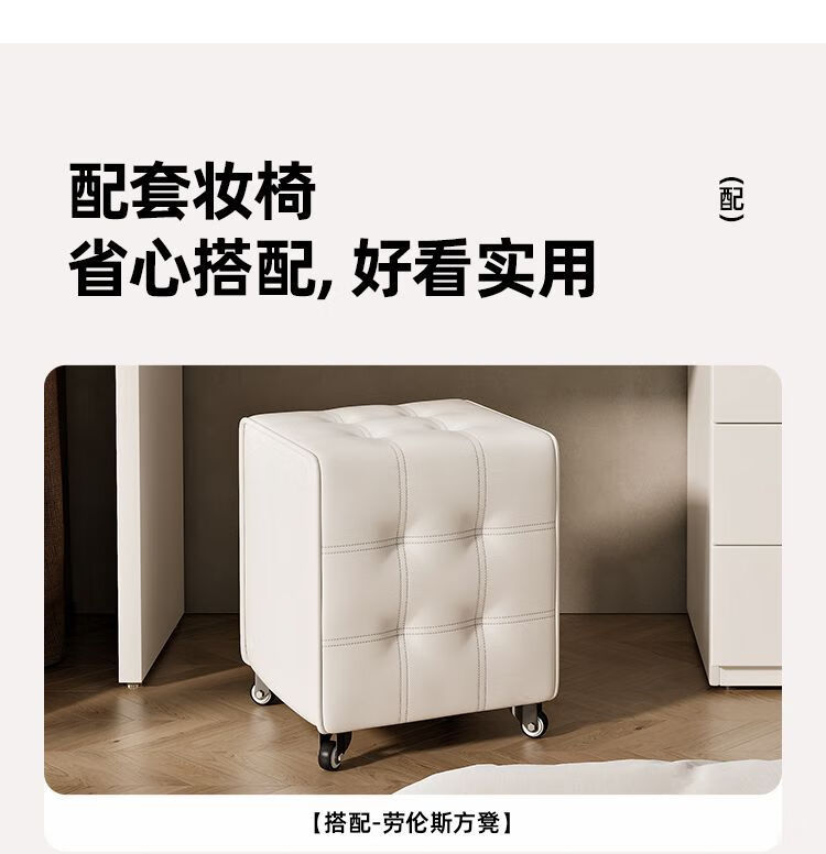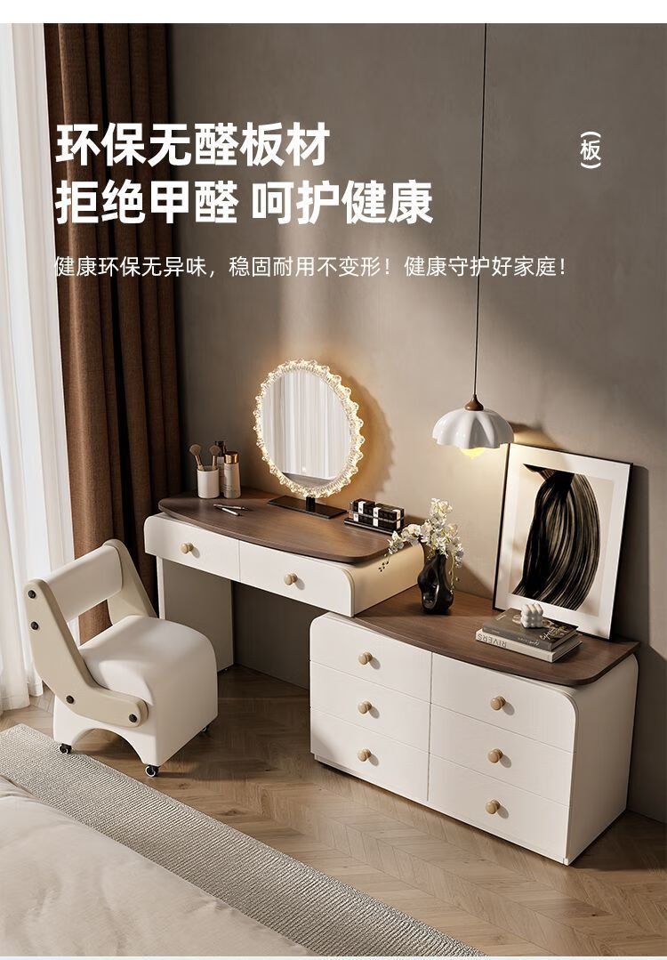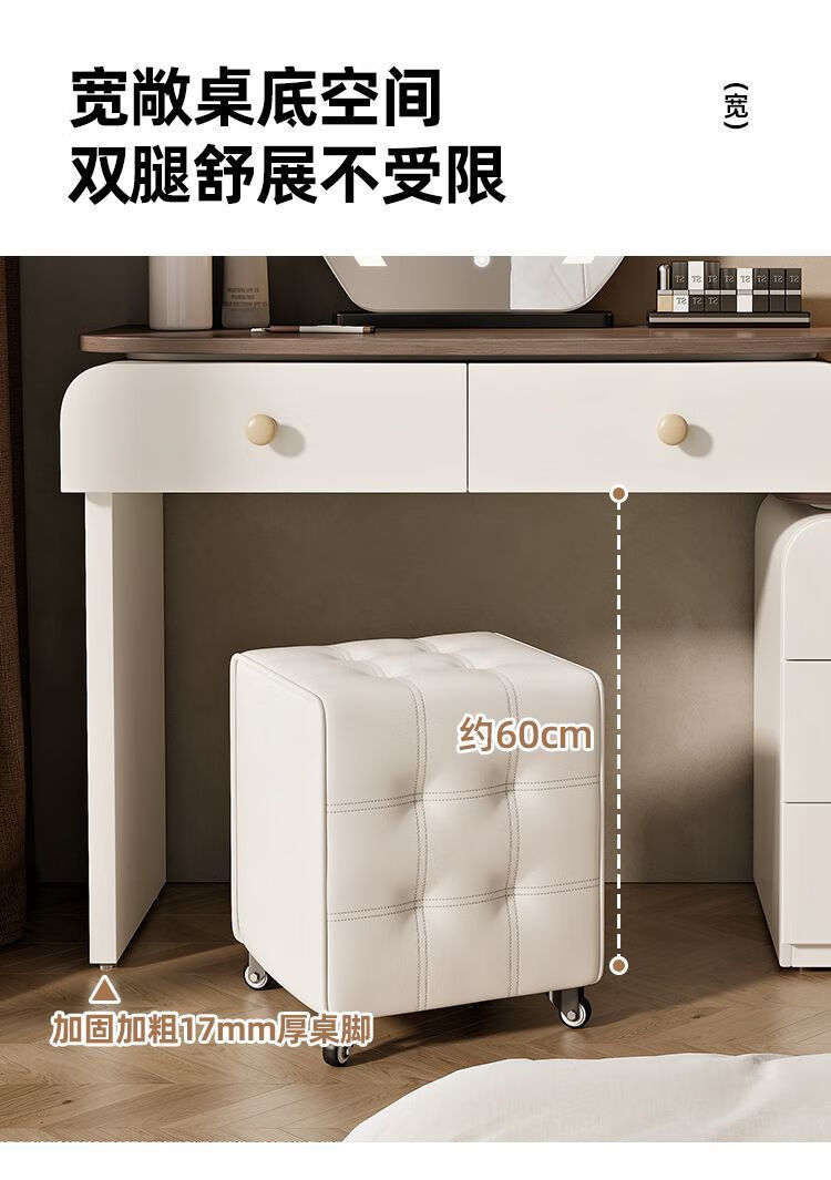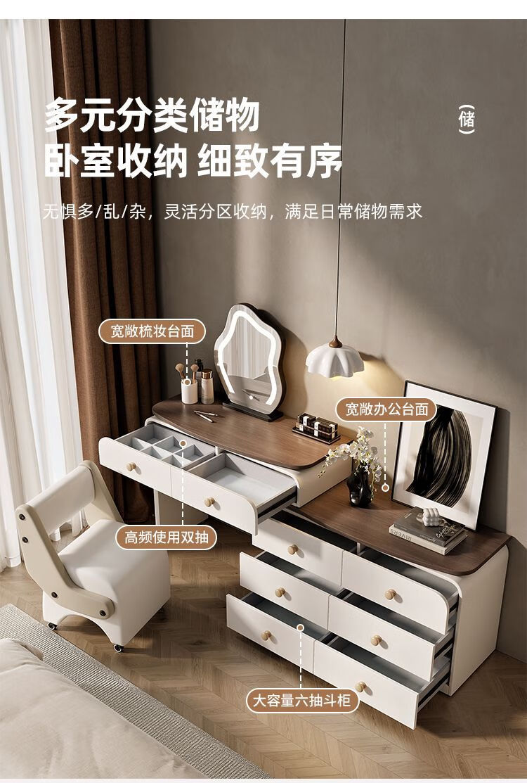 欣慕雅胡桃梳妆台卧室梳妆台一体收纳柜多功能化妆桌简约床头柜 0.3米三斗柜白色胡桃面【送货上门】 60CM桌+太阳镜+劳伦斯凳