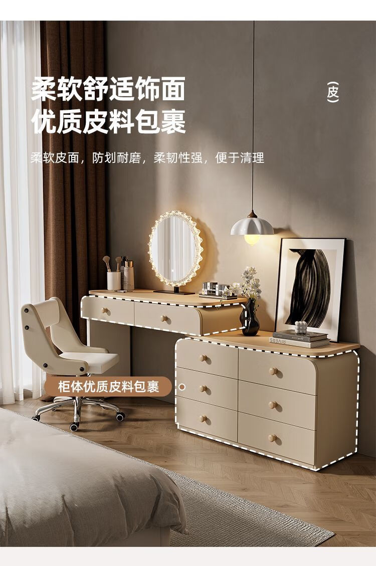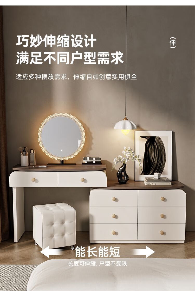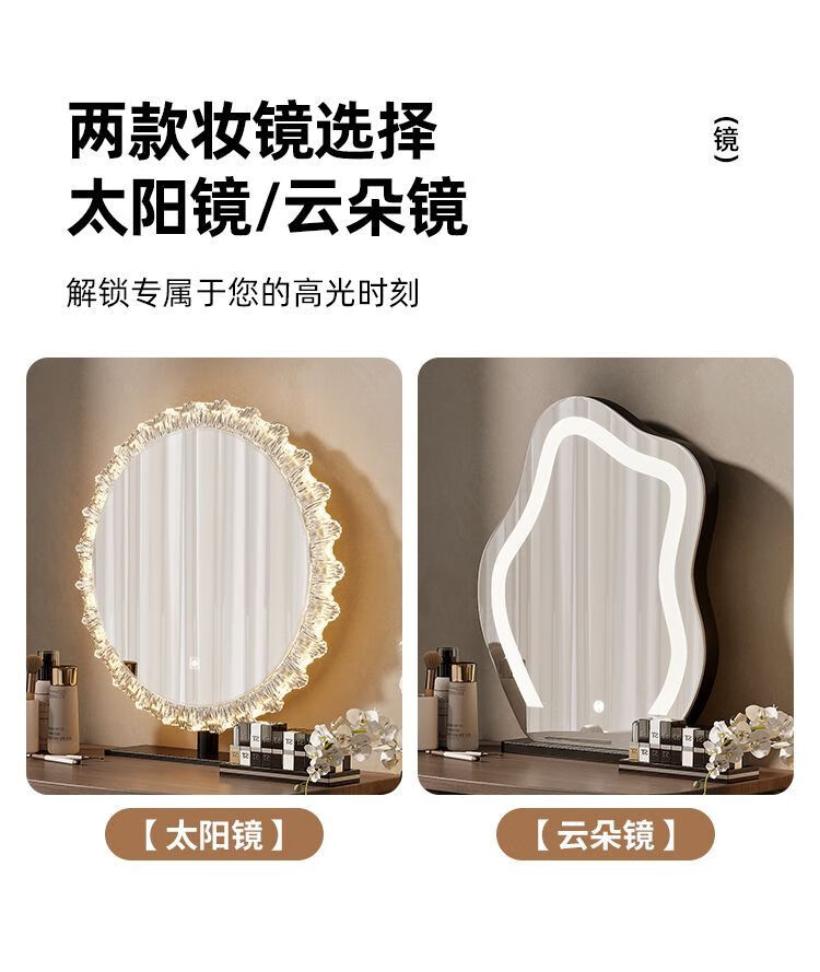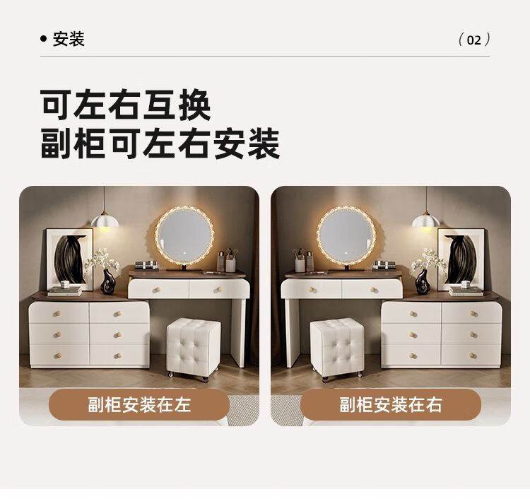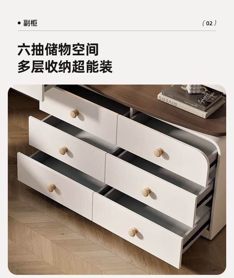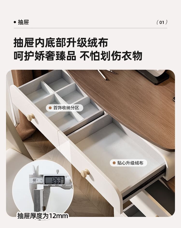 欣慕雅胡桃梳妆台卧室梳妆台一体收纳柜多功能化妆桌简约床头柜 0.3米三斗柜白色胡桃面【送货上门】 60CM桌+太阳镜+劳伦斯凳