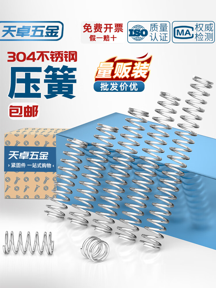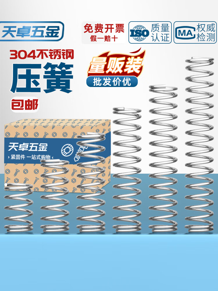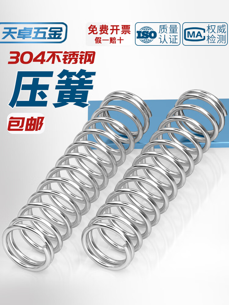 天卓五金线径0.3 0.4 0.5 0.6mm 304不锈钢压簧弹簧压缩簧压力大小减震簧 0.5*5*10【50个】