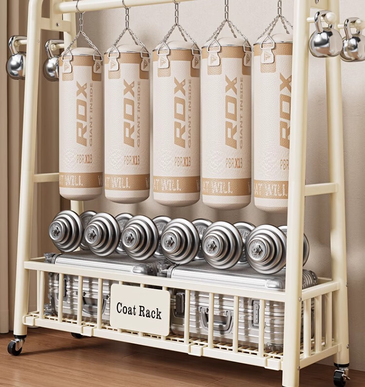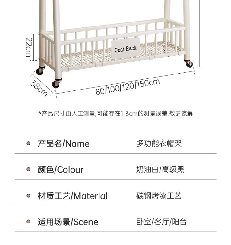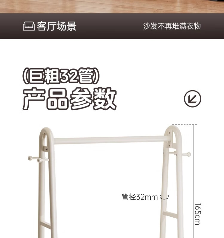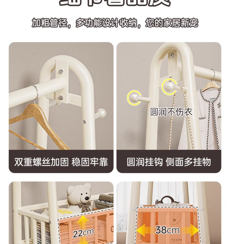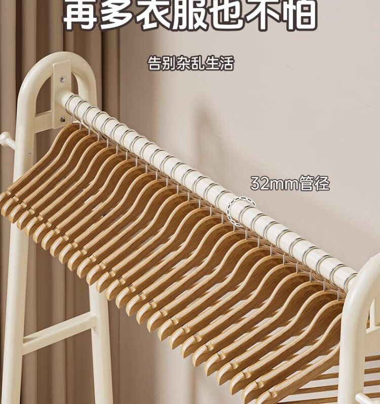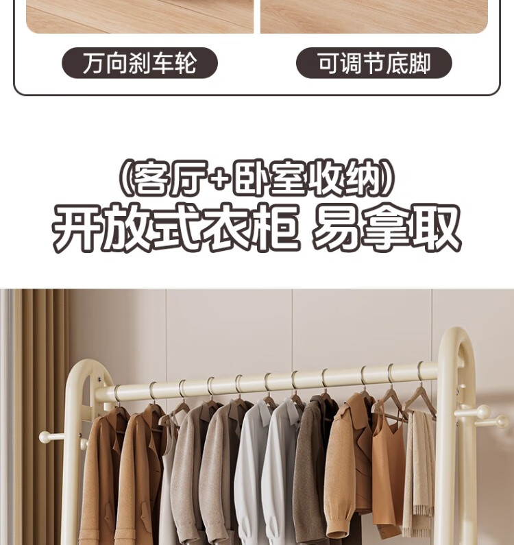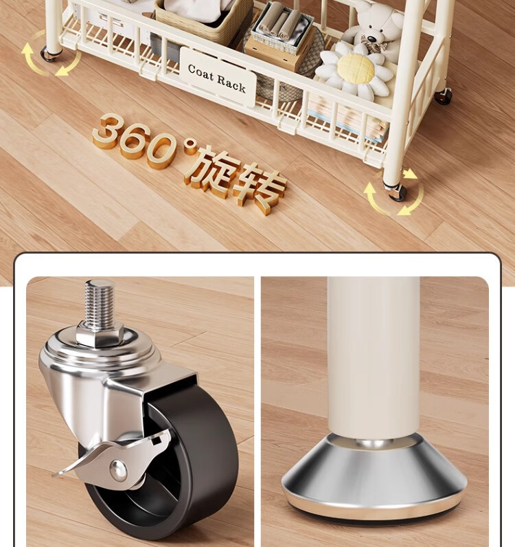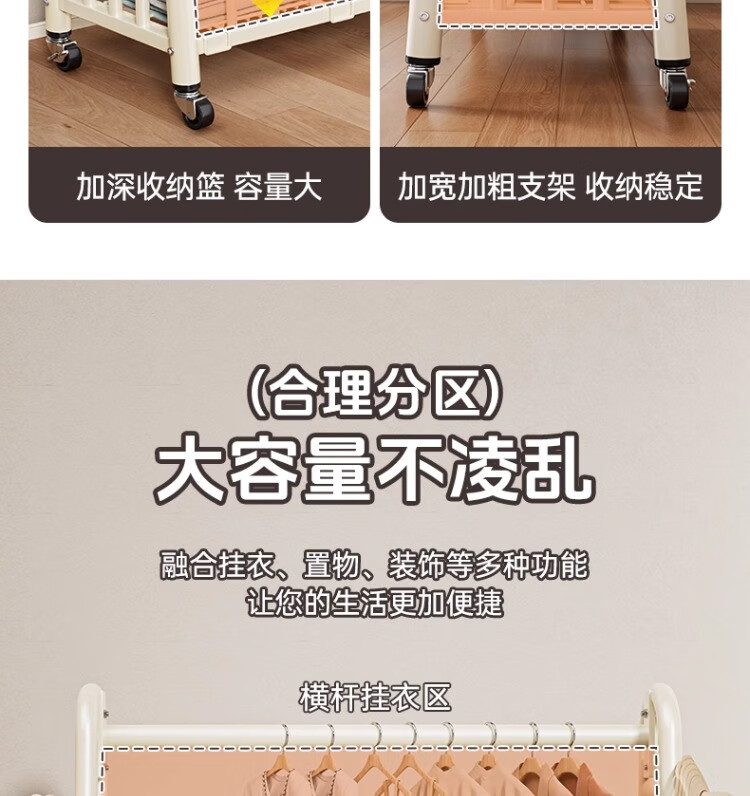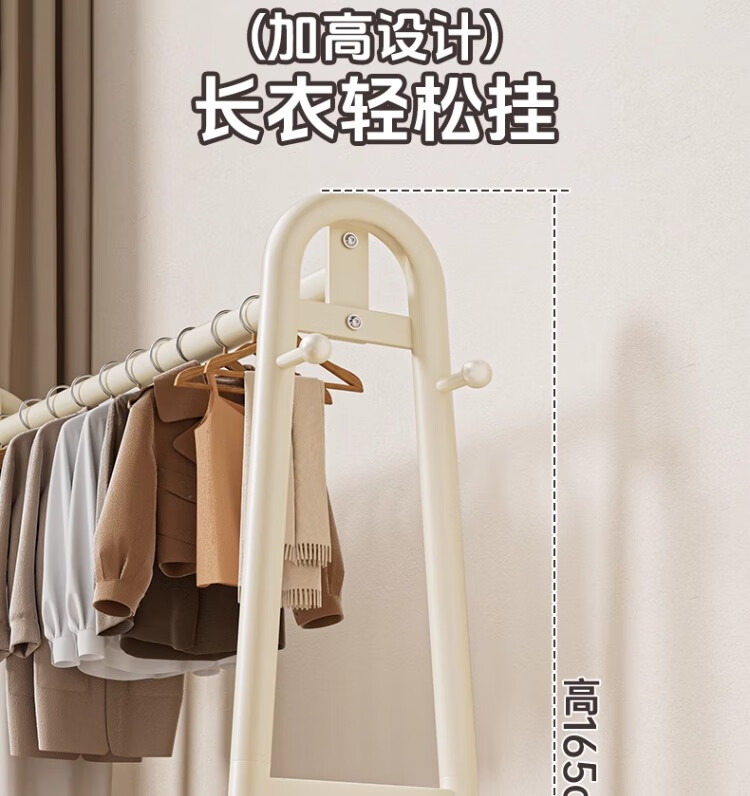 衣炫简易衣帽架落地卧室阳台家用室内挂衣架可移动晾衣架衣服收纳架子 【特粗25管】奶油白长80 加深网篮+金属轮