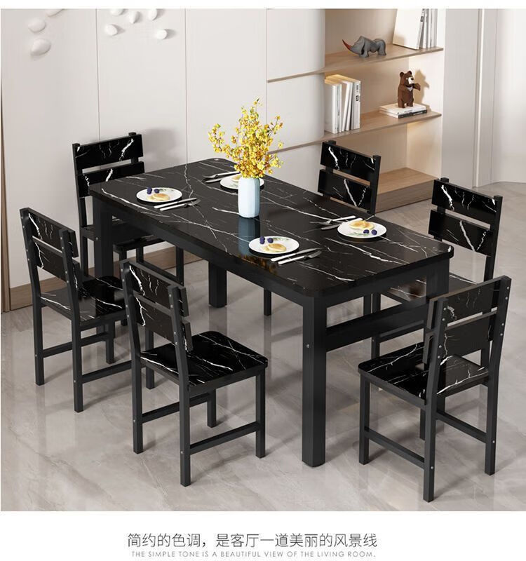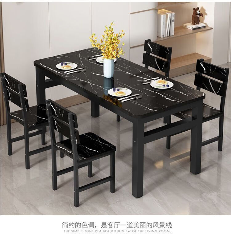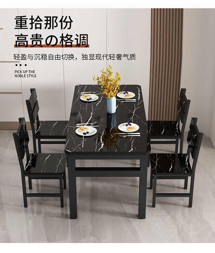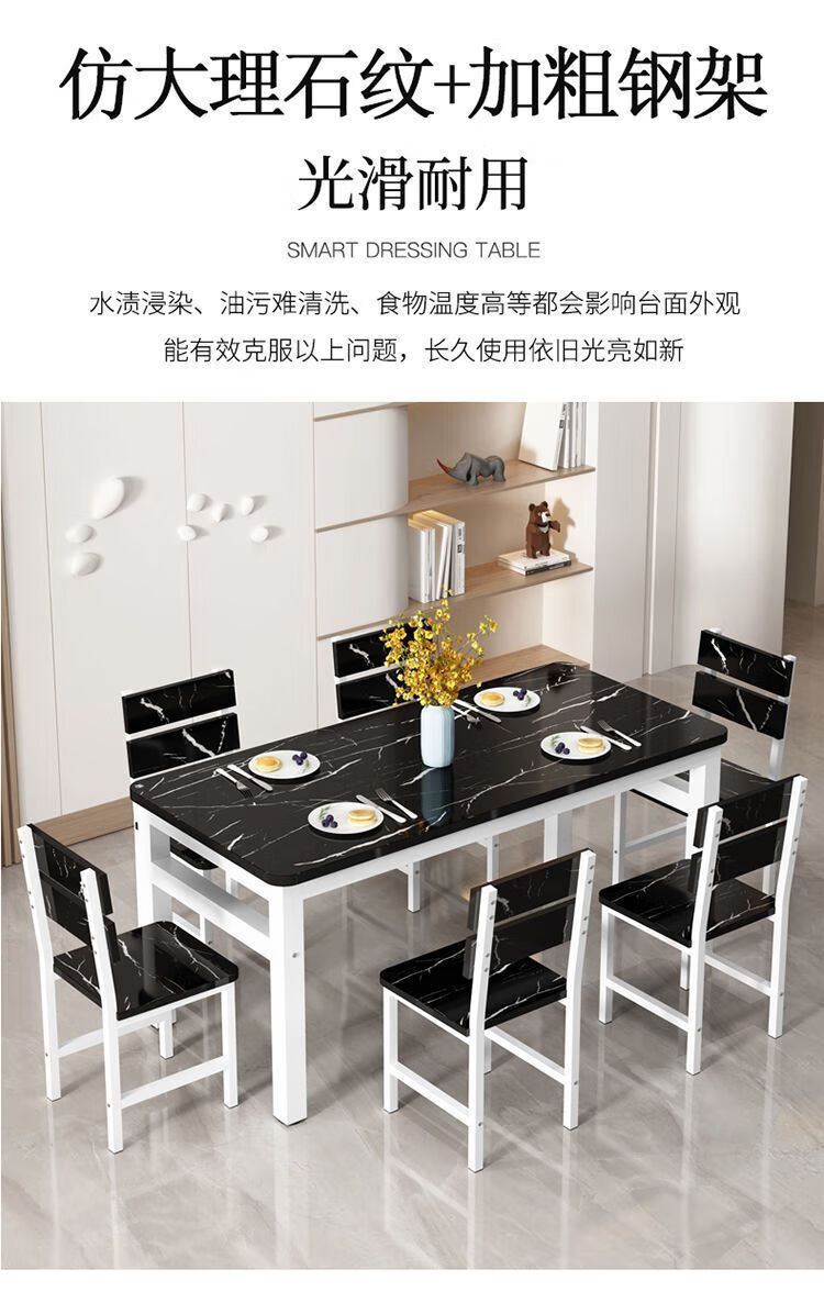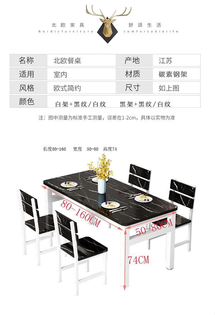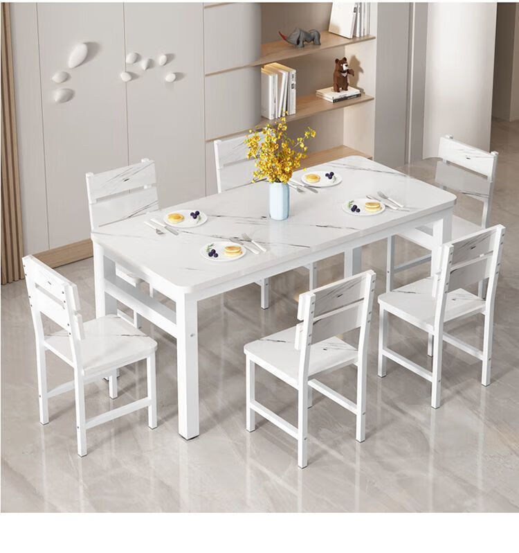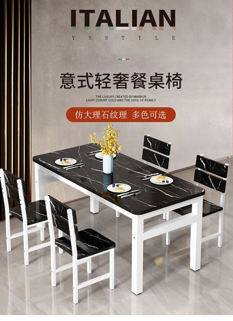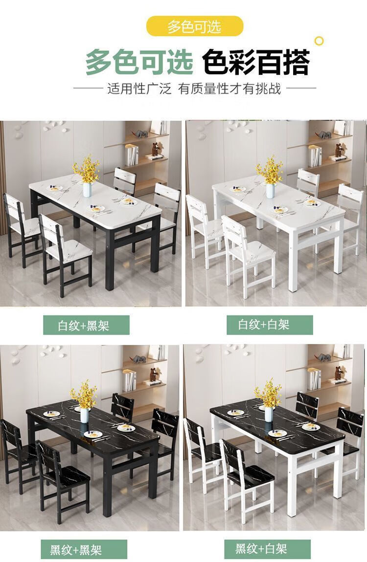 倘然之家餐桌椅组合家用吃饭桌子现代简约小户型餐桌饭店桌椅长方形小桌子 白色仿大理石桌面+白架 80*50*74单桌