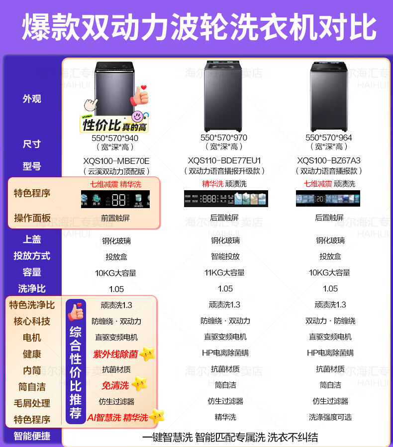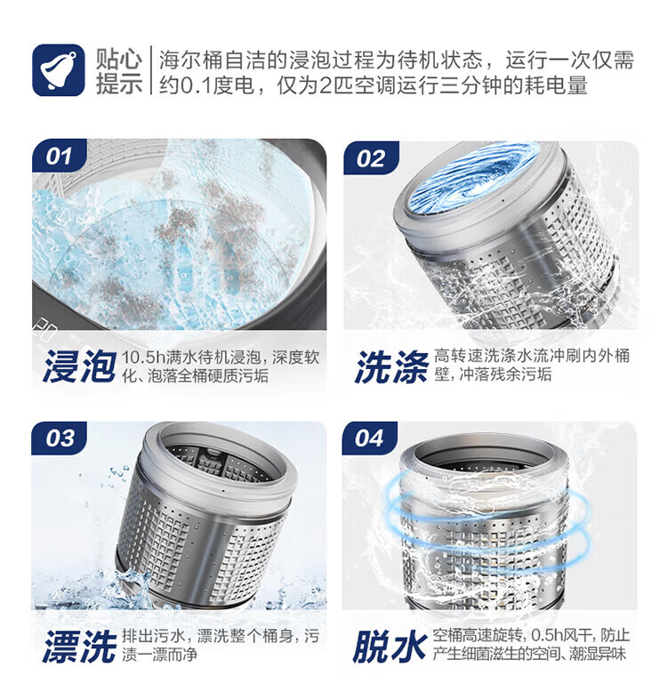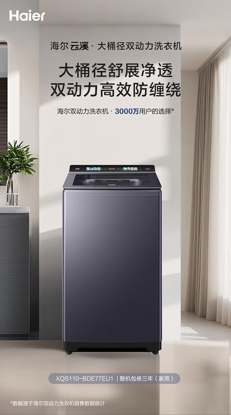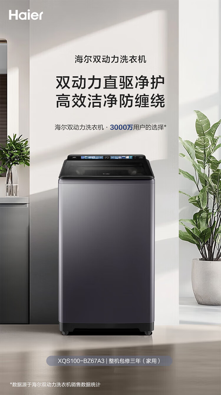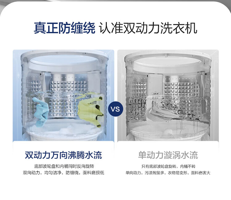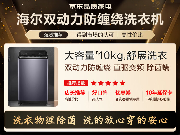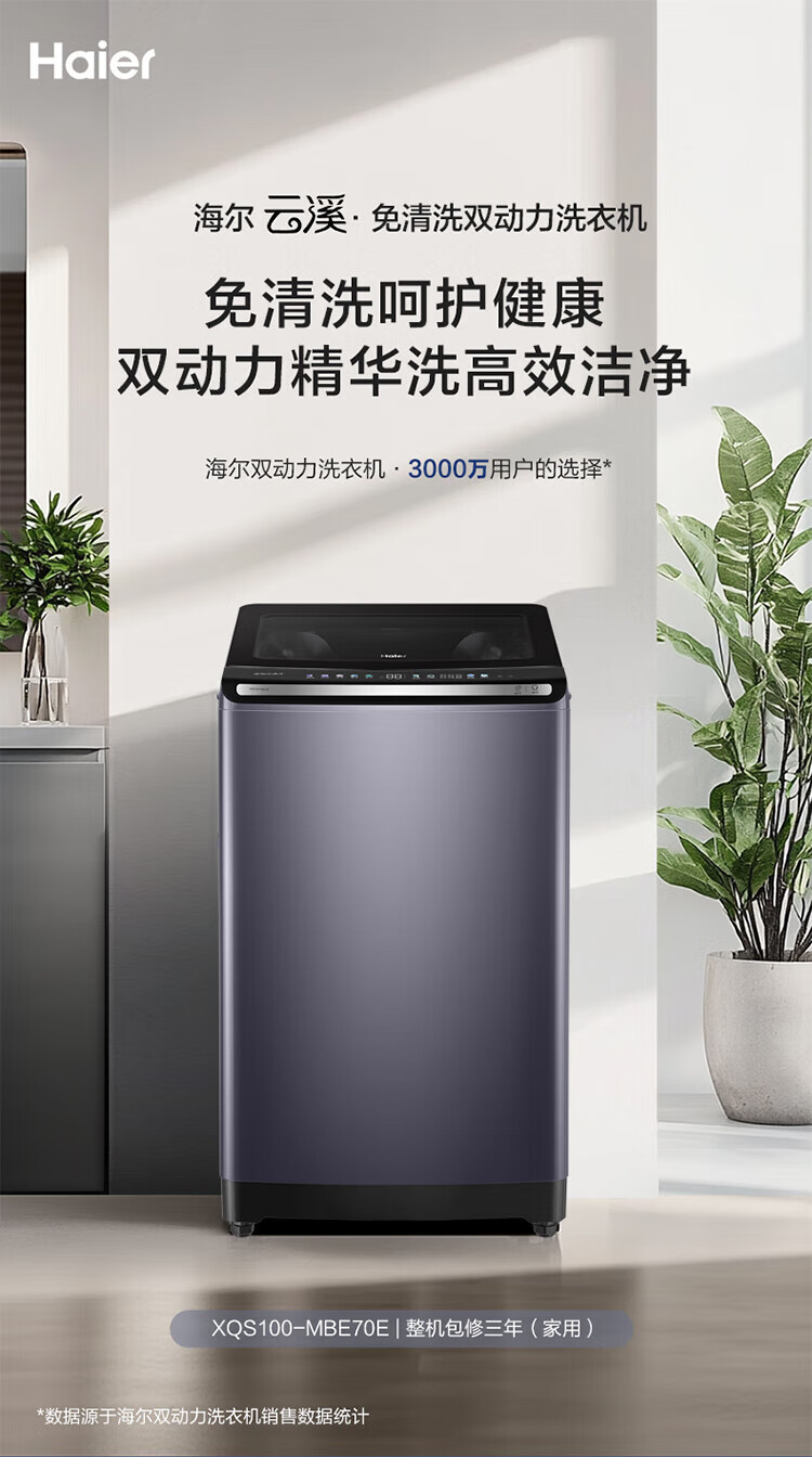 海尔【云溪4.0】波轮洗衣机10公斤双动力家用直驱变频全自动精华洗一级能效防缠绕 专业羽绒洗 除菌螨 【70E双动力】免清洗+精华洗+紫外线除菌+直驱