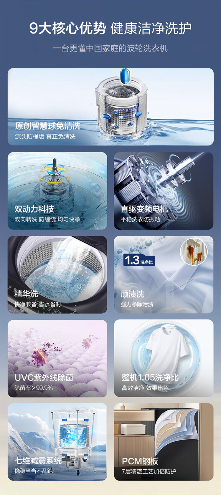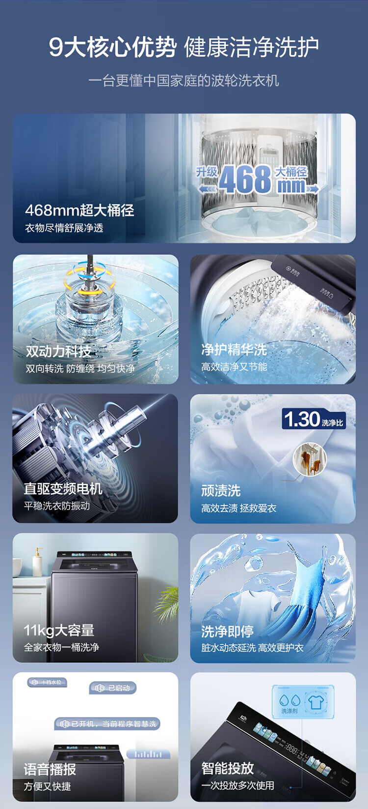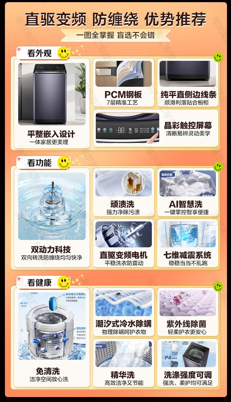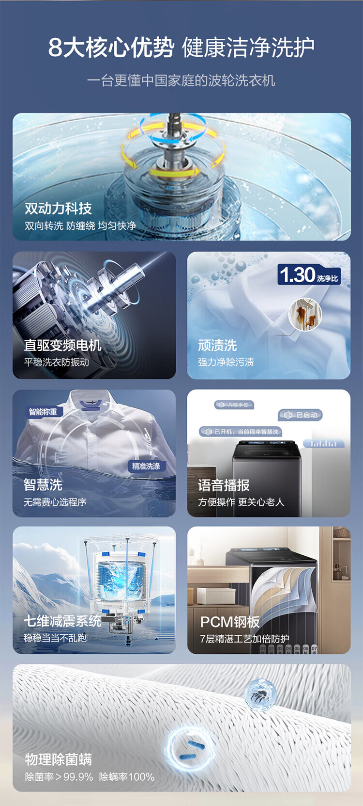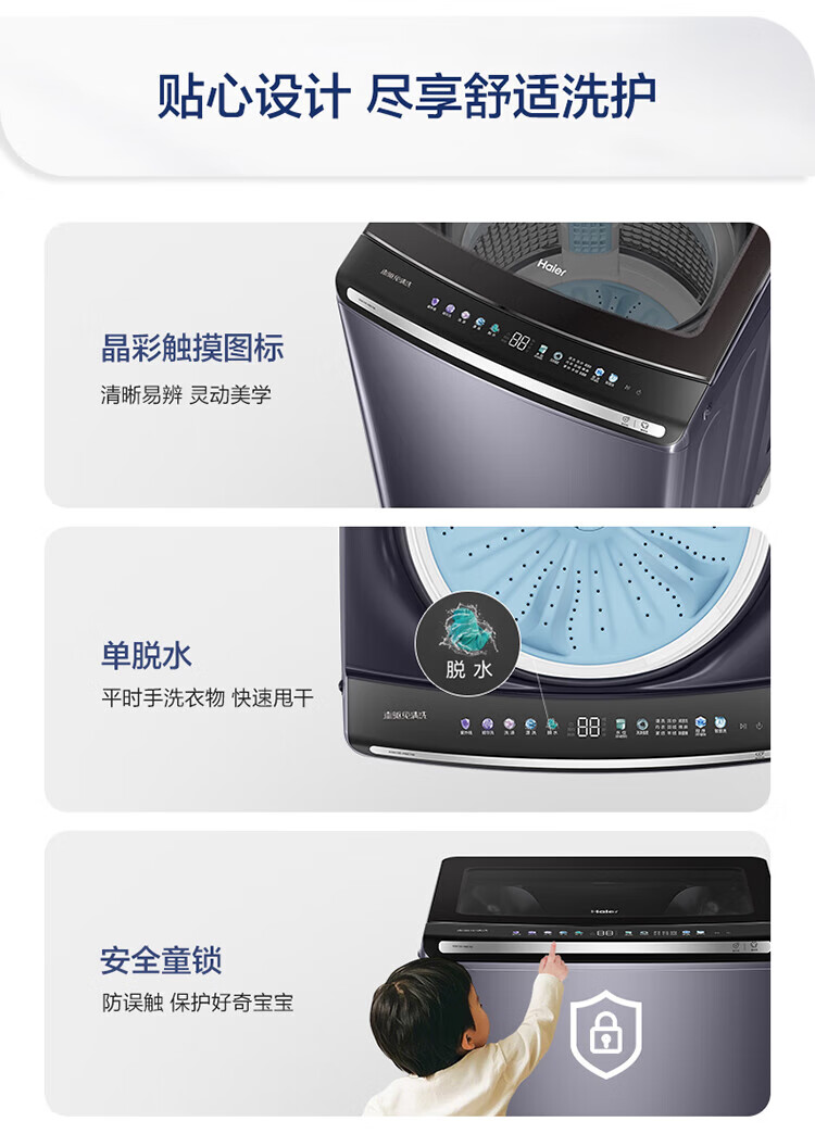 海尔【云溪4.0】波轮洗衣机10公斤双动力家用直驱变频全自动精华洗一级能效防缠绕 专业羽绒洗 除菌螨 【70E双动力】免清洗+精华洗+紫外线除菌+直驱