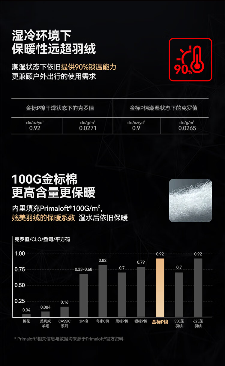 伯希和(Pelliot)[成毅同款]Primaloft金标P棉棉服男保暖防风冬季外套115376009黑L