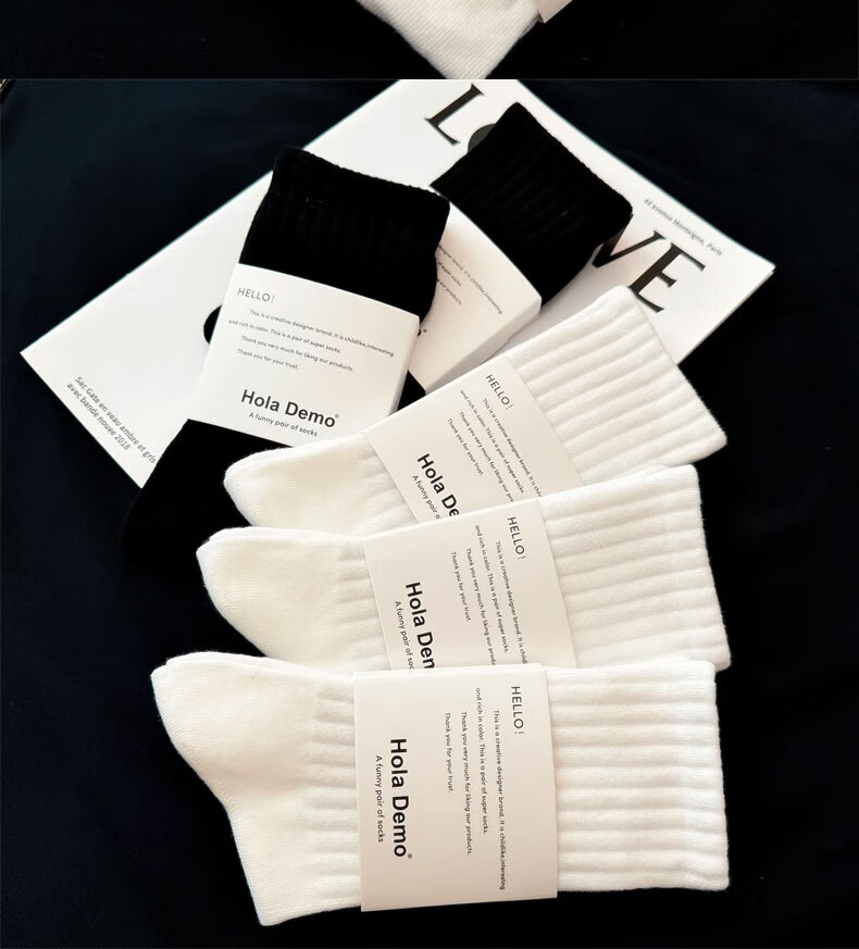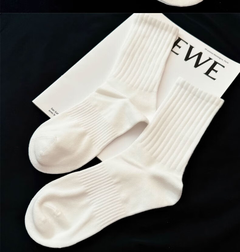【品质耐穿袜子】新款中筒袜毛巾底男运动袜亲肤吸汗纯色黑白袜 【黑色+白色+灰色】 3双 均码
