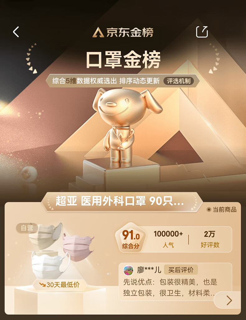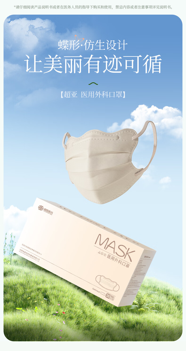 超亚医用外科口罩一次性独立包装一只一袋秋冬防过敏防尘蝶形成人90只