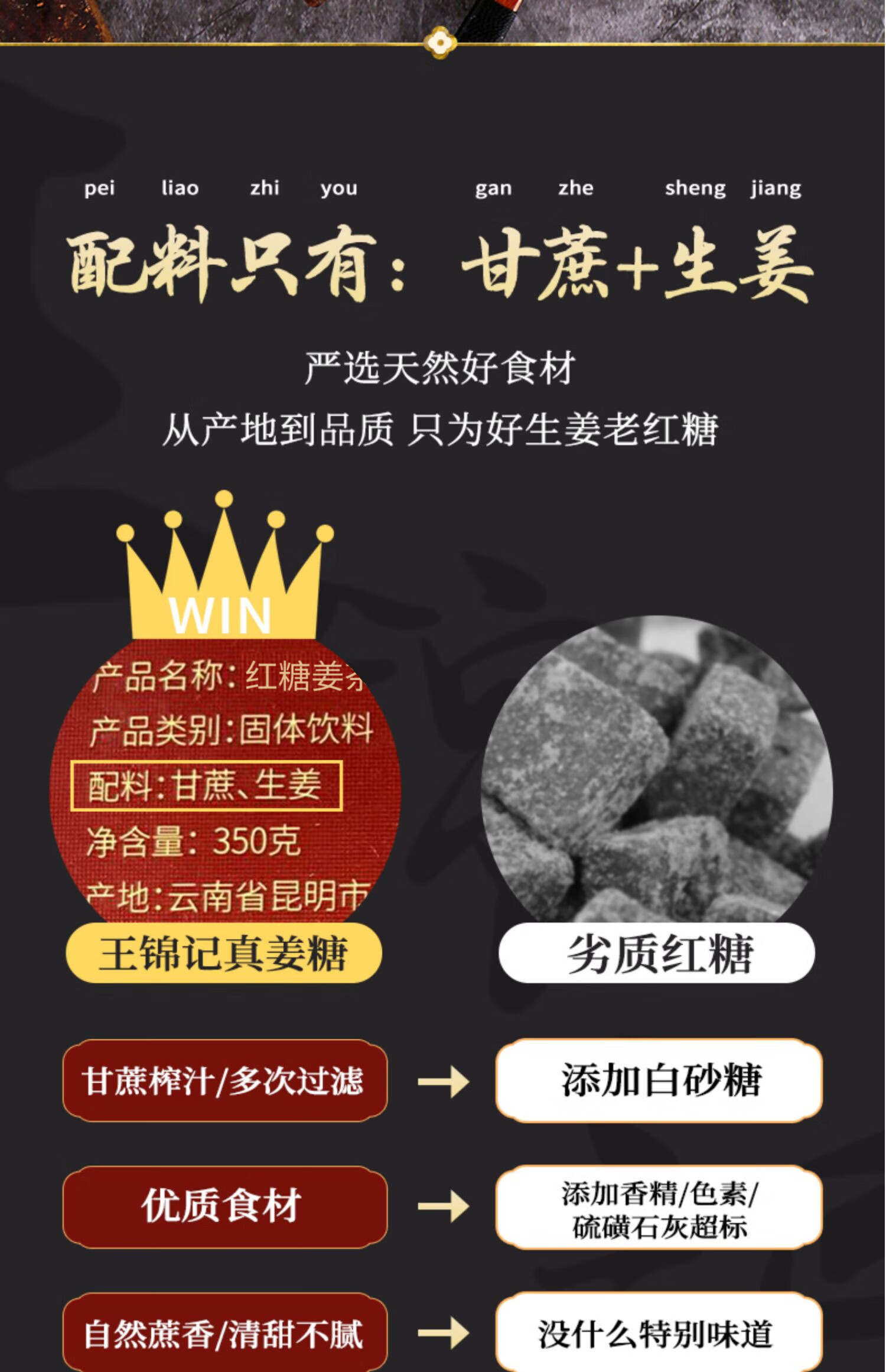 王锦记红糖姜茶云南生姜手工老红糖 350g*1盒