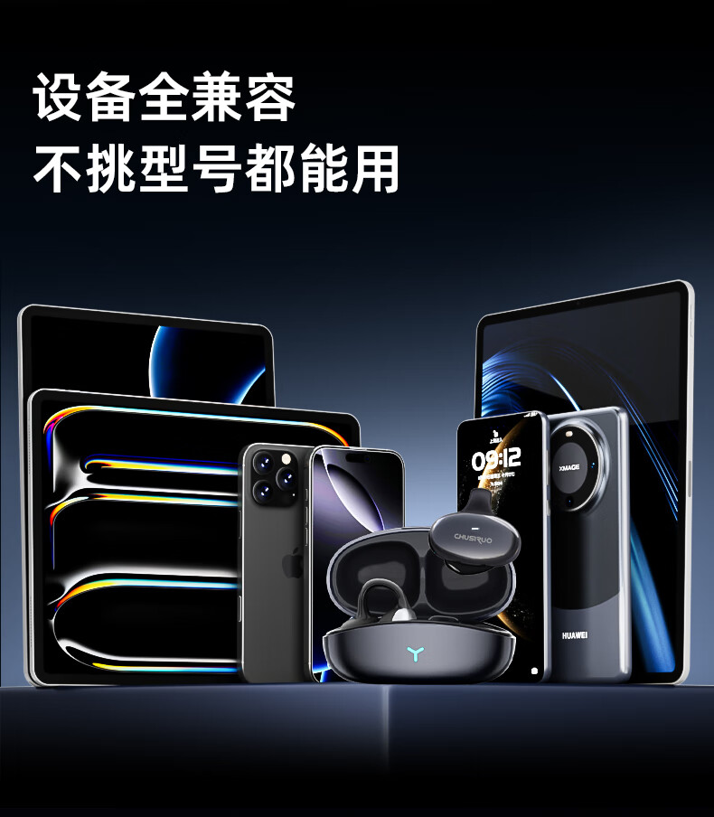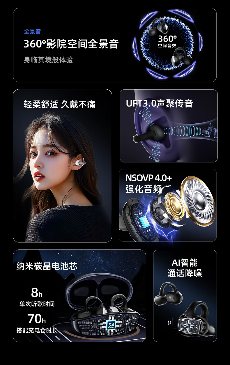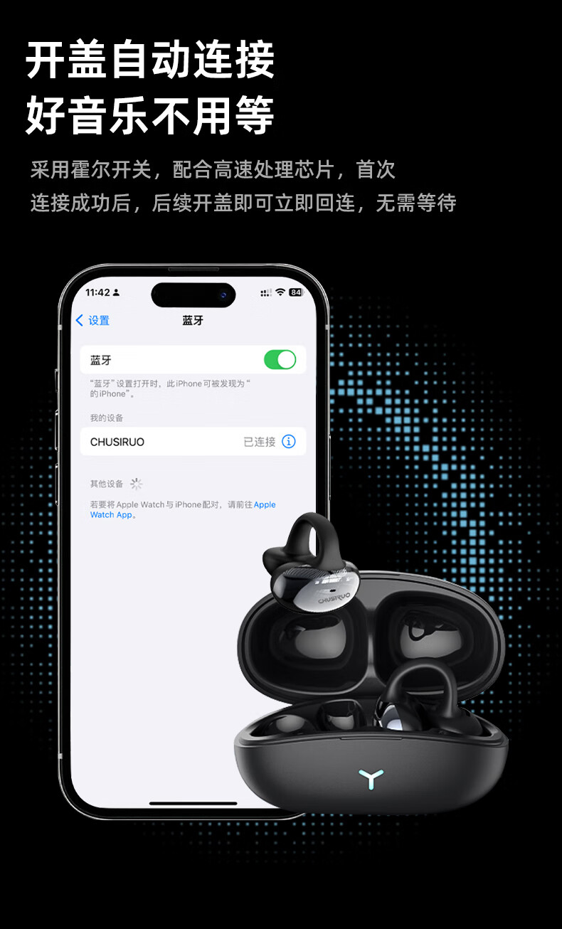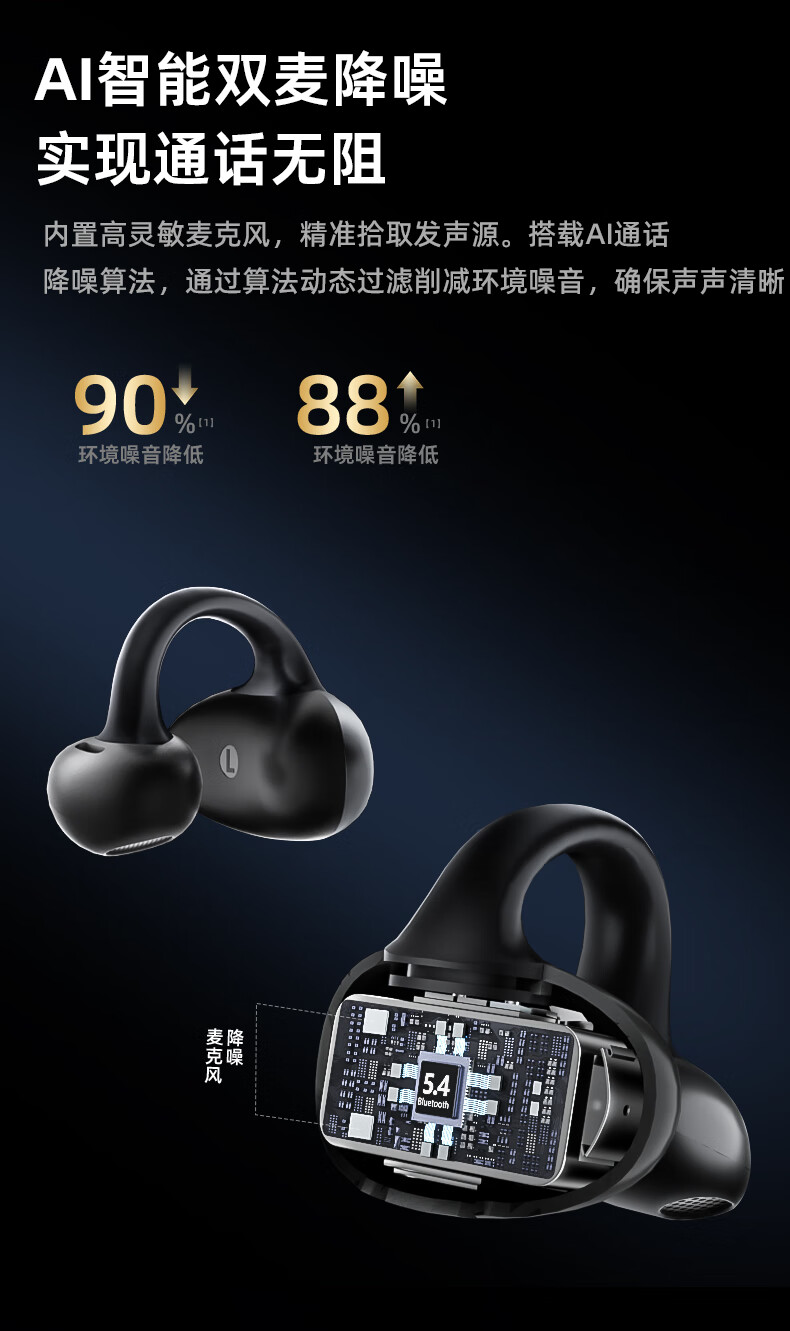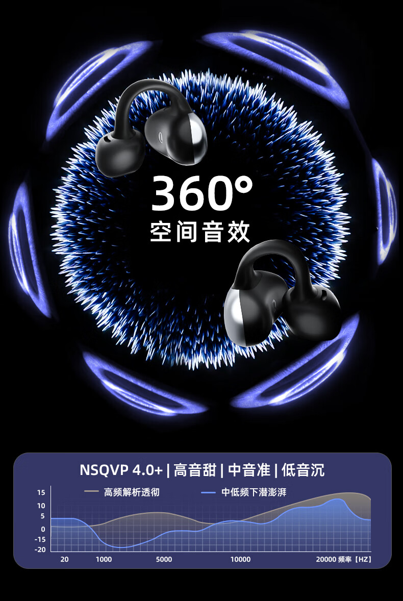 CHUSIRUO【柏林之声丨全景音效】2025新款无线蓝牙耳机耳夹式不入耳通话降噪超长续航音乐耳机适配华为苹果 冠军版-曜夜黑