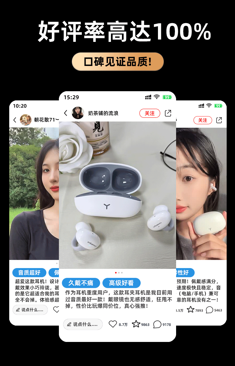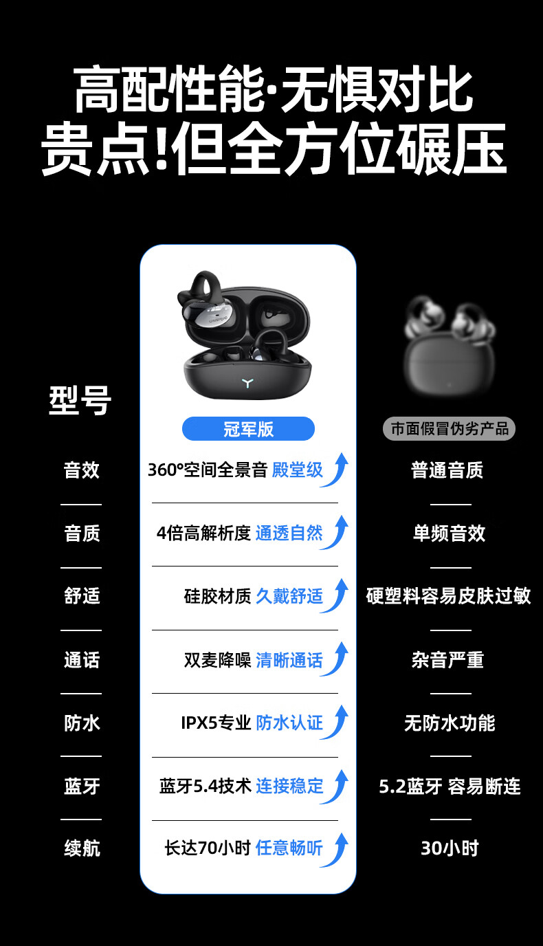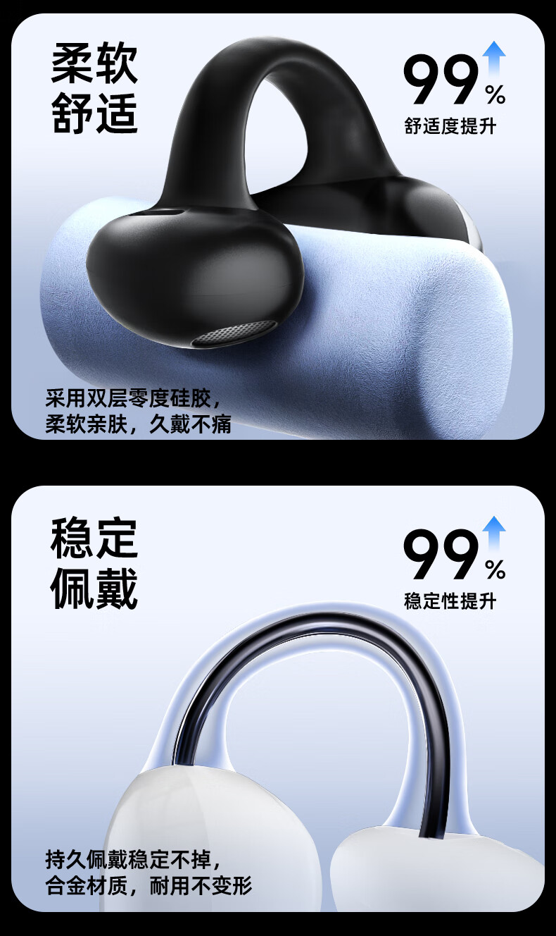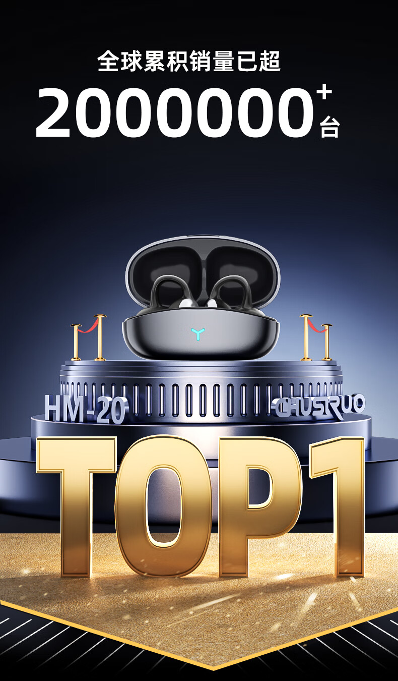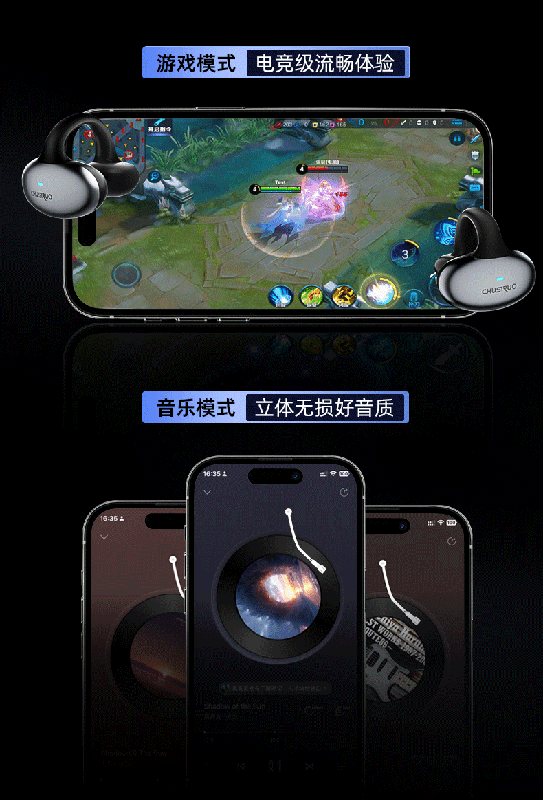 CHUSIRUO【柏林之声丨全景音效】2025新款无线蓝牙耳机耳夹式不入耳通话降噪超长续航音乐耳机适配华为苹果 冠军版-曜夜黑