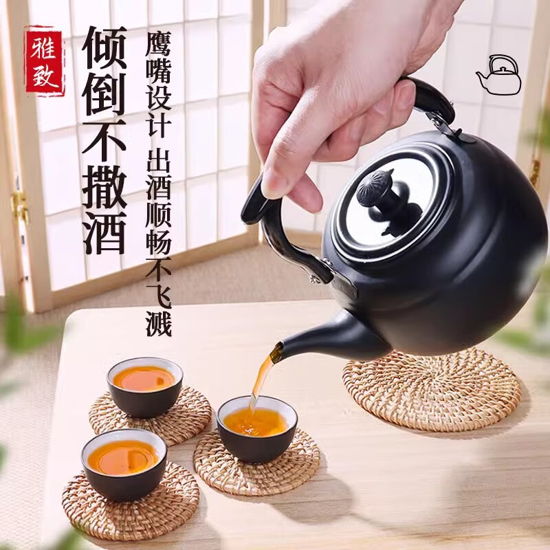 贝净洁黄酒温酒壶热酒壶家用烫酒煮酒器加厚不锈钢热花雕酒壶煮酒神器 特厚1.2L温酒壶【约装2斤酒水】