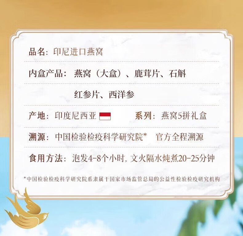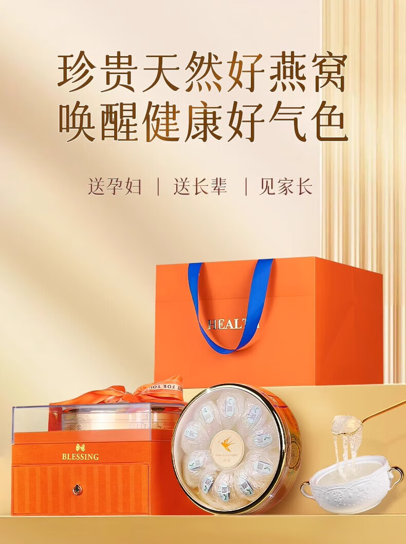 流连湾燕窝西洋参高档滋补年货礼盒送长辈父母女性朋友孕妇滋补新年礼物 送妈妈高端礼 燕窝(大)+西洋参+石斛+红参+鹿茸