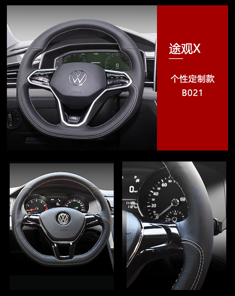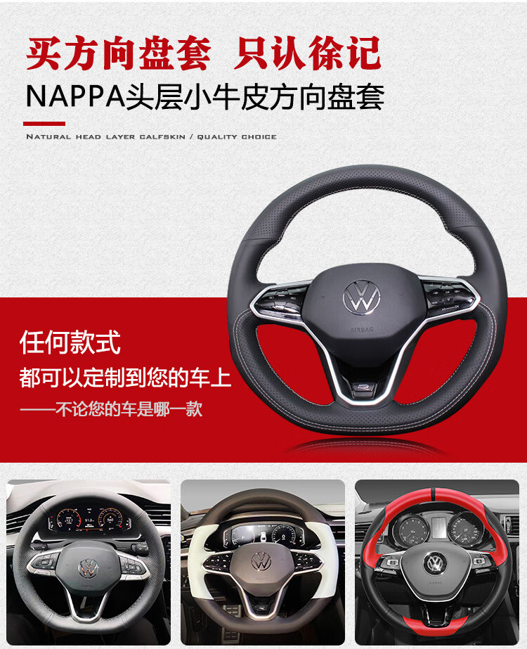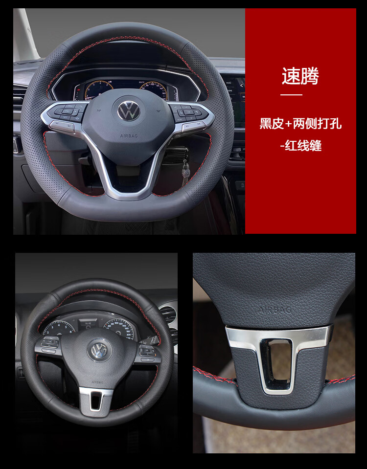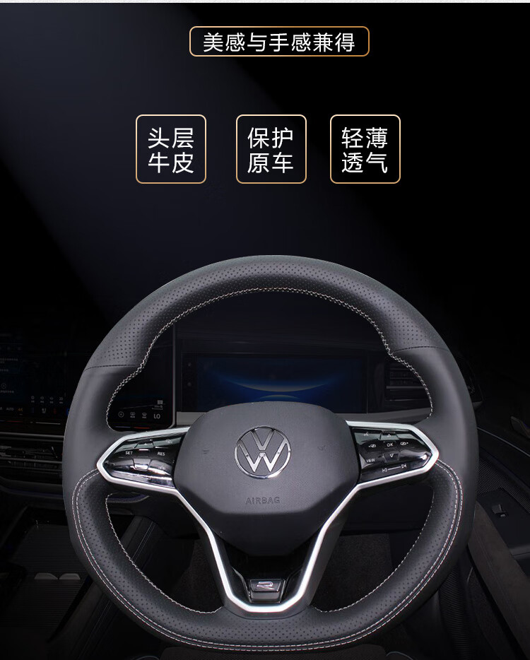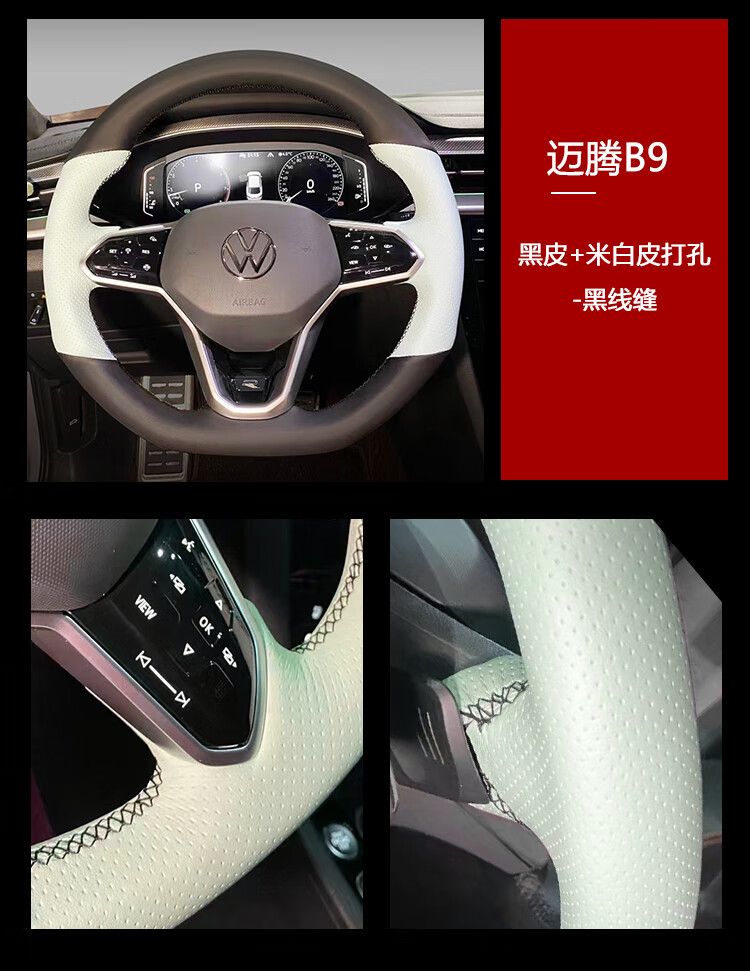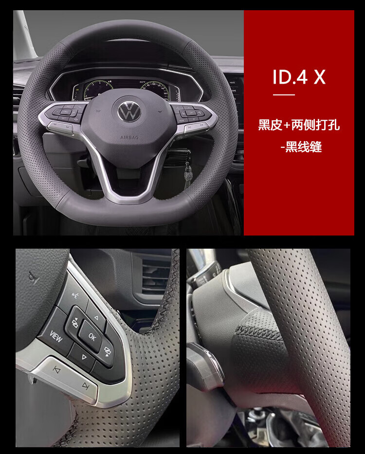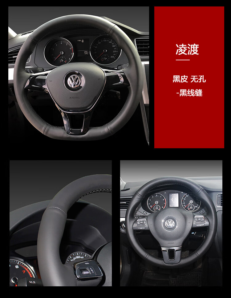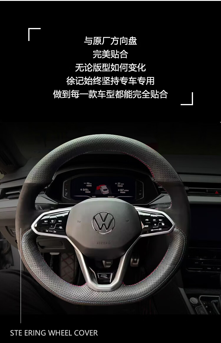 徐记 真皮手缝方向盘套适用大众迈腾ID.4X途观L朗逸id3速腾帕萨特探岳 黑皮侧孔-黑线 所有车型可定制