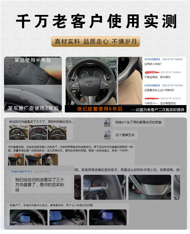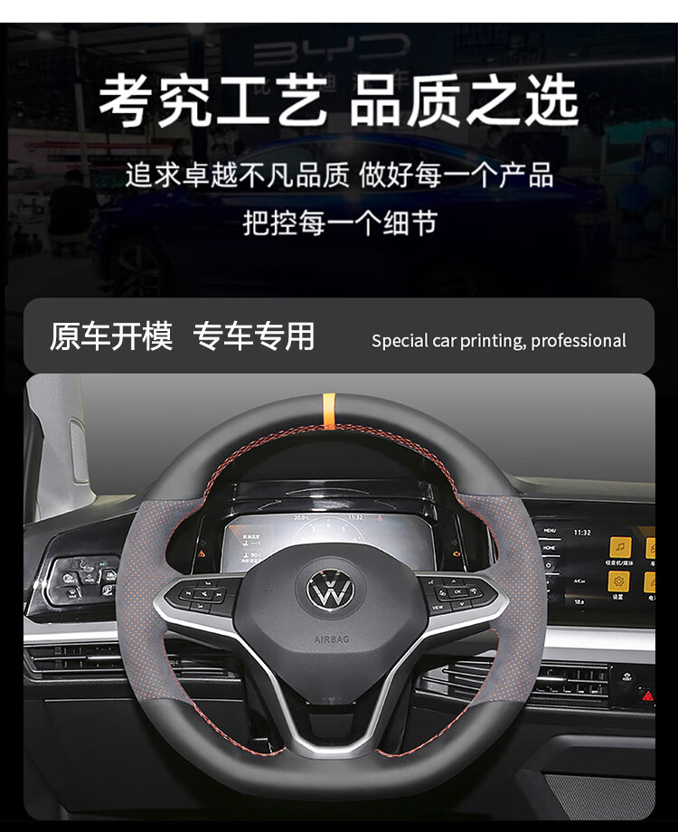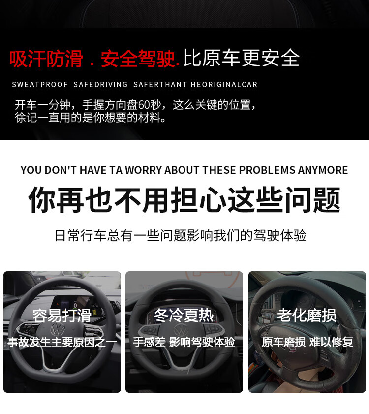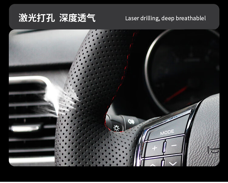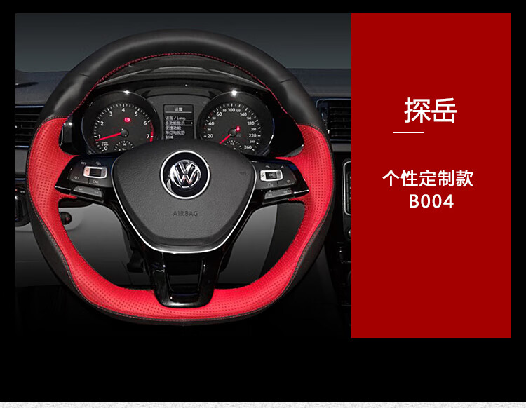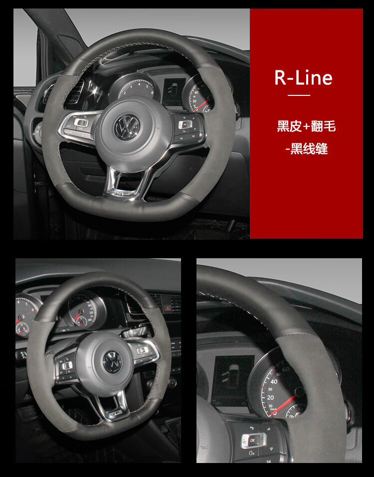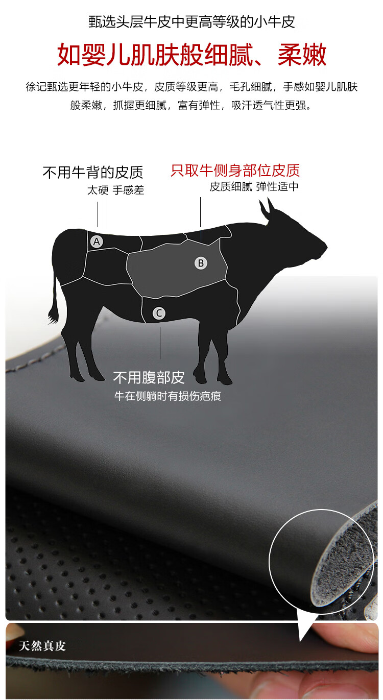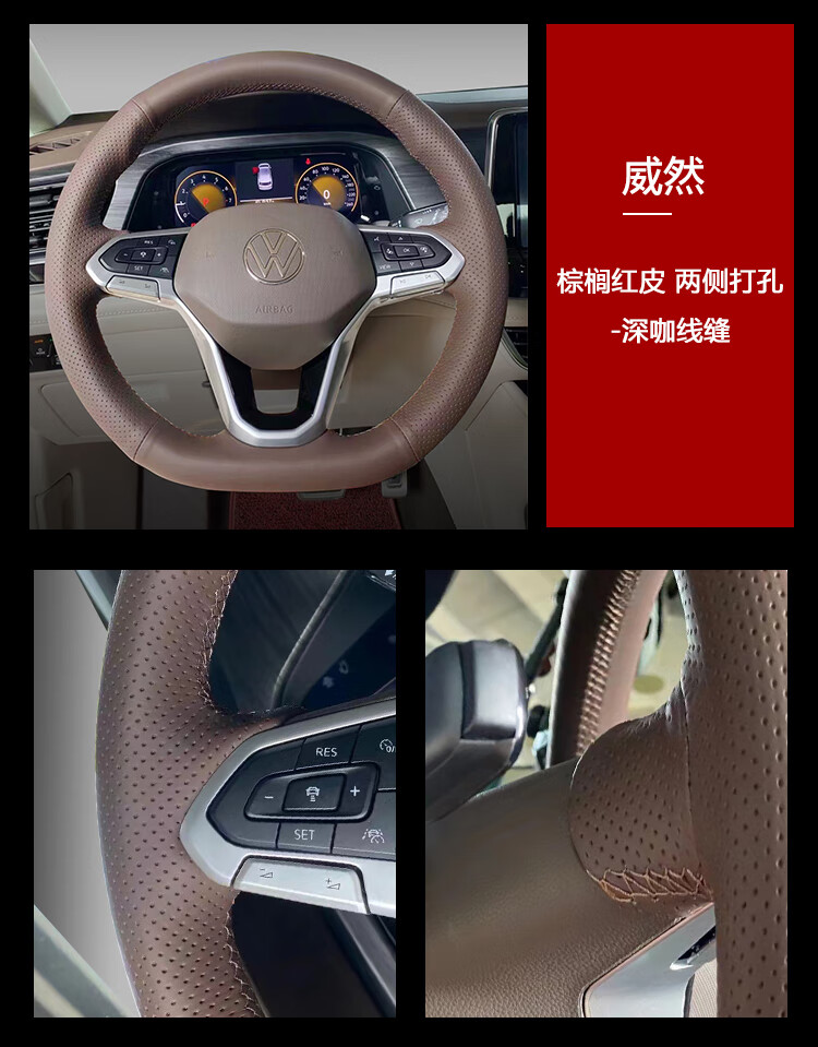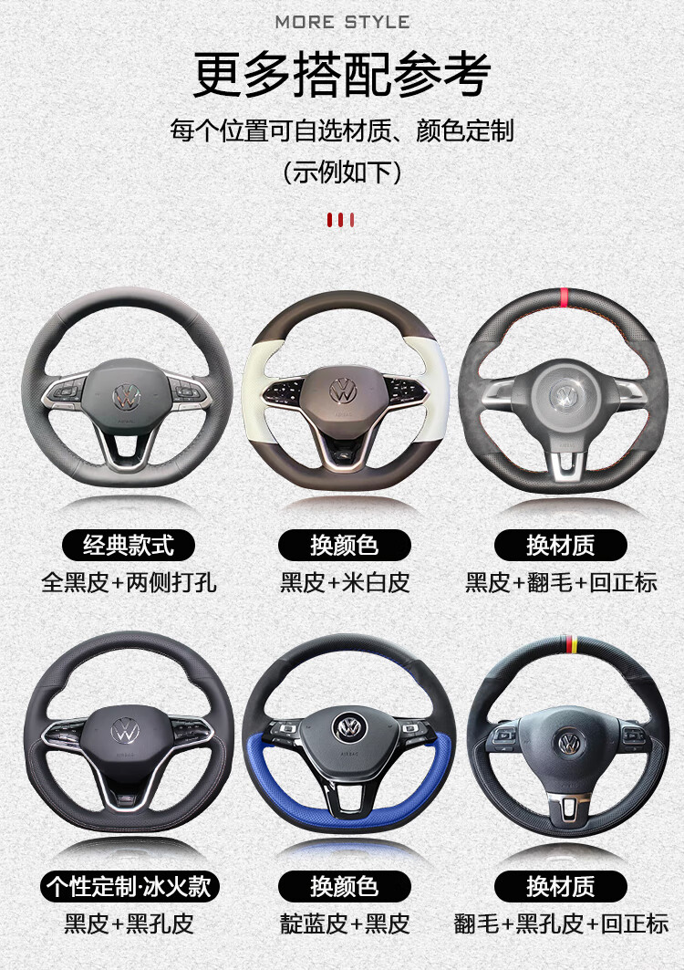 徐记 真皮手缝方向盘套适用大众迈腾ID.4X途观L朗逸id3速腾帕萨特探岳 黑皮侧孔-黑线 所有车型可定制