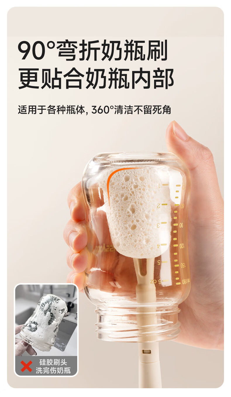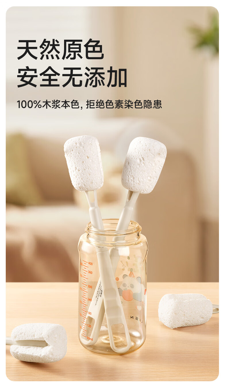 如山木浆棉清洁刷新生专用清洗奶瓶刷杯刷套装替换头刷子 【速干不养菌】替换头2支 无规格