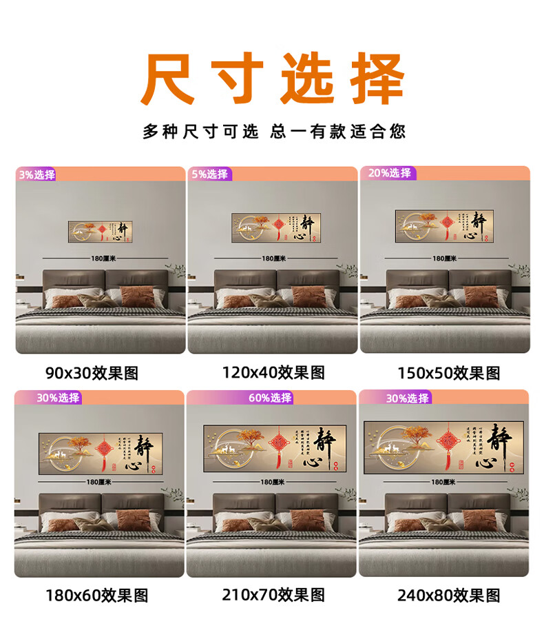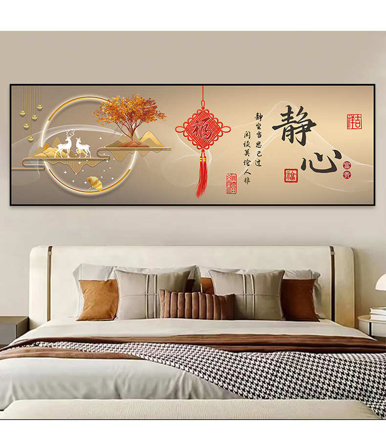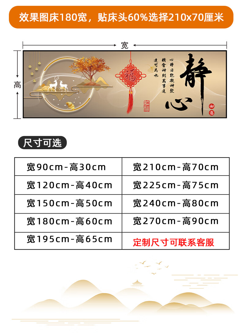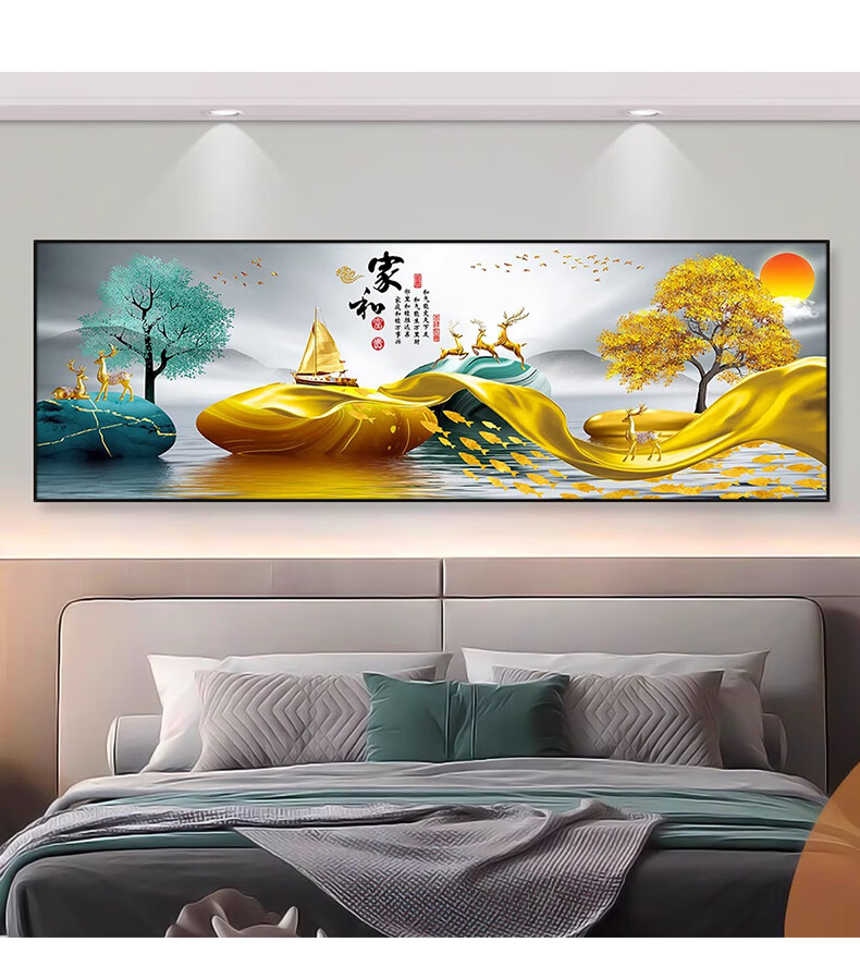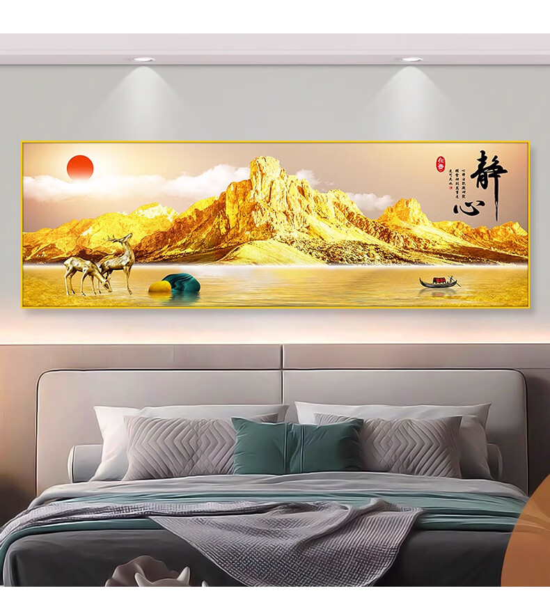 艾思尚2025新款背靠金山床头画朝西墙贴画自粘客厅主卧室装饰画挂壁画纸 05.家财万贯 宽180cm-高60cm【推荐1.8米床】 背面带胶(高清防水 撕开即粘)