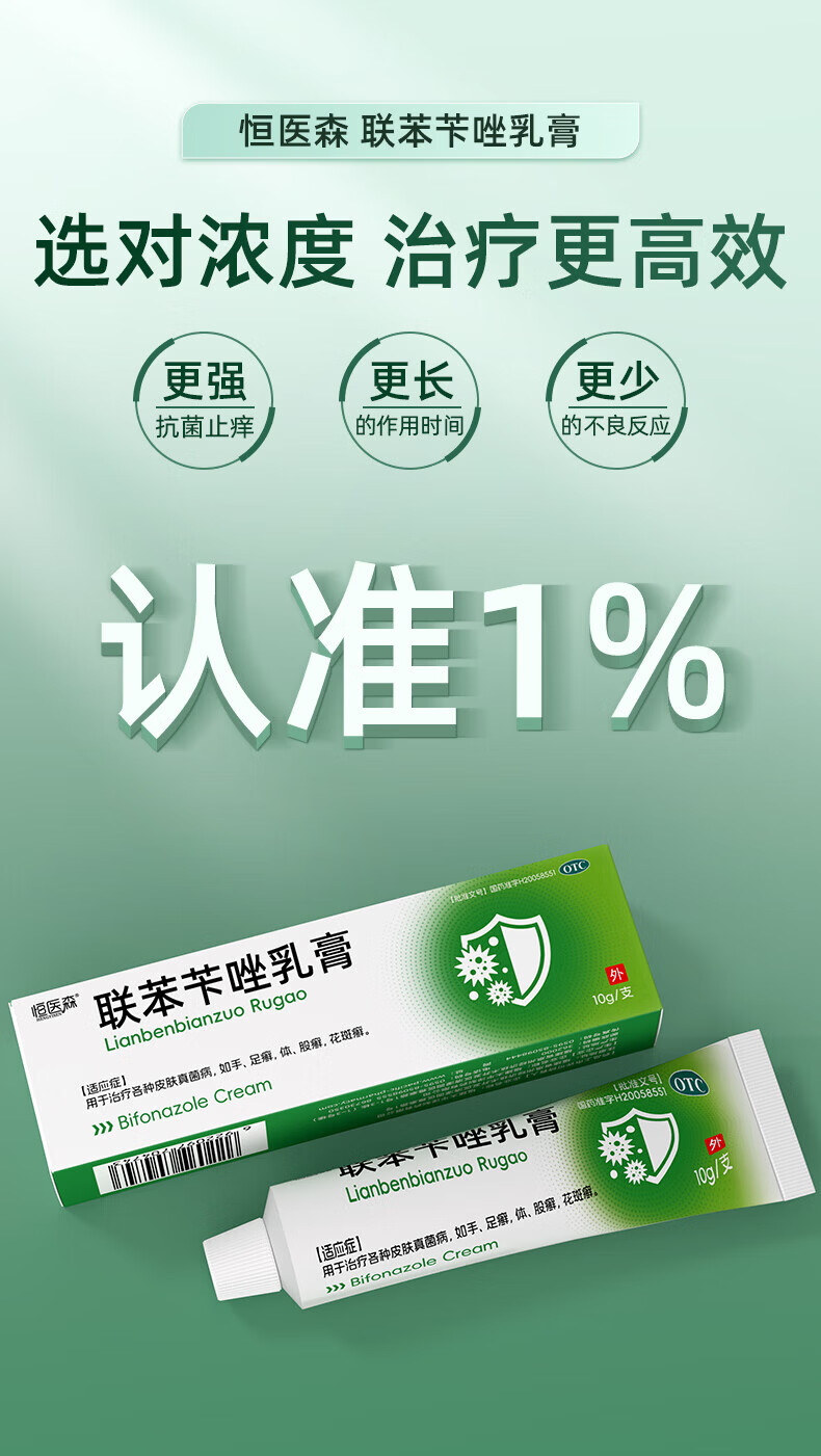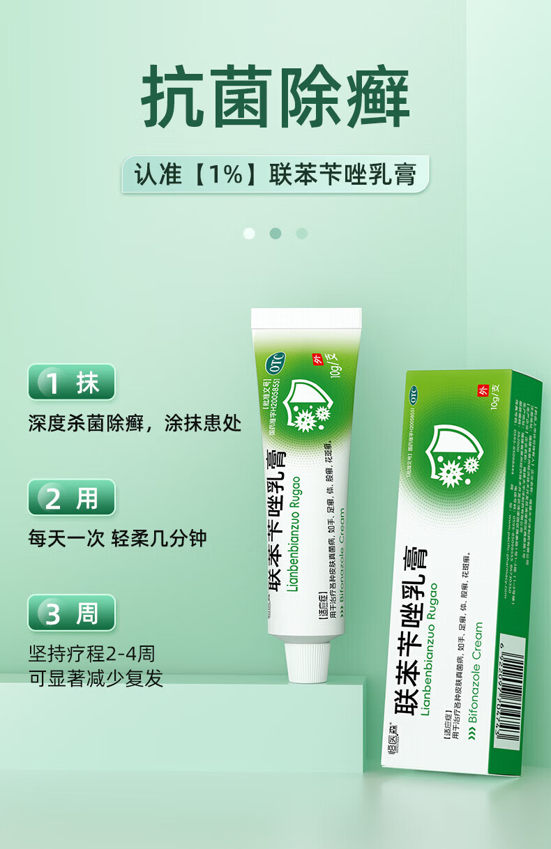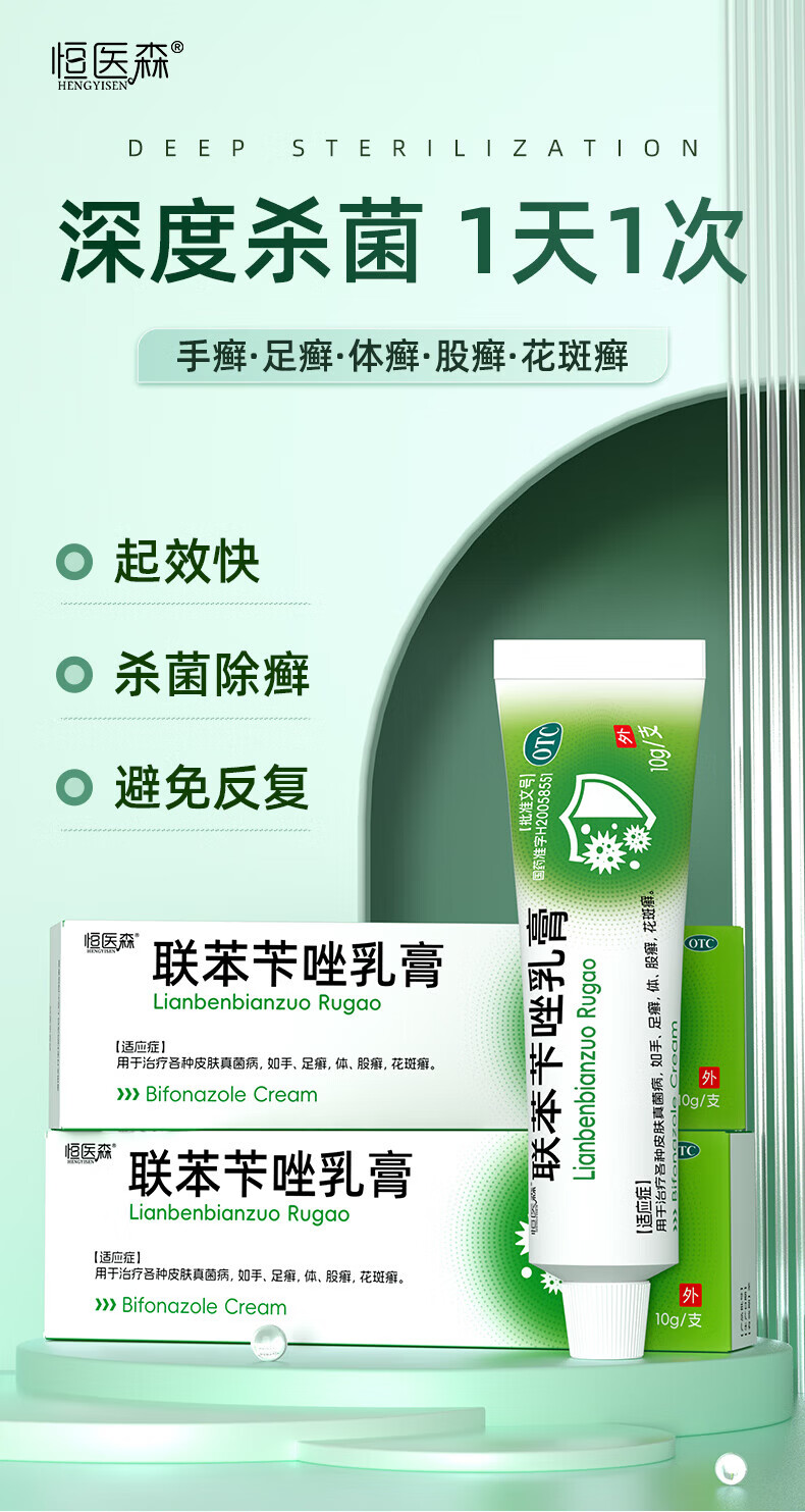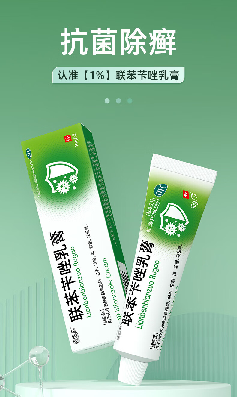 [恒医森]联苯苄唑乳膏 10g 2盒装 10g/盒 治脚气药止痒脱皮烂脚丫真菌感染止痒脚臭脚汗水泡去脚气软膏 99%选择【轻松去脚气