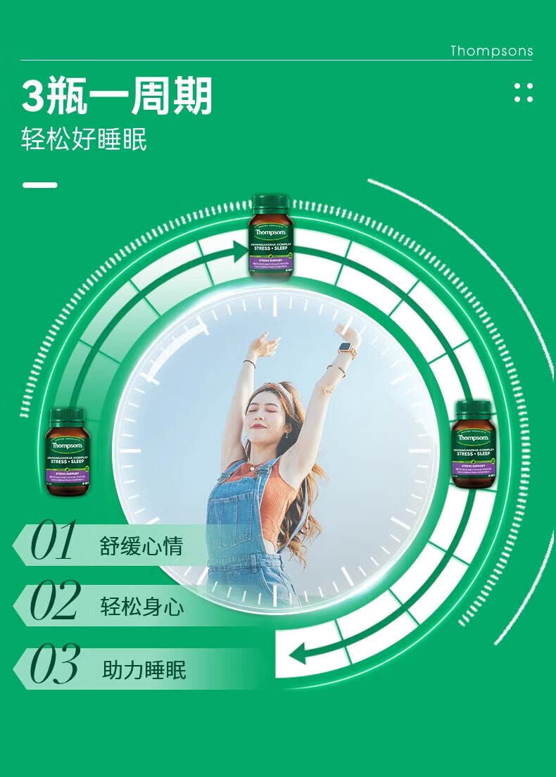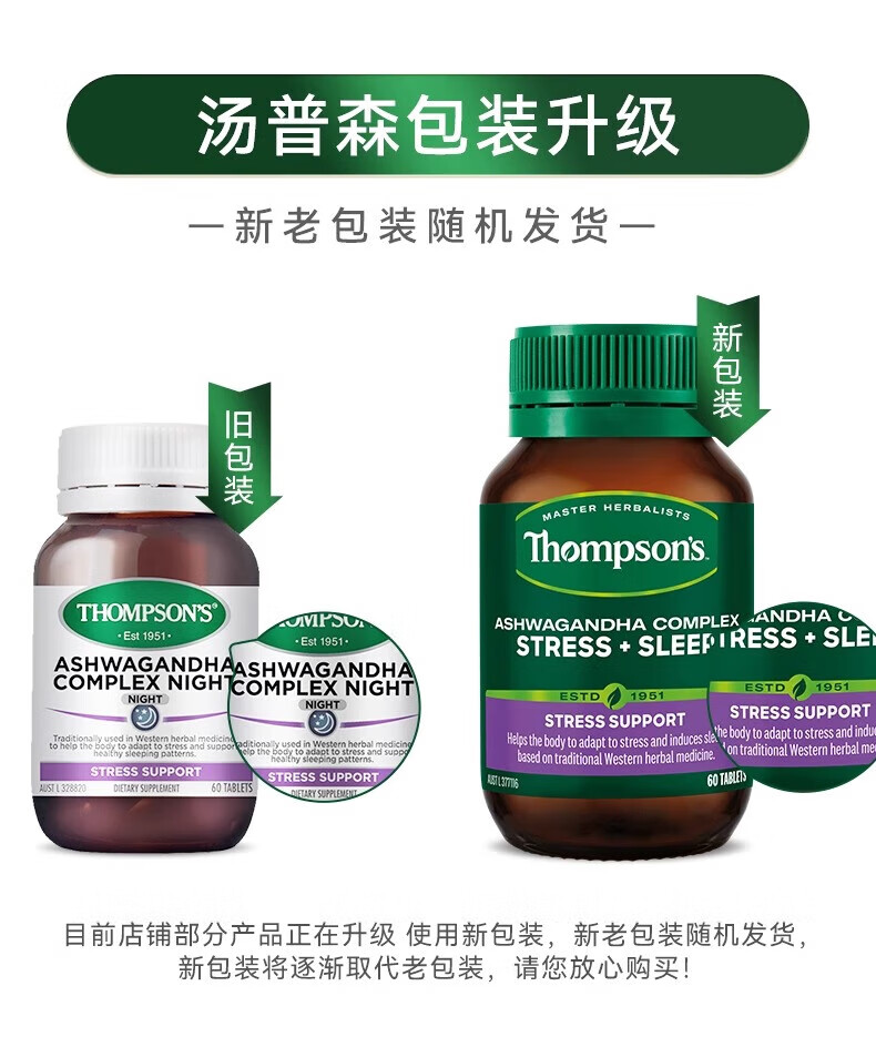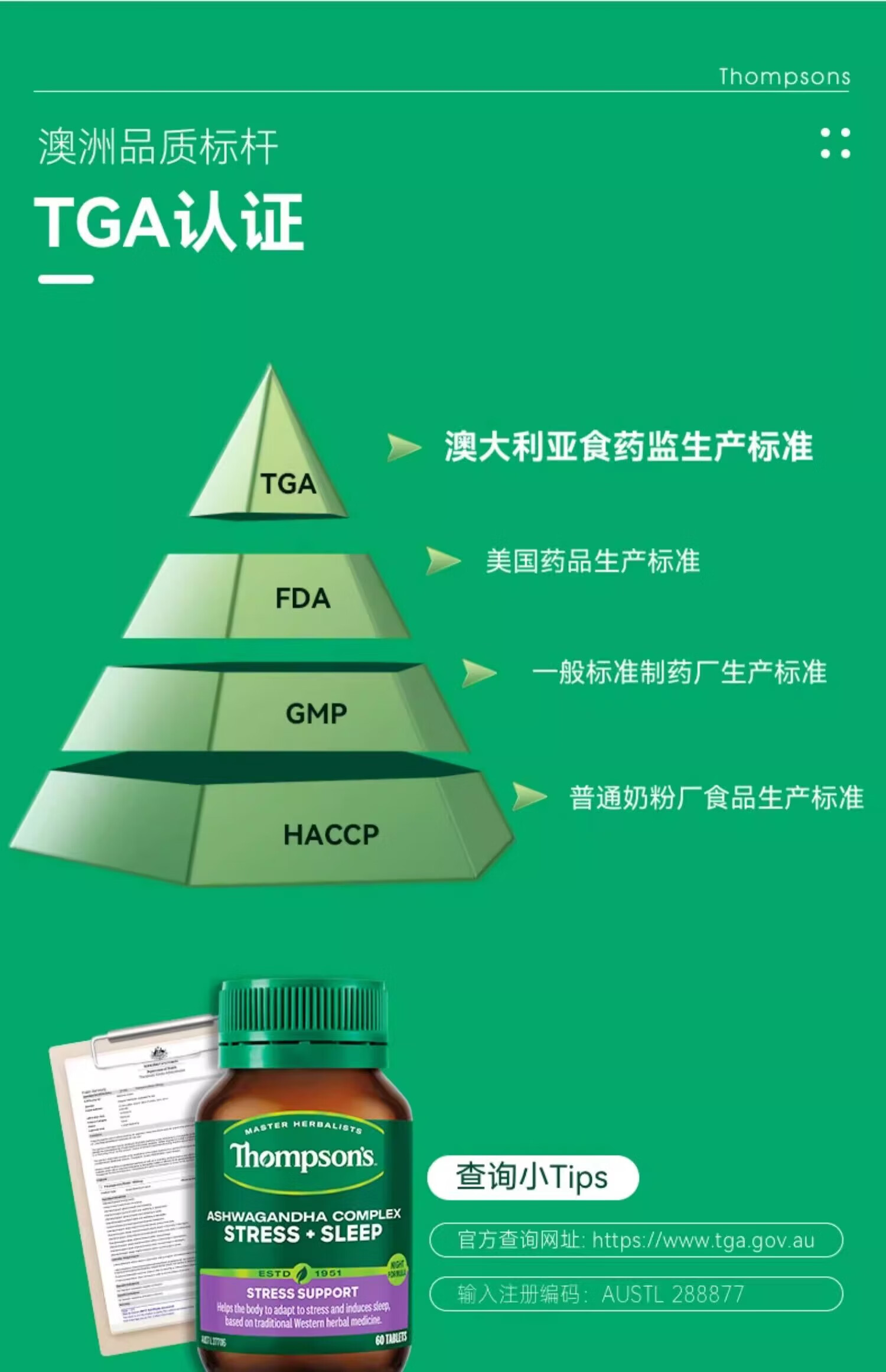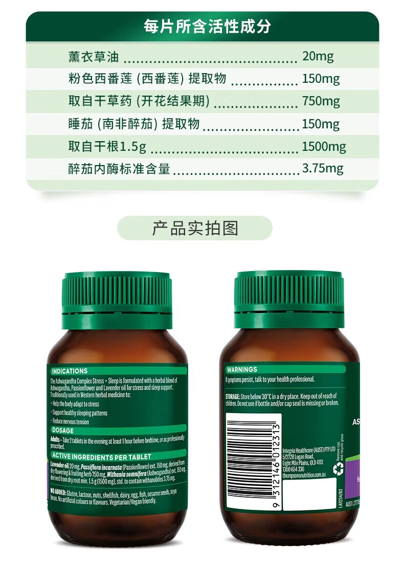 THOMPSON'S汤普森 Thompson's 南非醉茄夜片60片/瓶 缓解压力 促进健康睡眠 醉茄夜片60片/瓶