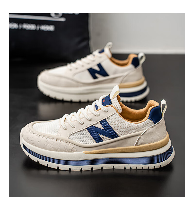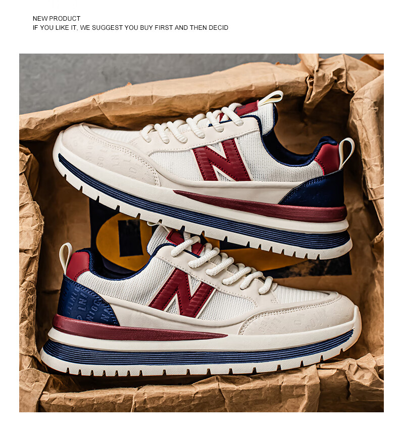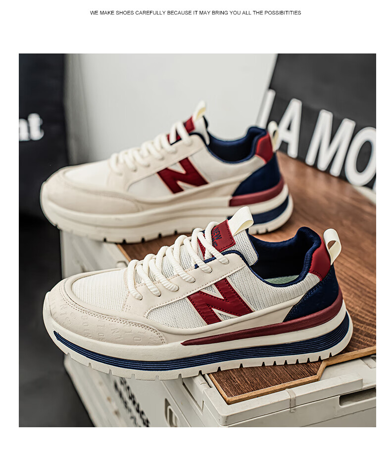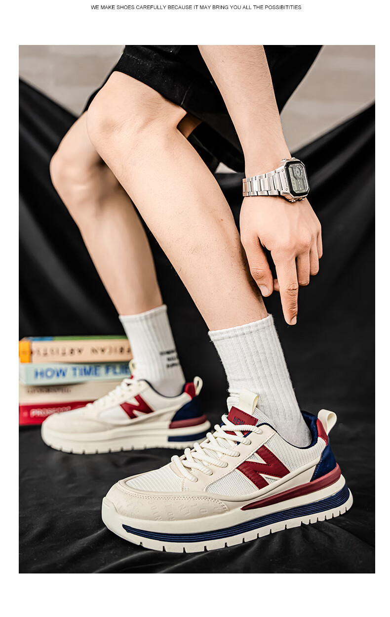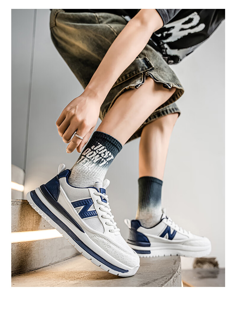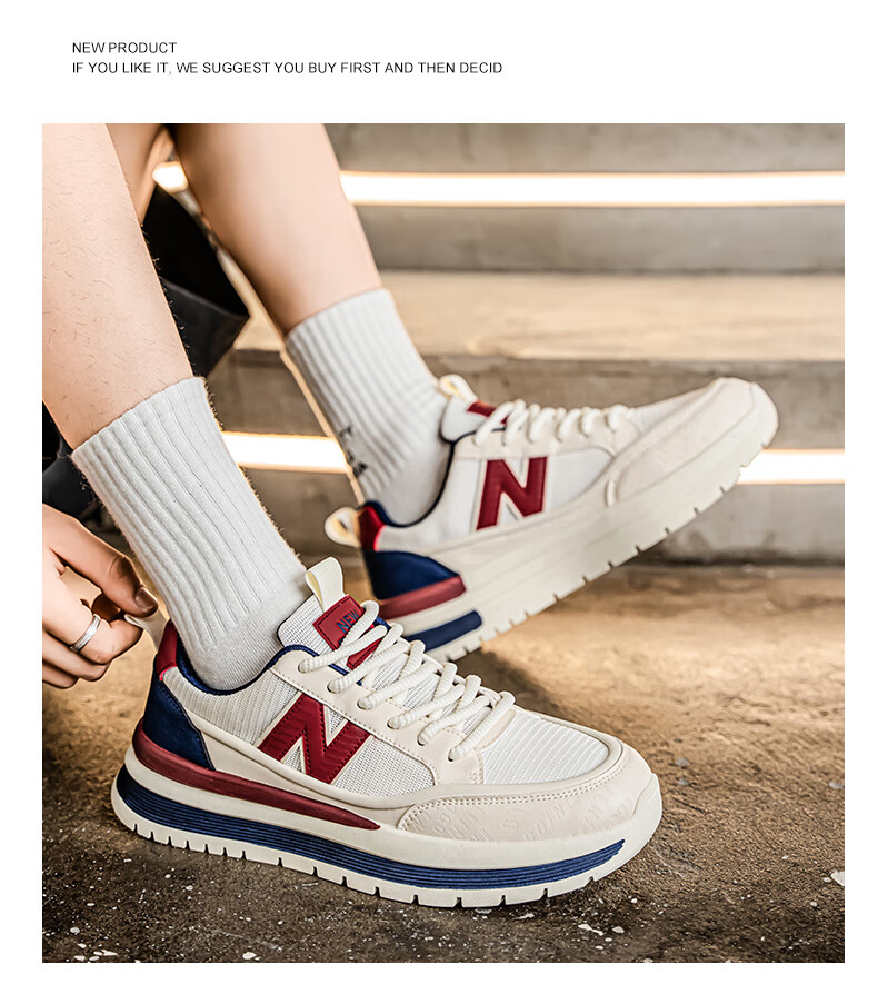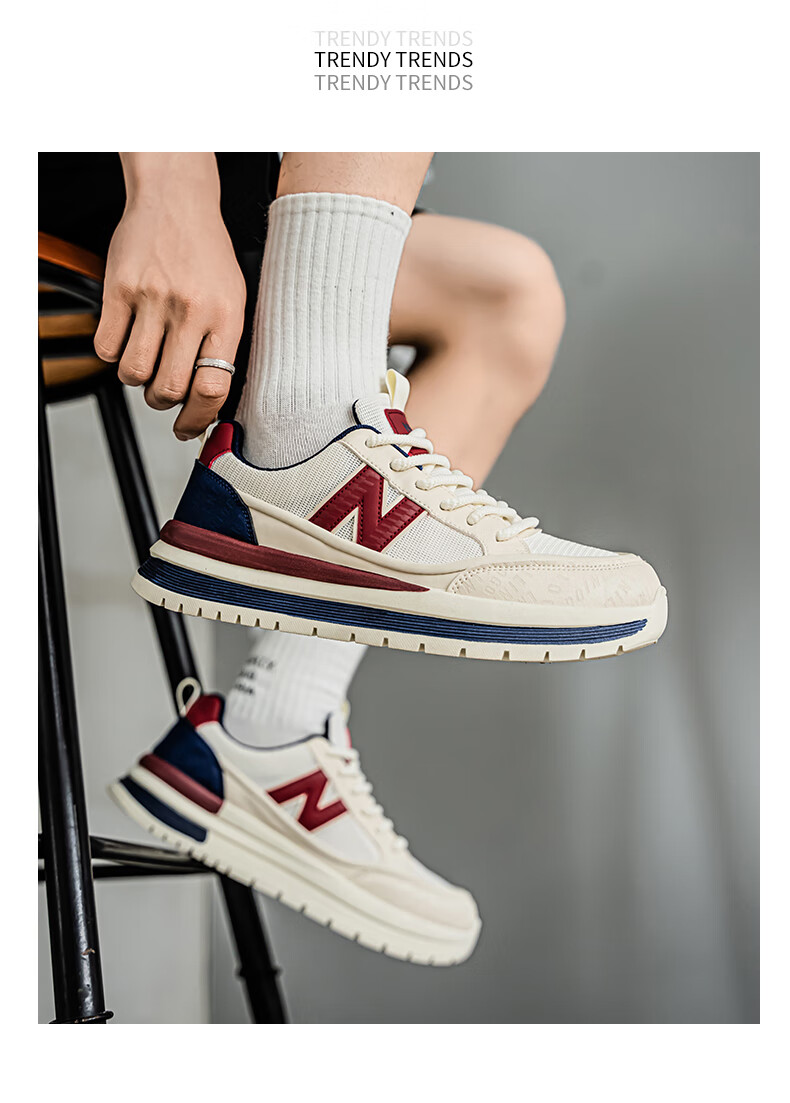 新百伦运动鞋男2025秋季新款跑步鞋板鞋透气夏季运动鞋软底轻便休闲黑色 白红 44