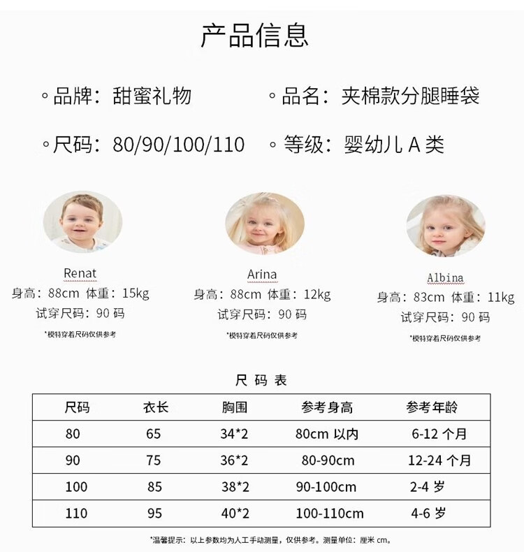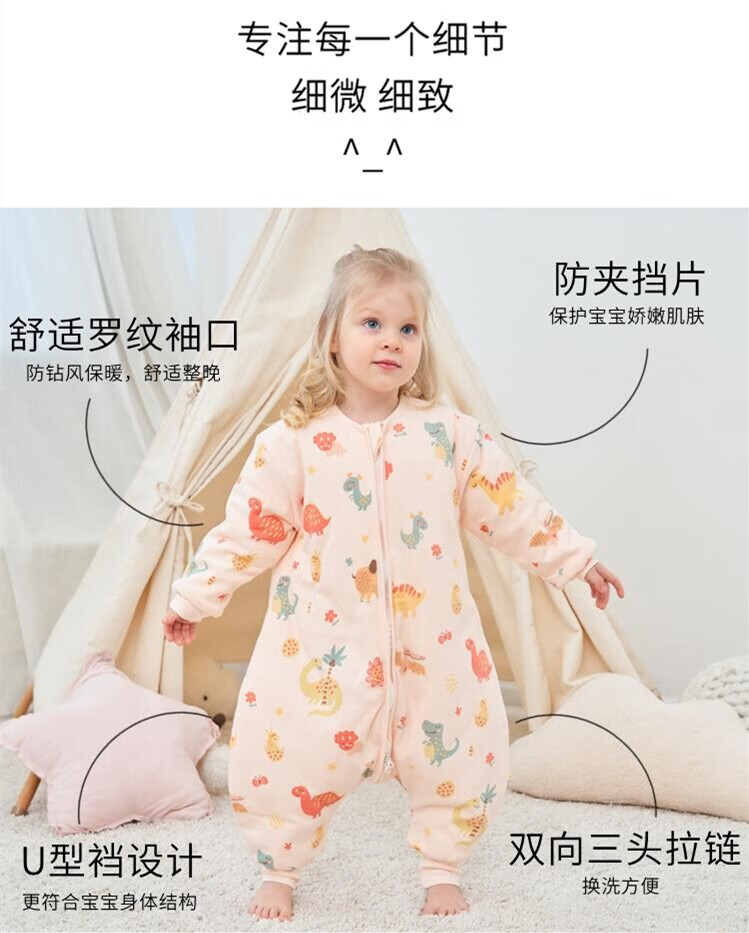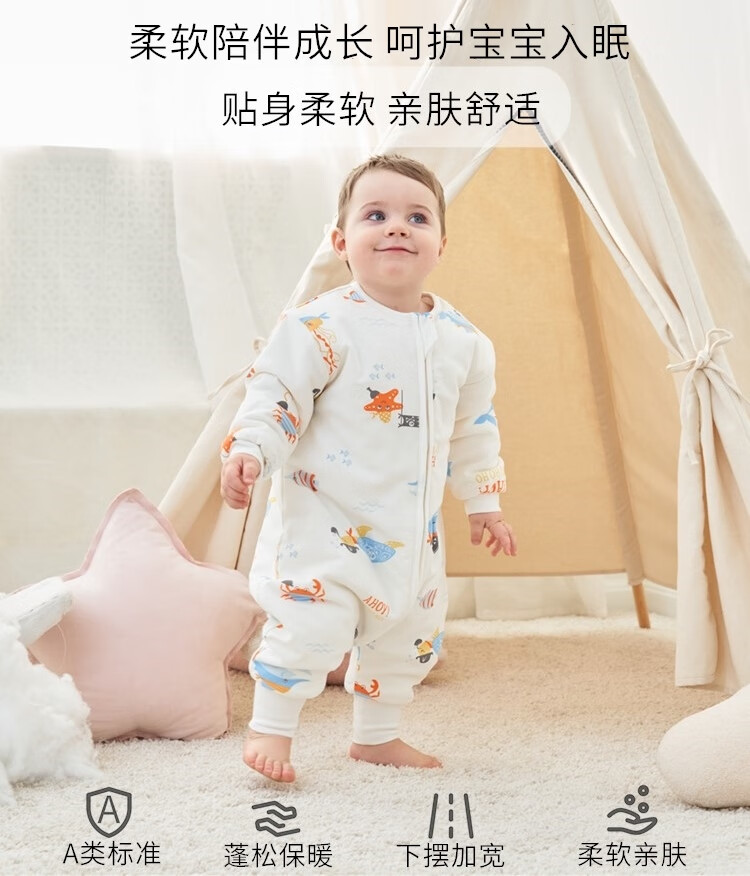 甜蜜礼物棉分腿睡袋婴幼儿童男女宝宝防踢被可拆袖抱被秋冬季新款睡衣 60g棉按扣裆【春秋16-22度】太空 90码(身高80-90CM)12-24个月