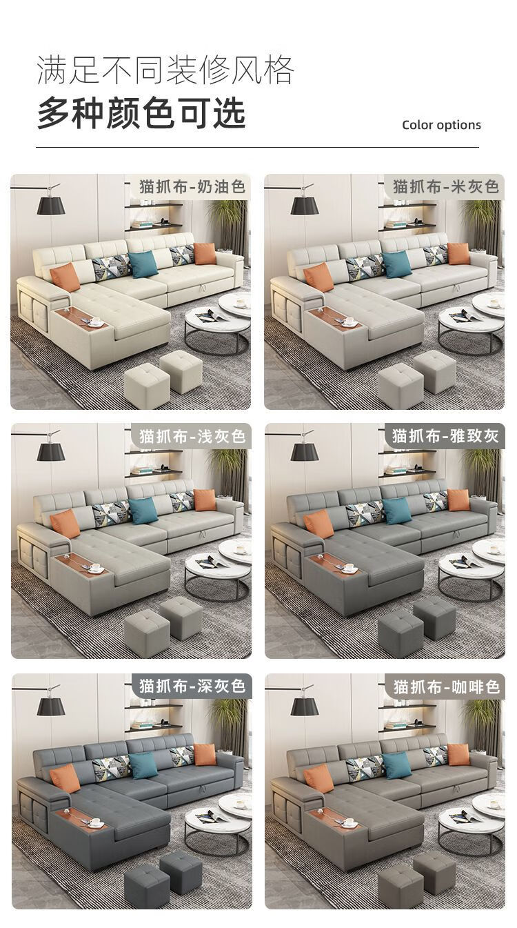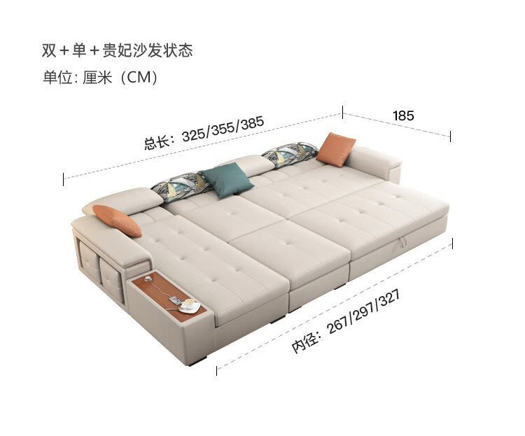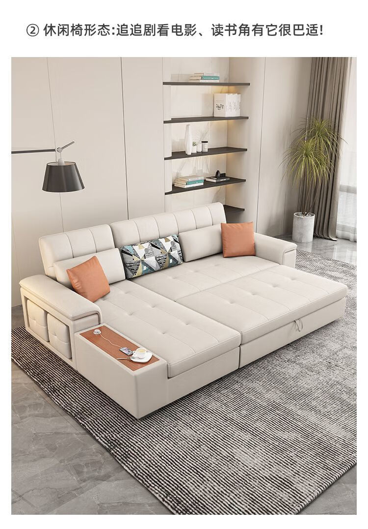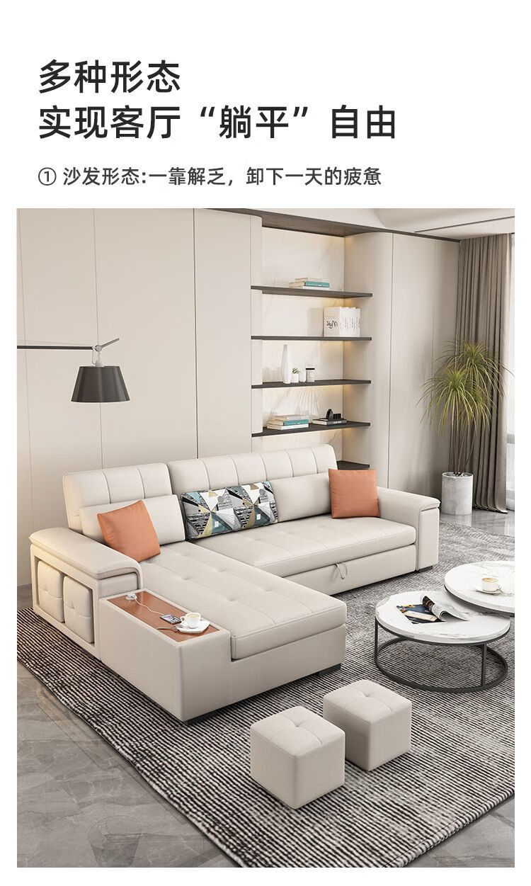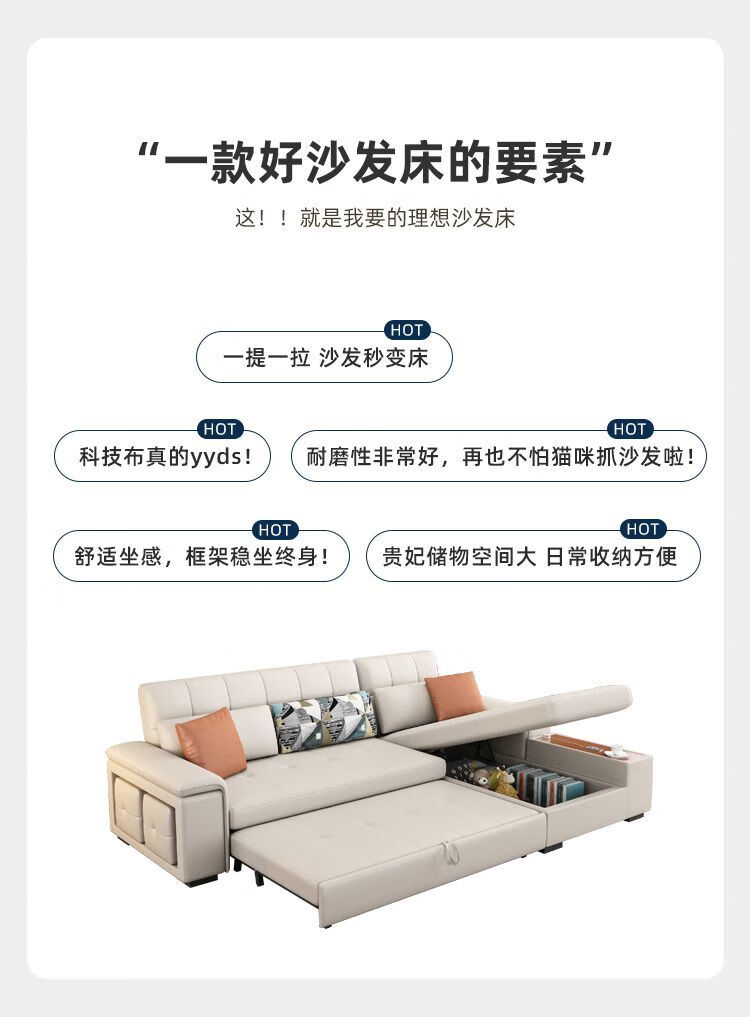 御巢盛2026新款沙发床可折叠两用客厅小户型直排贵妃推拉变床多功能组合 纳米科技布【海绵款】 双人+贵妃+单人+脚踏3.25米