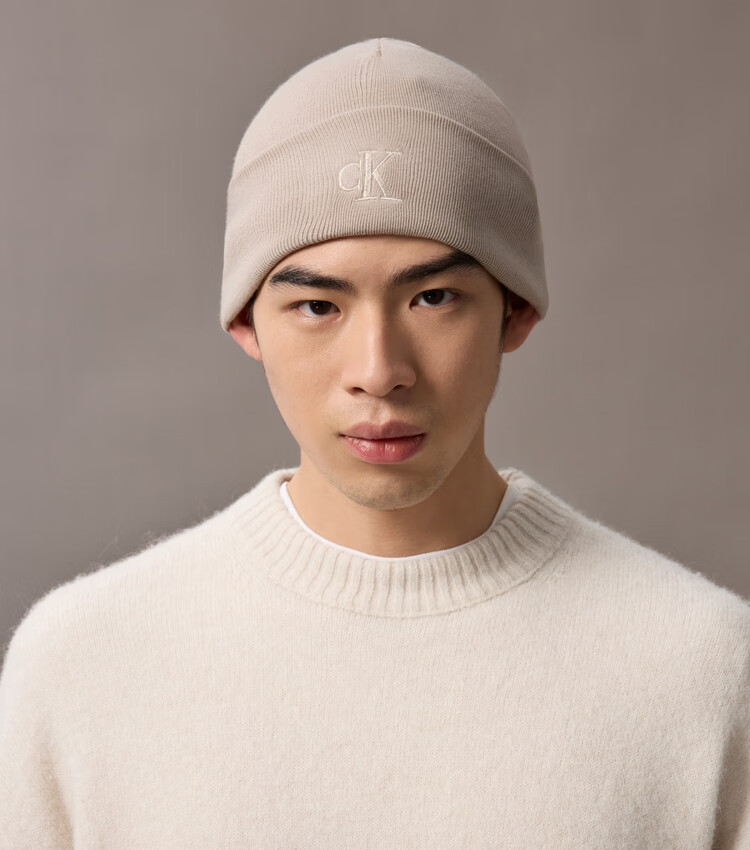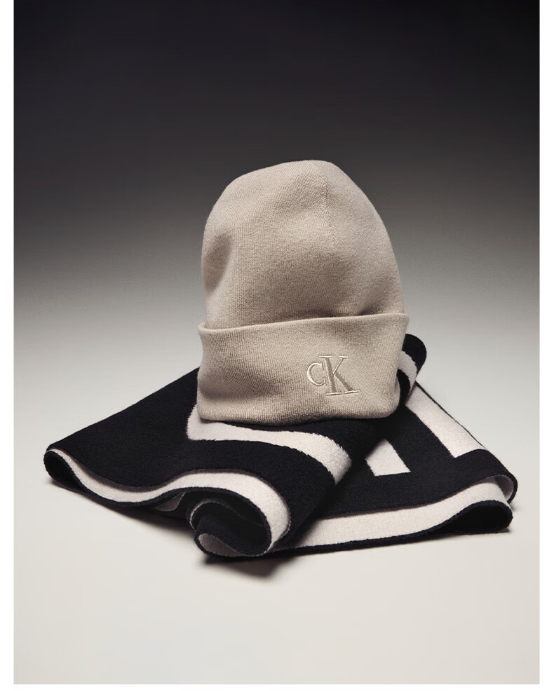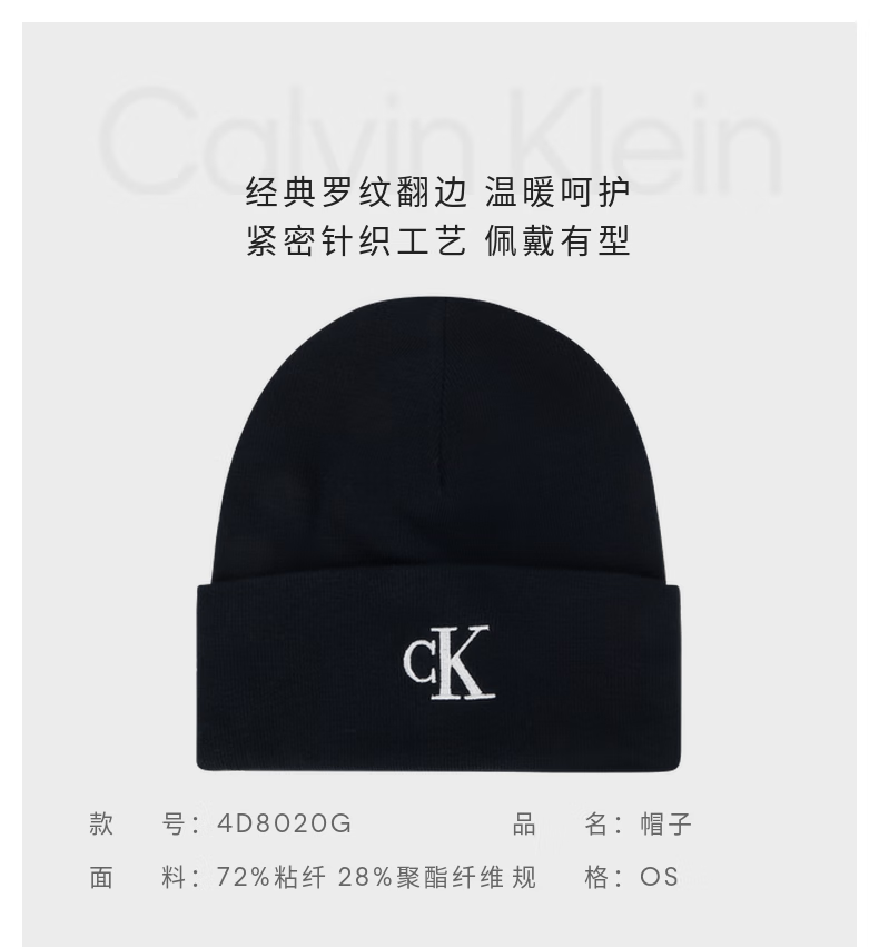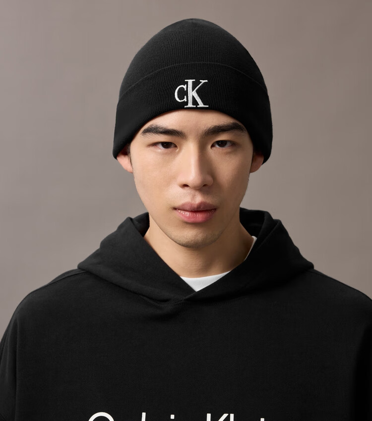 Calvin KleinJeans【新年礼物】25秋冬新款男女ck刺绣罗纹针织冷帽毛线帽礼物 UB1-太空黑
