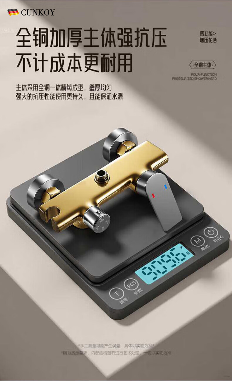 CUNKOY【德国】淋浴花洒套装一体全铜冷热花洒淋浴全套一整套2025新款 圆形四功能花洒套装【全铜主体】旗舰款 全铜加厚主体丨四档旋转调节丨AIR星空顶喷