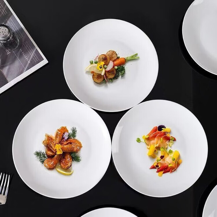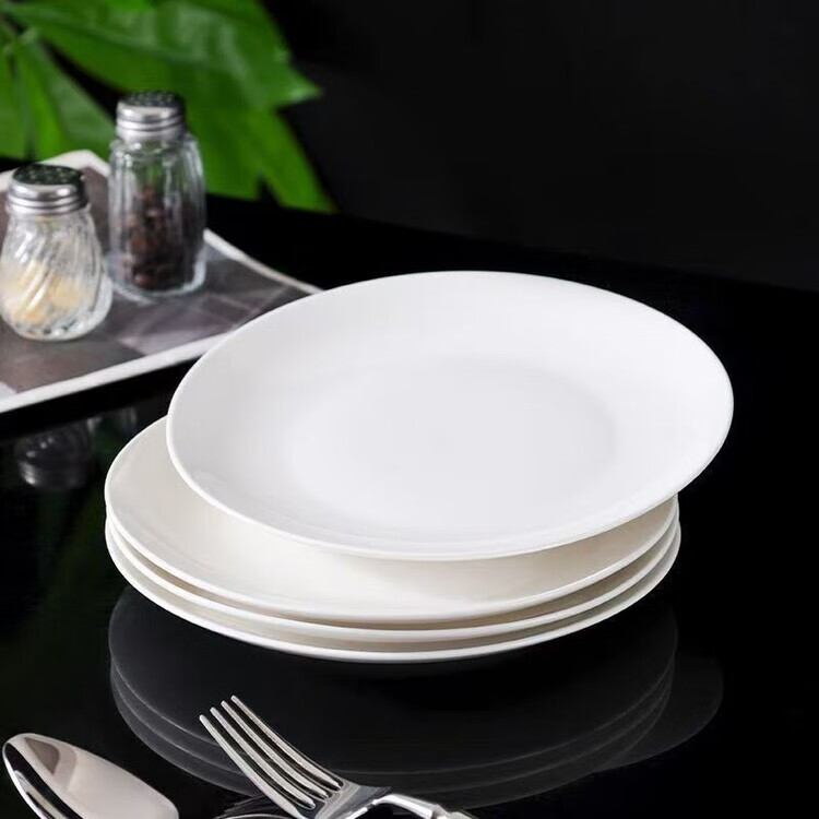 泰禧阁爆款8英寸新陶瓷月光盘10只家用简约轻奢乔迁颤餐盘凉菜餐具可微 8英寸圆浅盘10只装